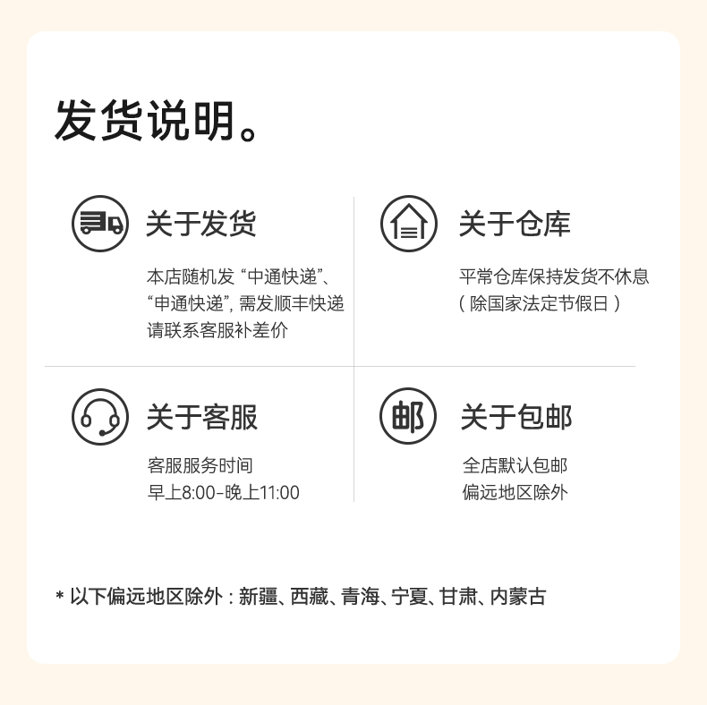 【不发货地区】甘肃、内蒙古、宁夏、青海、新疆、西藏