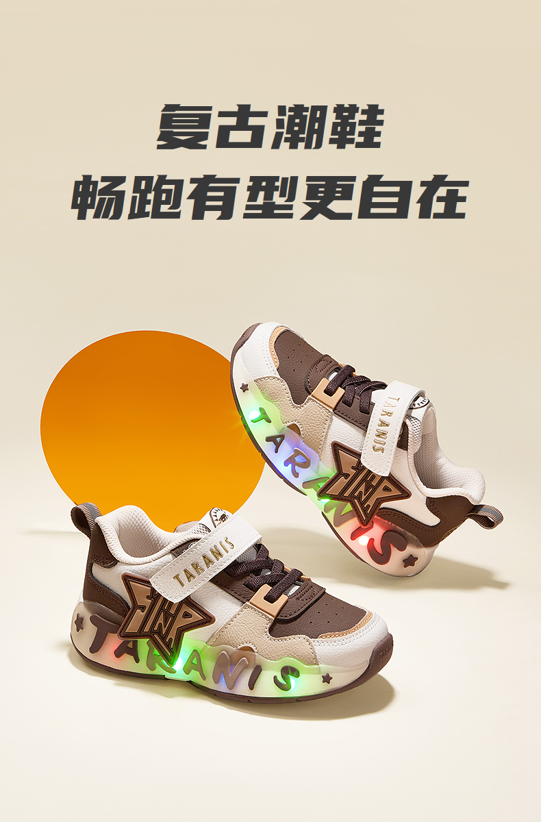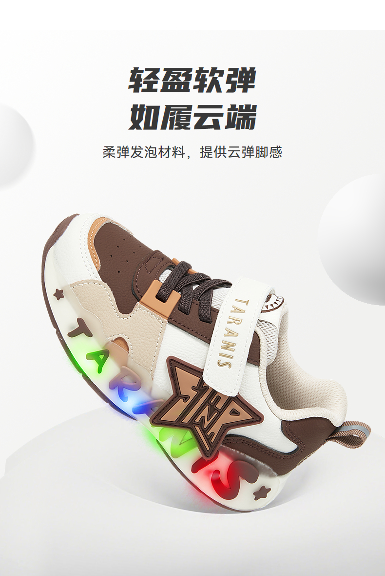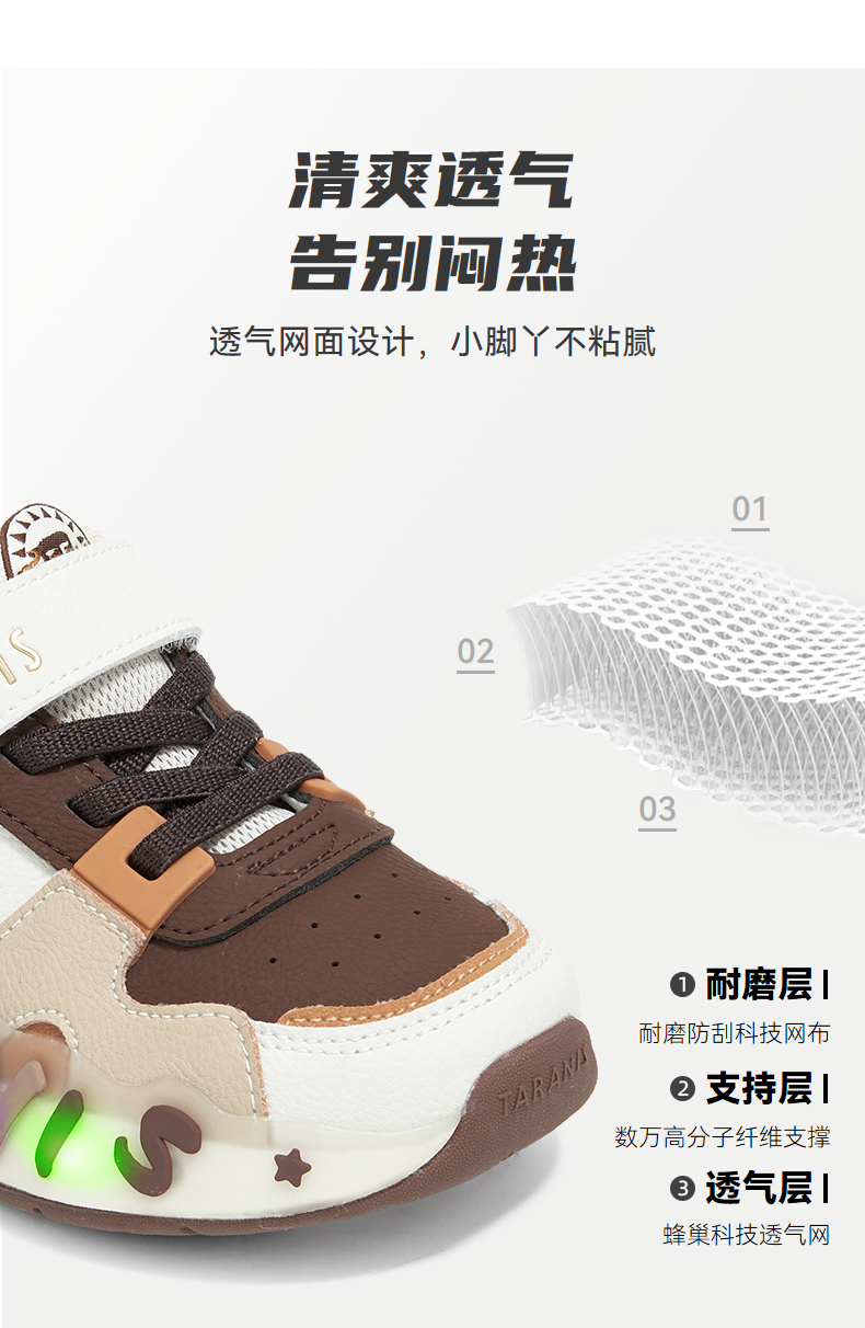 泰兰尼斯25秋季新款透气软底休闲防滑儿童鞋男童亮灯鞋闪灯运动鞋 T01X5C6446