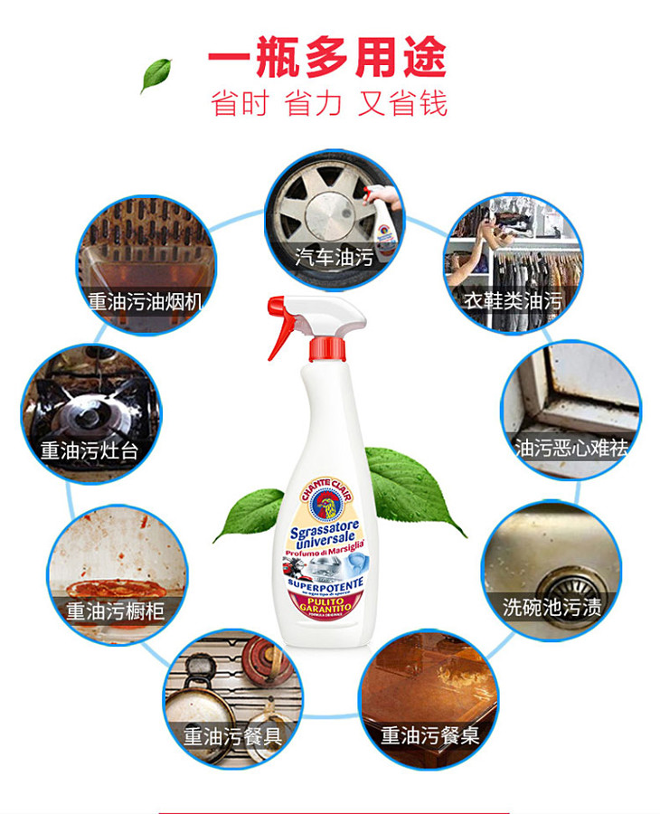 意大利大公鸡管家多功能油污净-马赛香型(600ml/瓶)生产日期: 7月