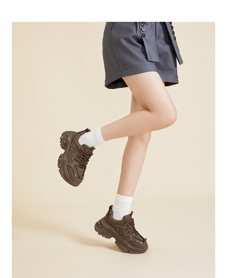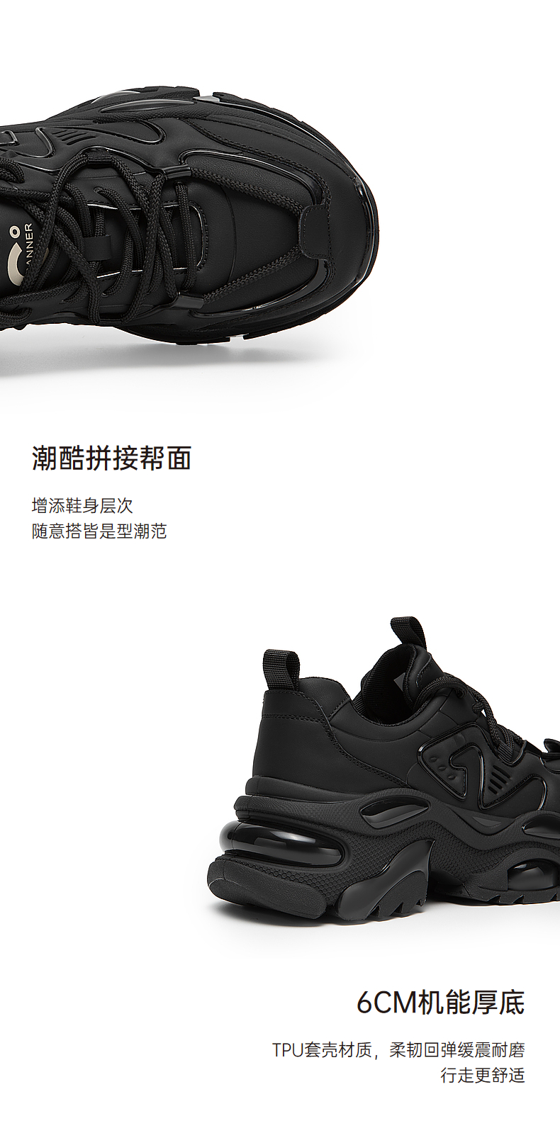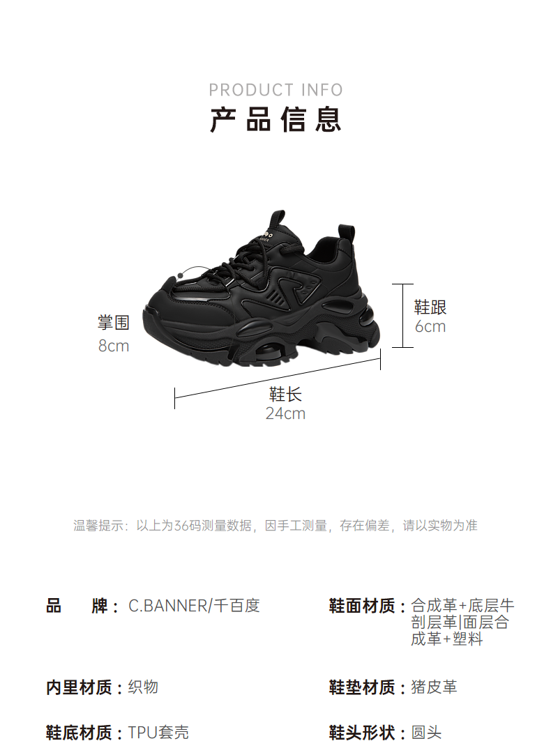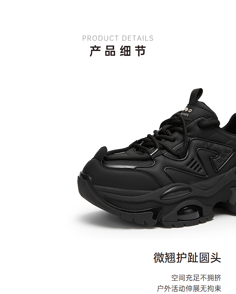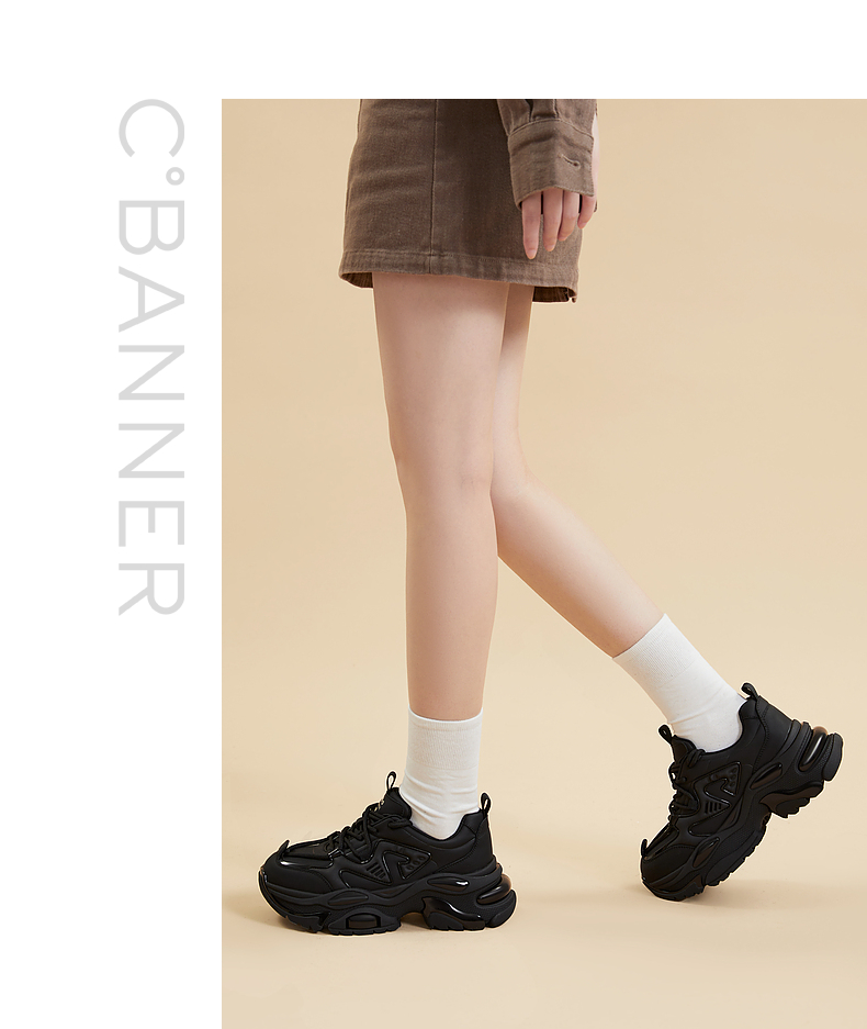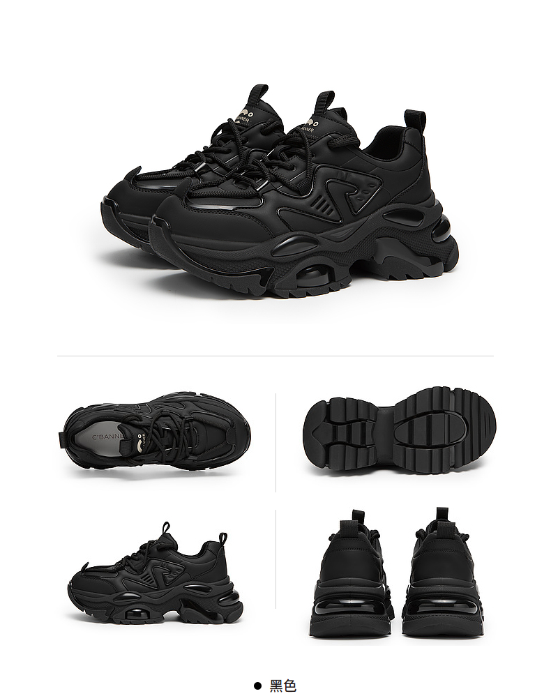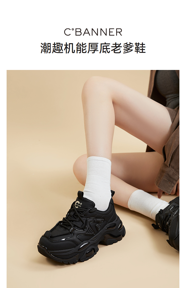 千百度厚底老爹鞋女春季黑色机能鞋时尚休闲运动鞋增高A24189903