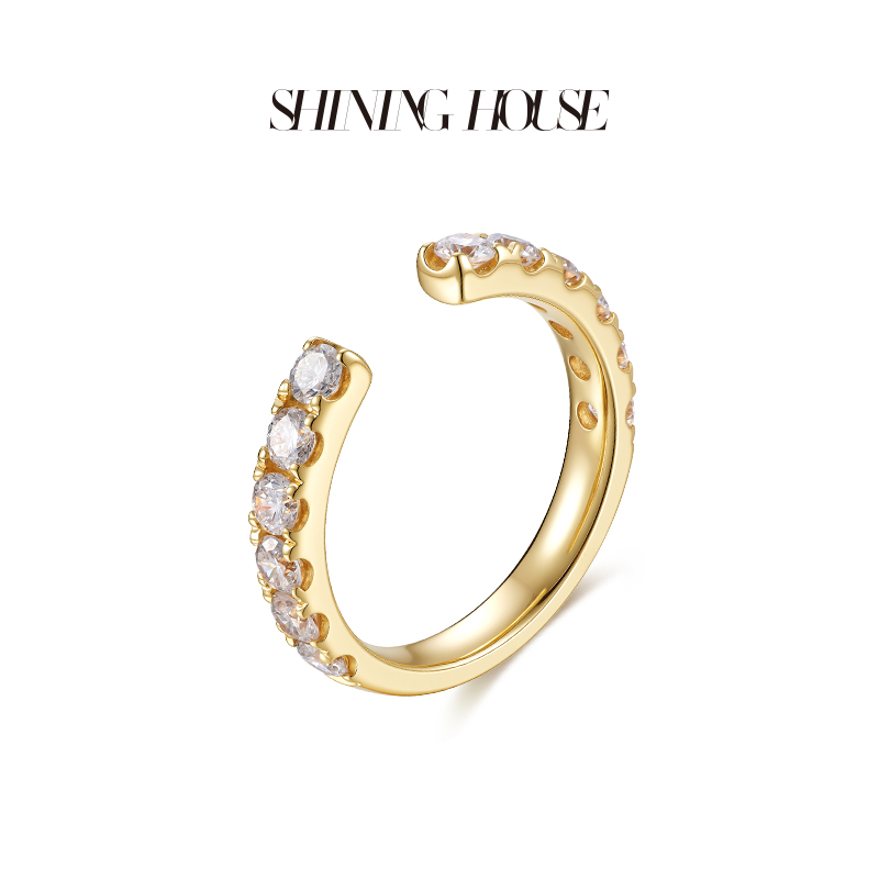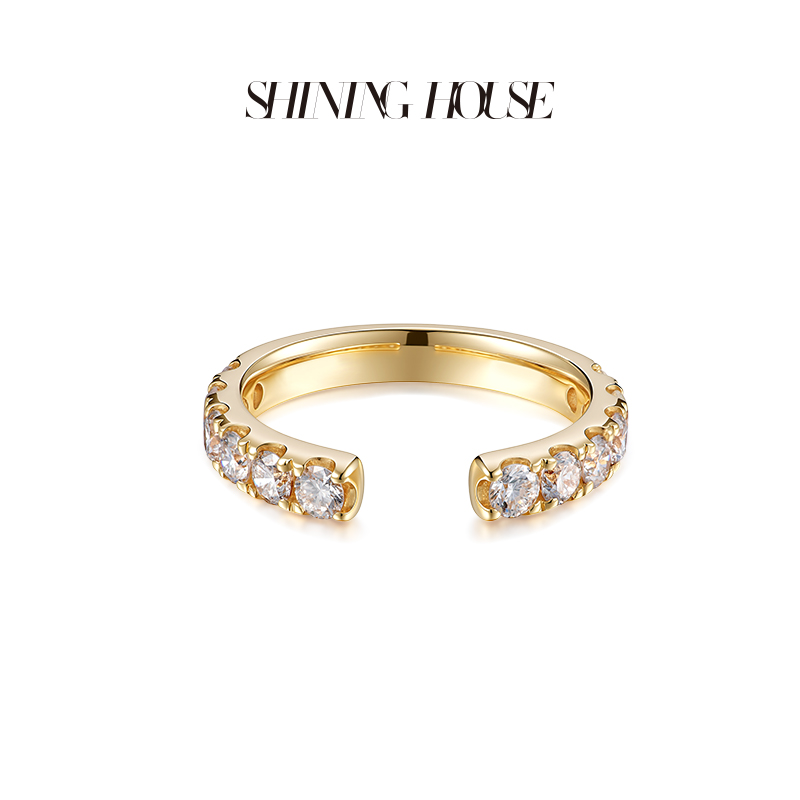 【预售】ShiningHouse[培育] 18k金钻石戒指 圆钻形人工真钻人造钻石K金戒指排钻戒指时尚钻石戒指悦己送礼臻选【此商品不支持7天无理由退货退款】预计3日发货