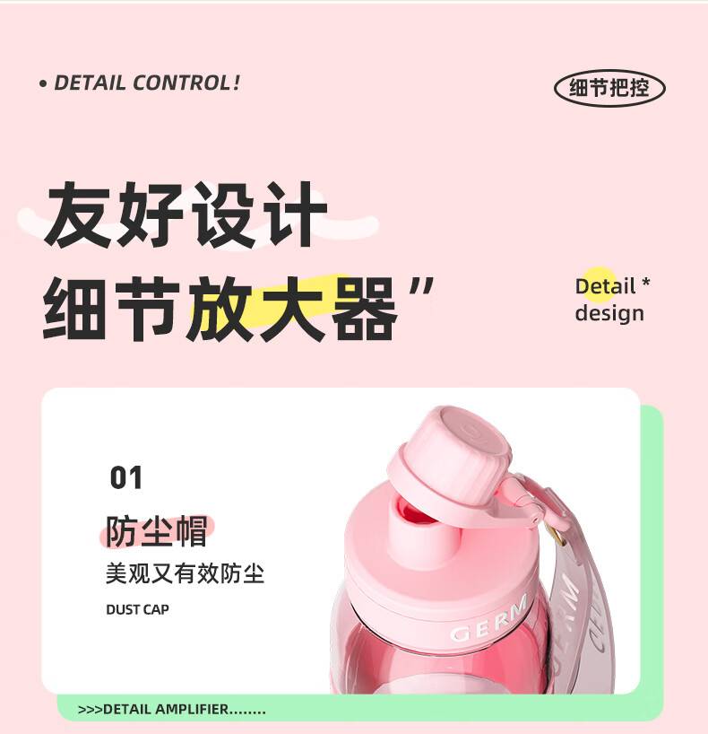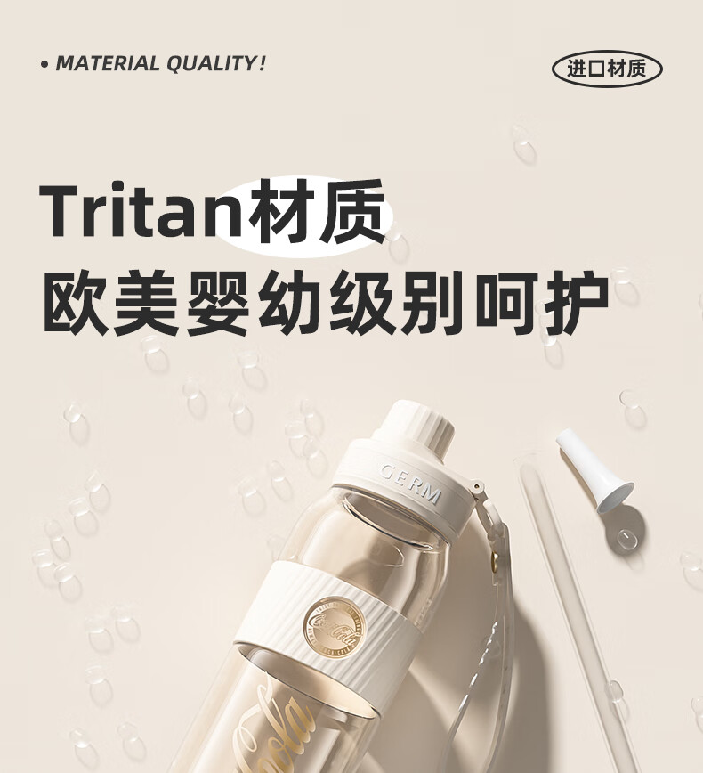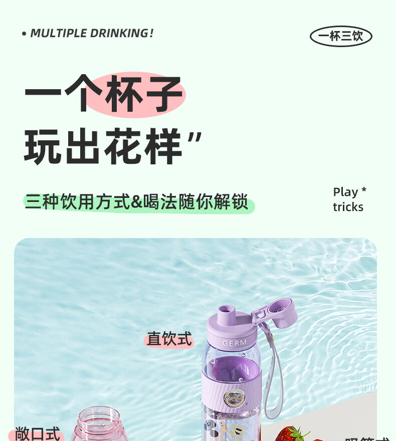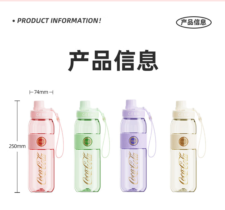 格沵(germ)可口可乐联名水杯Tritan大容量便携男女士塑料吸管便携运动水壶 渐变粉蓝 700ml