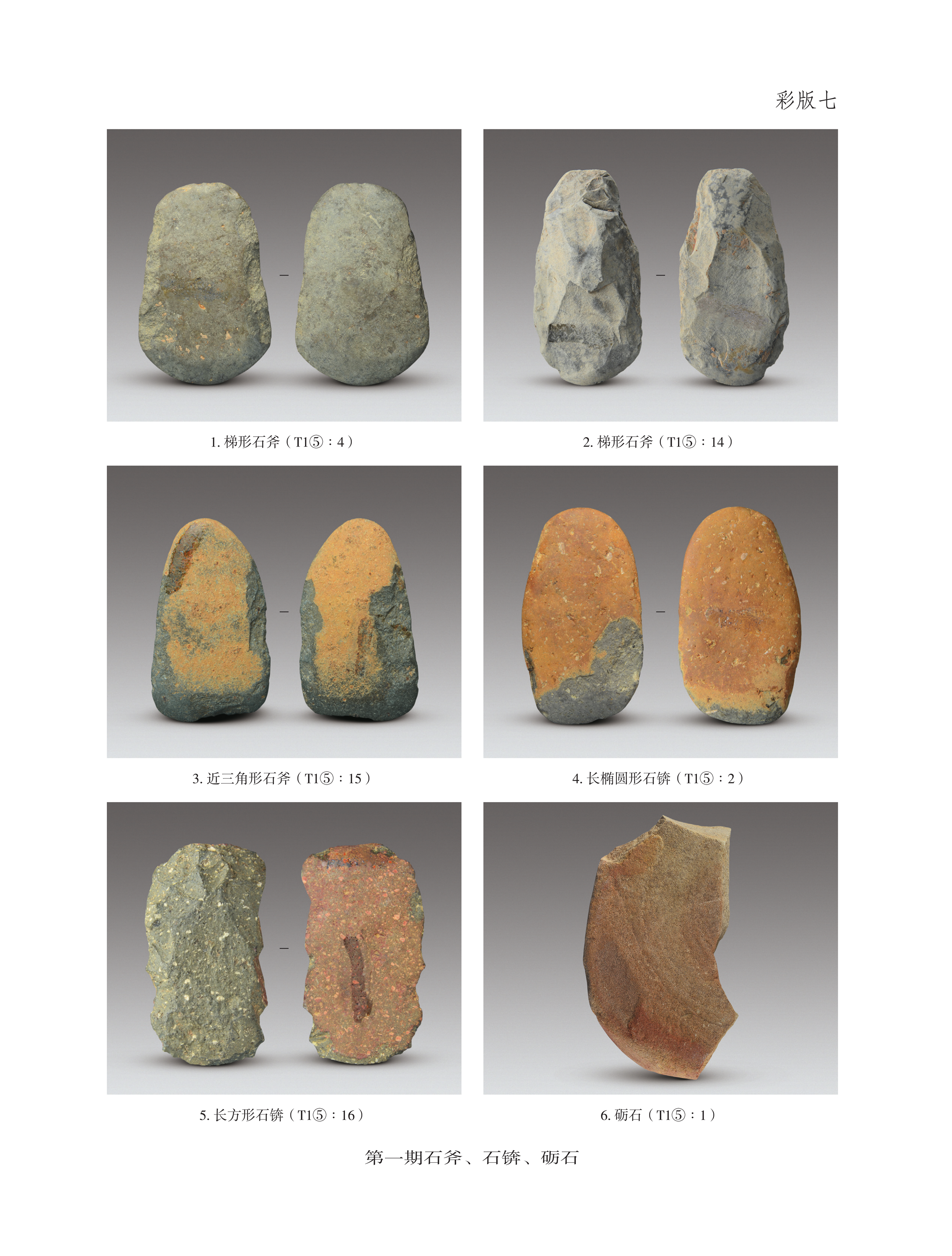 其中第一期为贝丘堆积,生业模式以渔猎捕捞为主,出土遗物较为稀少,仅见石器和骨器两种,另有大量动物骨骼。石器有砍砸器、刮削器及斧、锛类磨制石器几种,骨器仅见骨针,未见陶器和贝丘遗址中较为常见的墓葬,年代为距今8000年上下。
