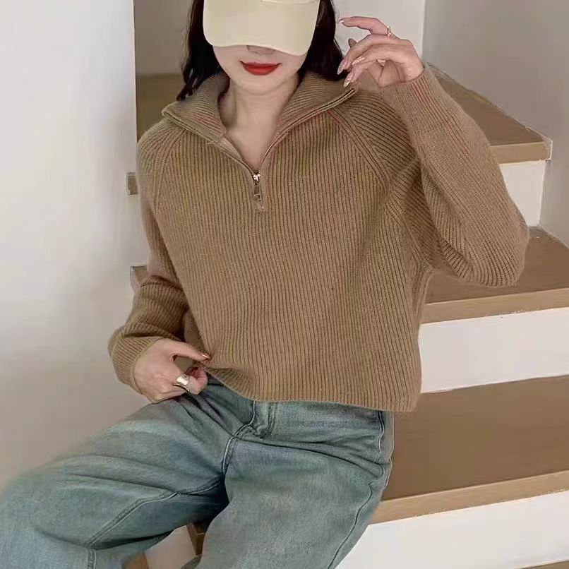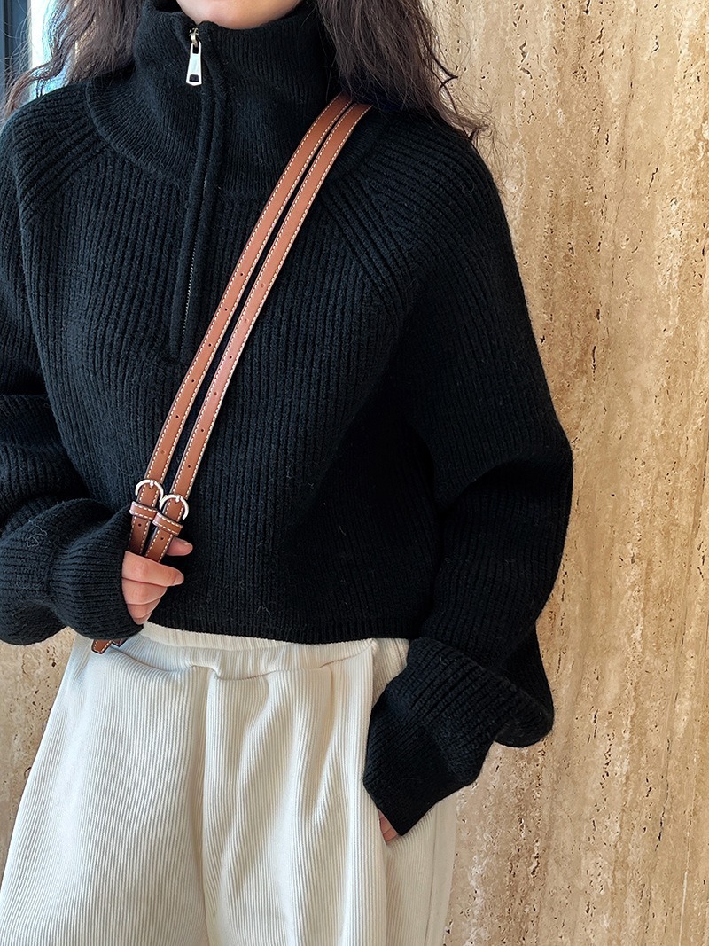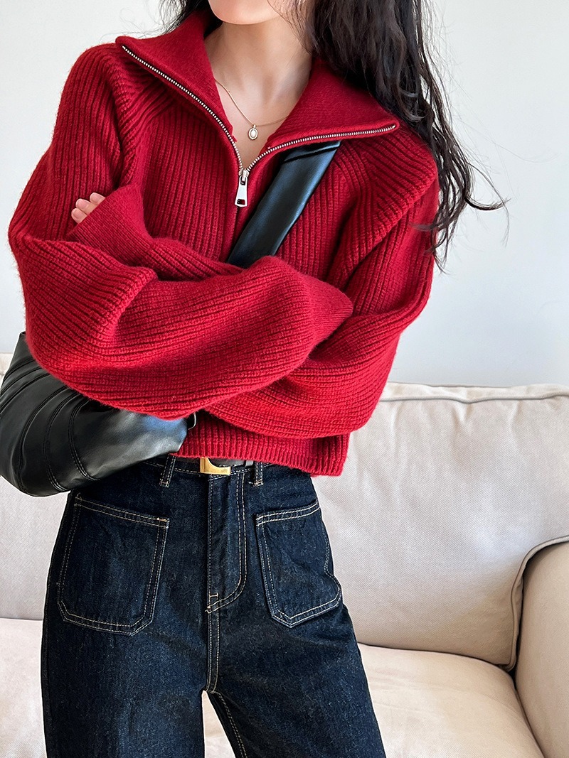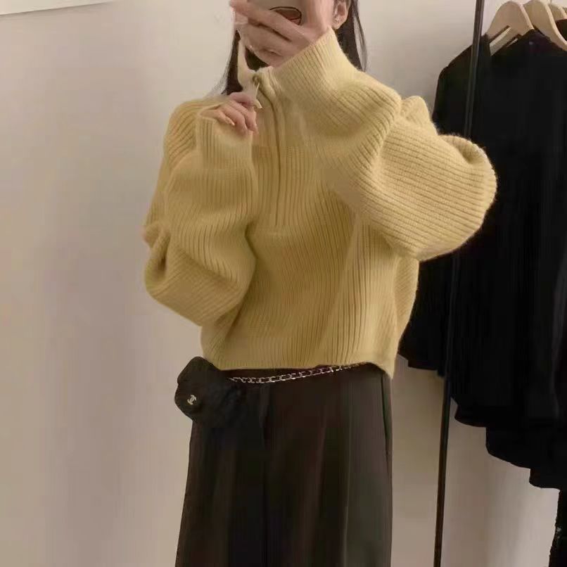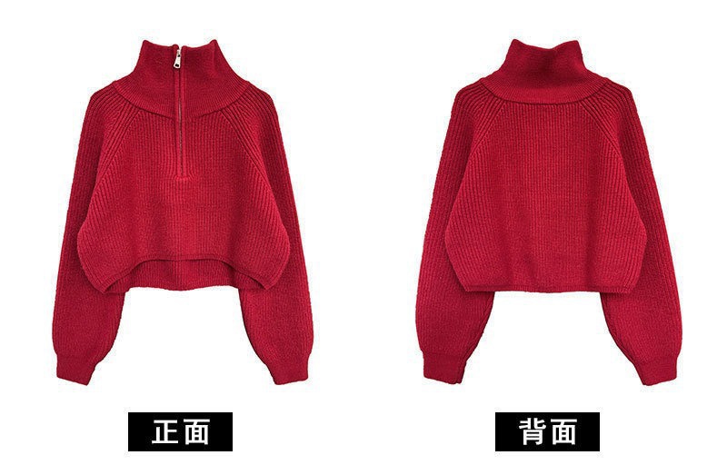 【韩系!高奢短款针织衫】半拉链纯色立领短款针织衫 上衣毛衣 女秋冬新款外套 洋气立领拉链毛衣