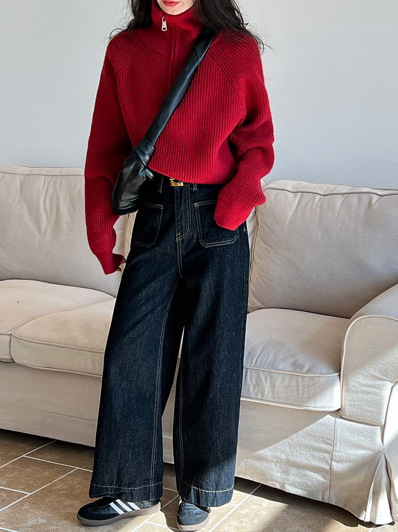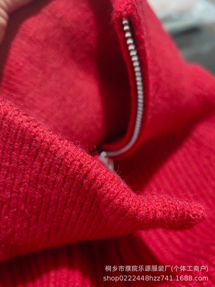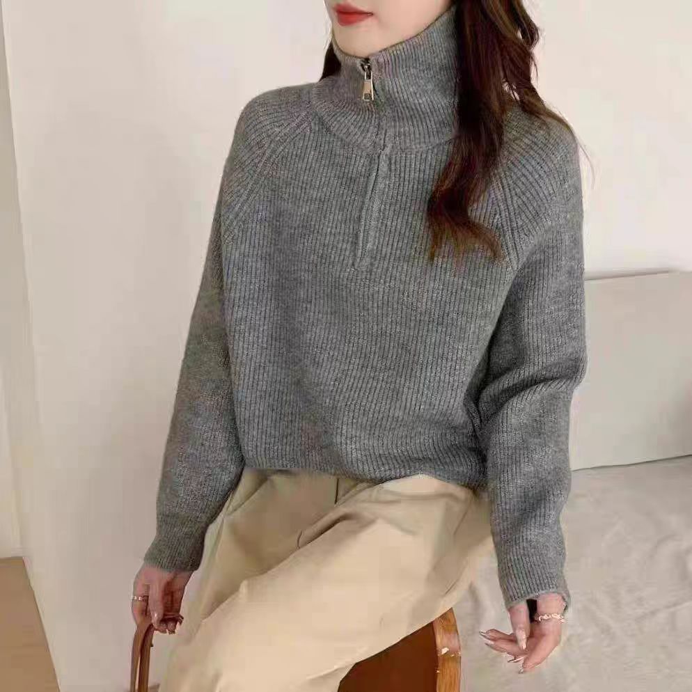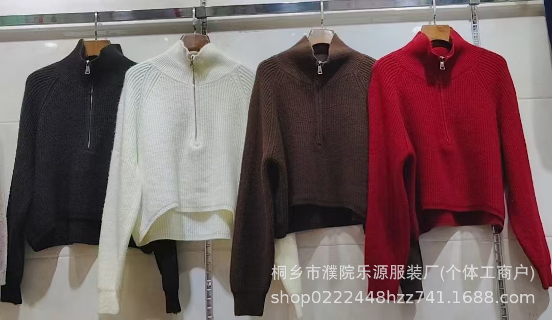 【韩系!高奢短款针织衫】半拉链纯色立领短款针织衫 上衣毛衣 女秋冬新款外套 洋气立领拉链毛衣