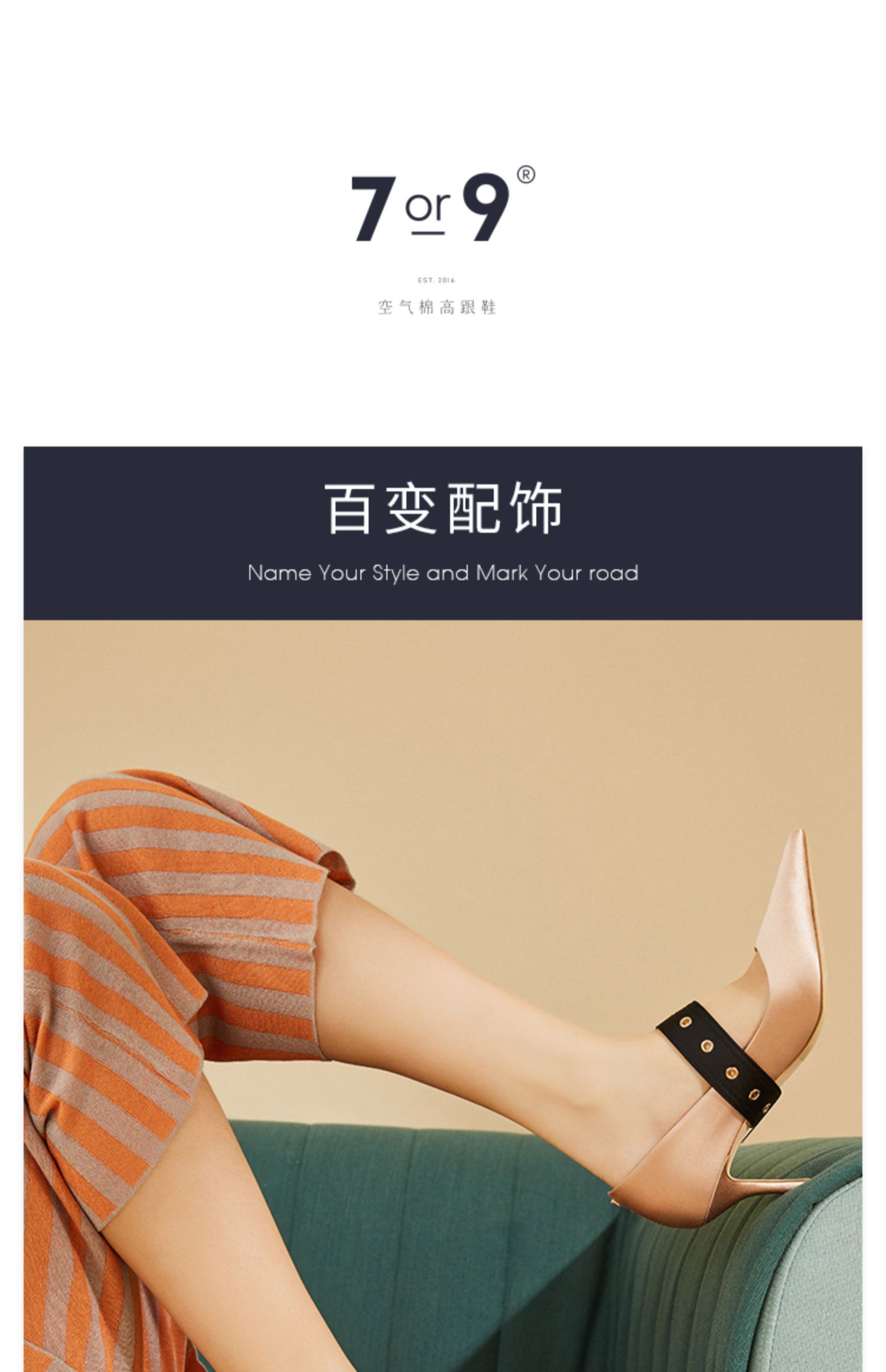 7or9露趾一字带交叉凉鞋高跟鞋黑丝绒/霞多丽