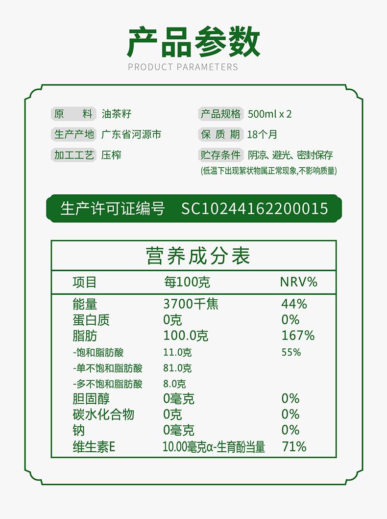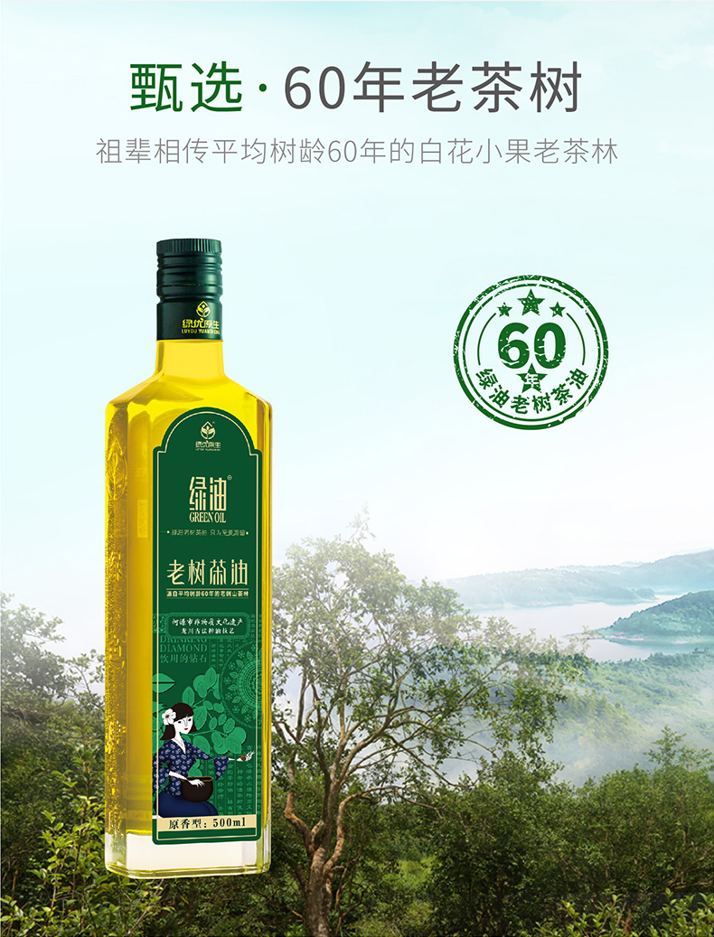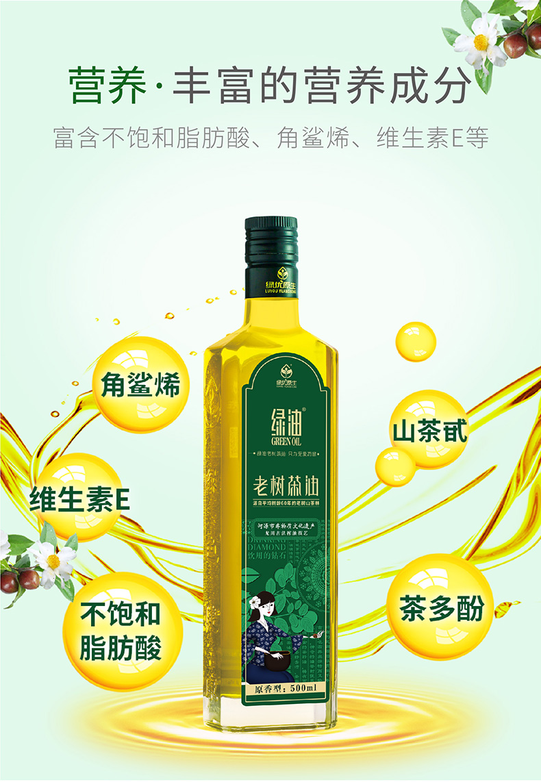 绿油老树茶油 物理压榨原香型500ml*2瓶