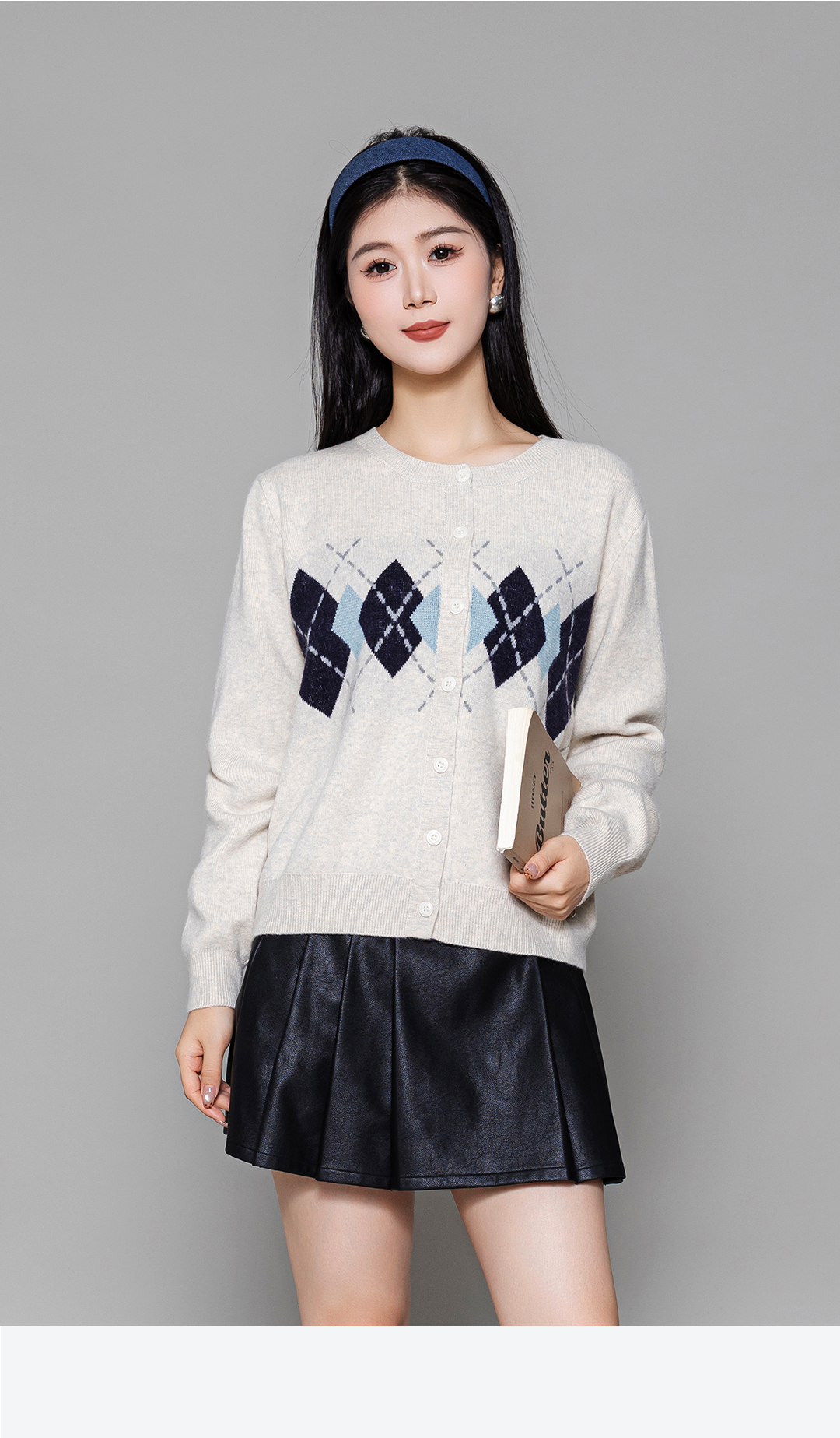 冬上新复古菱格解锁学院风穿搭针织开衫2254072
