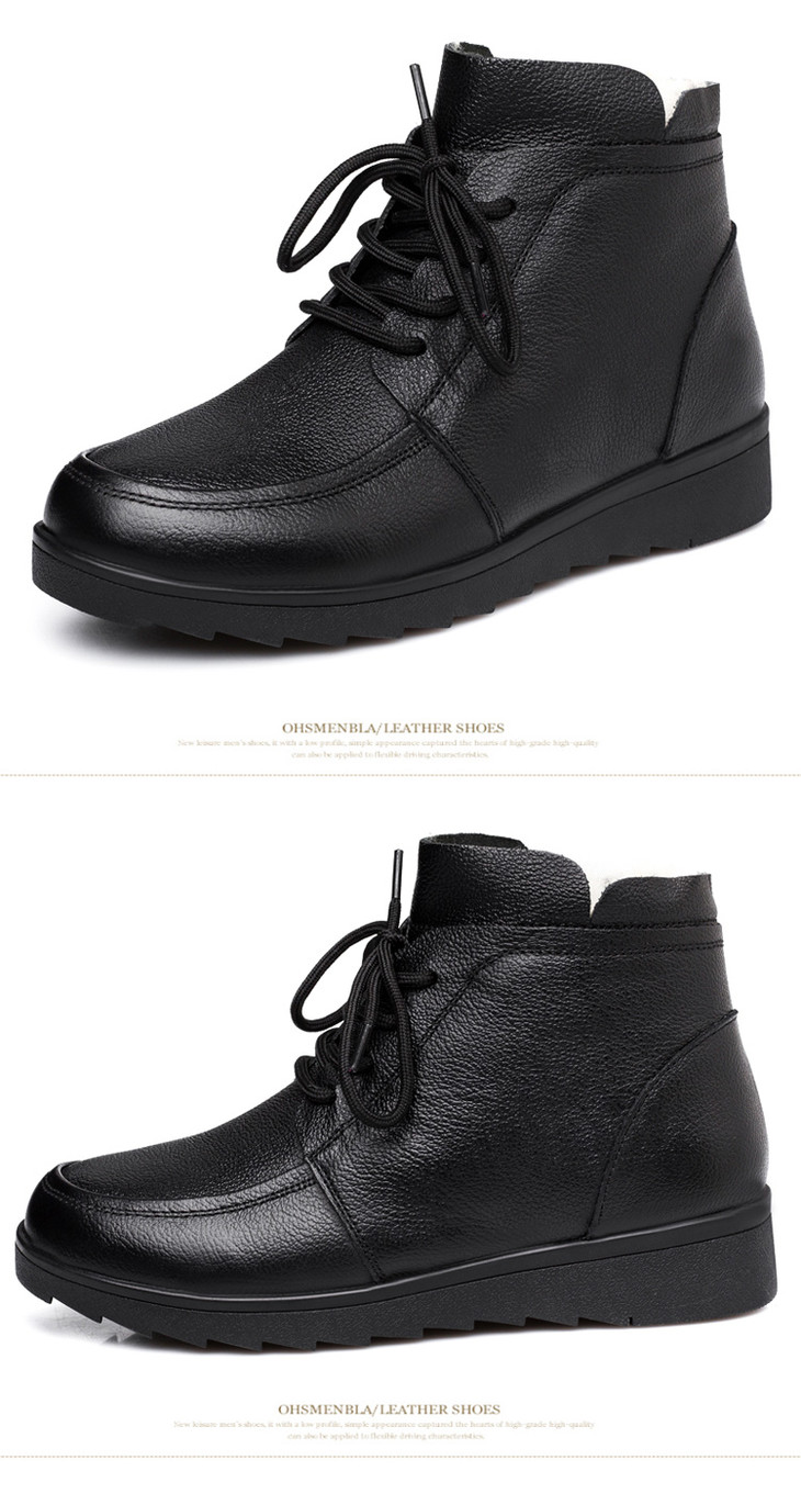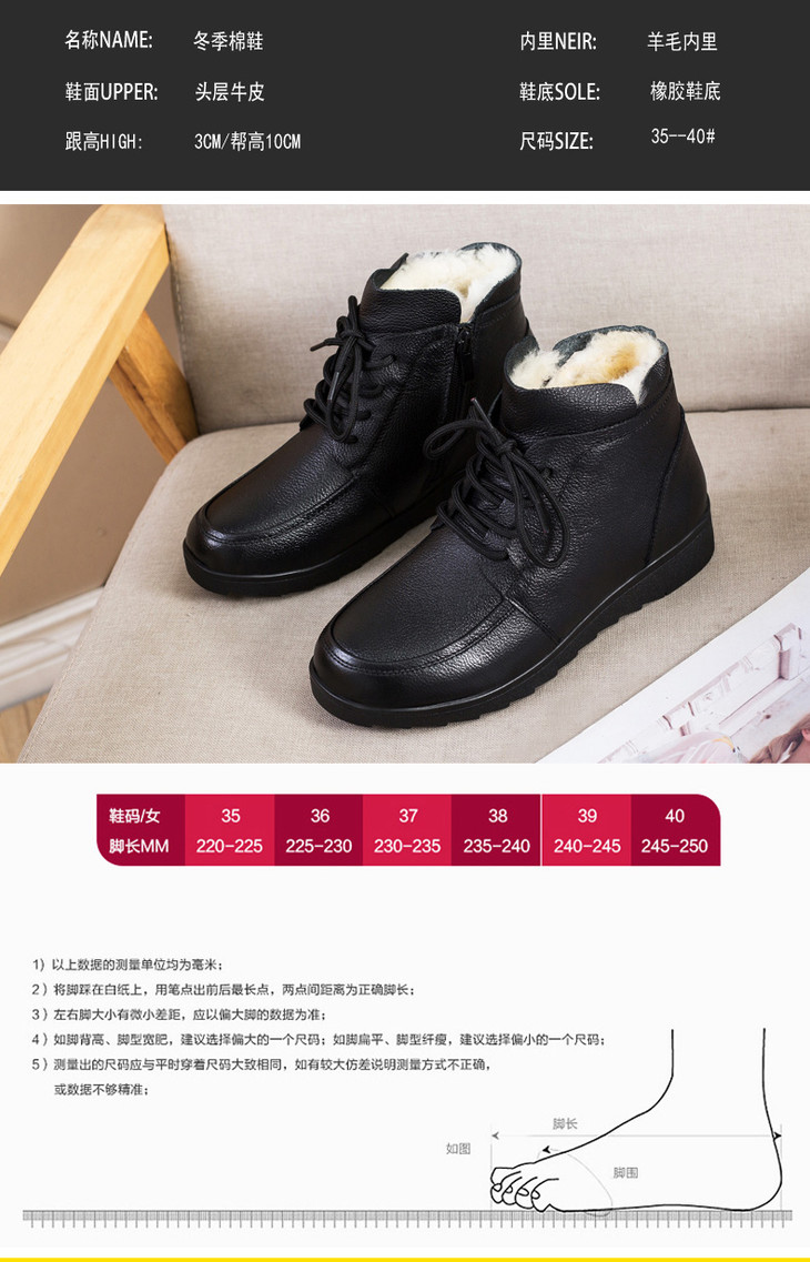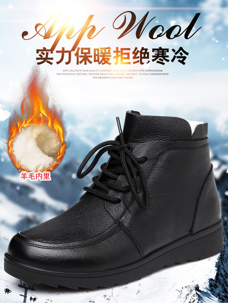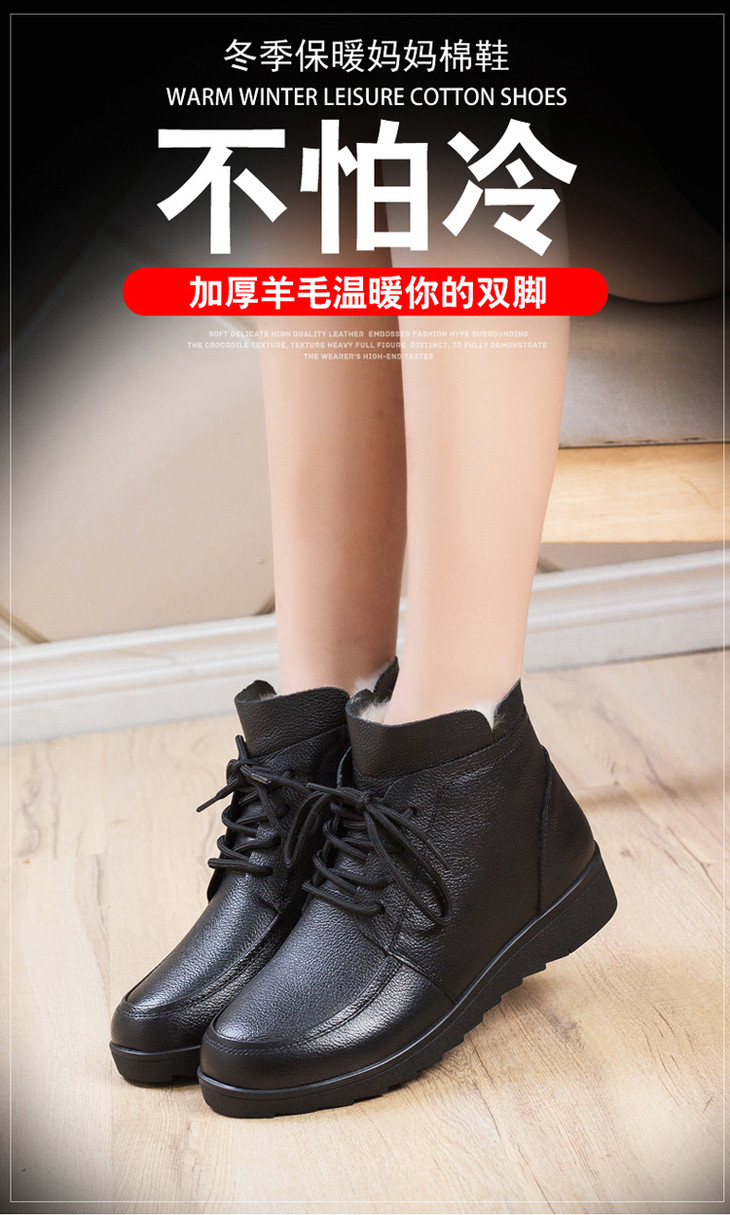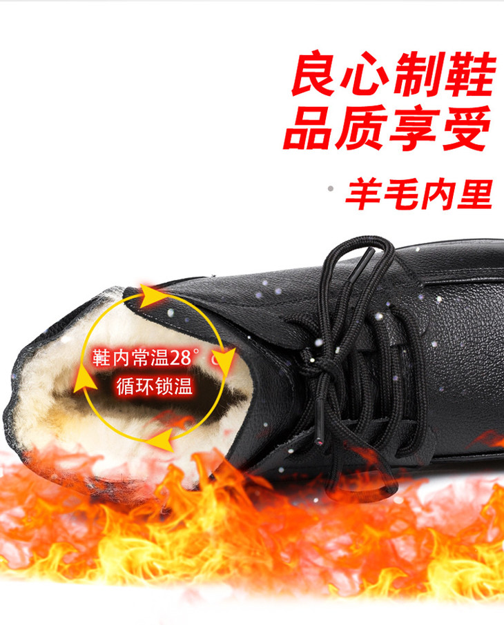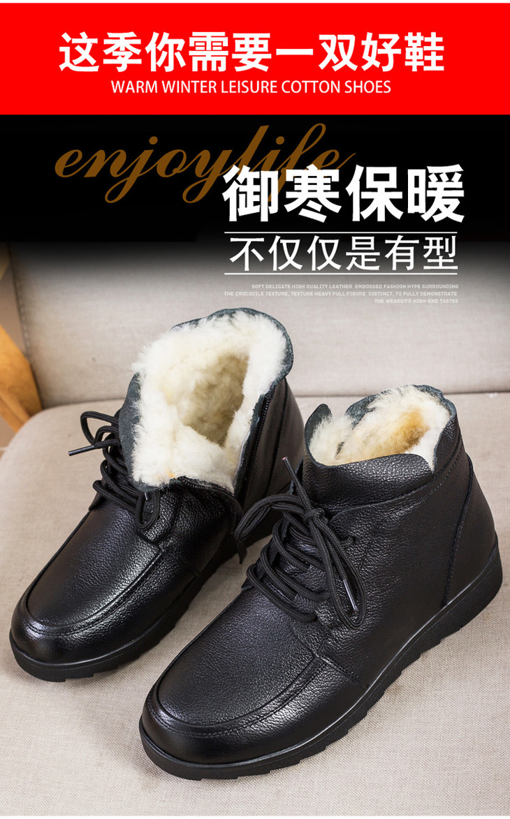 【实付满399送保温杯】【女款冬季防滑棉鞋】加绒保暖棉皮鞋 加厚羊毛女款皮靴