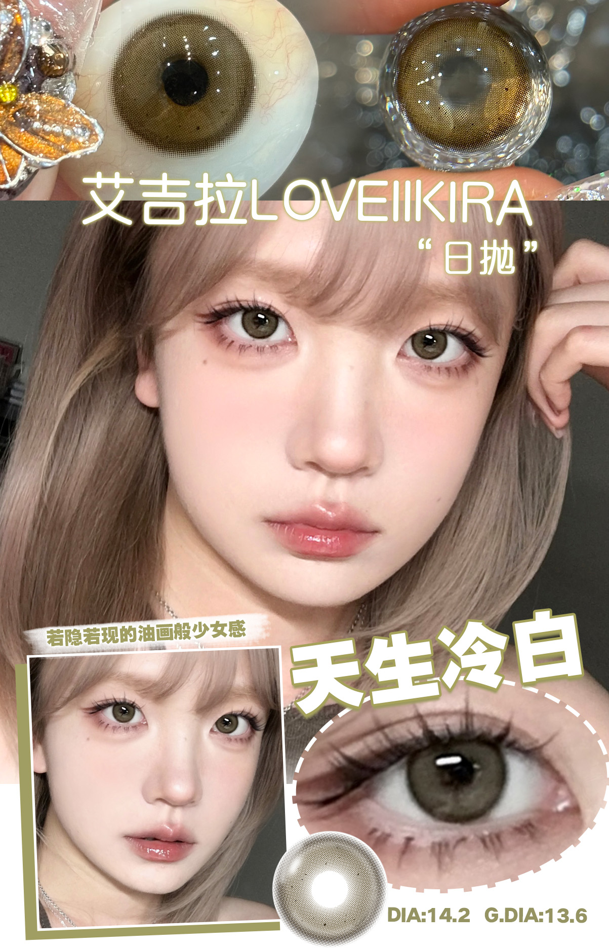loveiikira日抛 天生冷白 闷青橄榄绿 14.2mm/14.5mm 日抛无售后!!