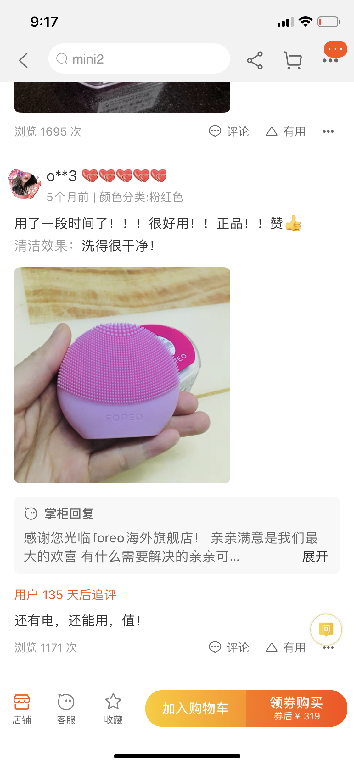 评价还不错,参考。旗舰店618活动价319。本店折上折269