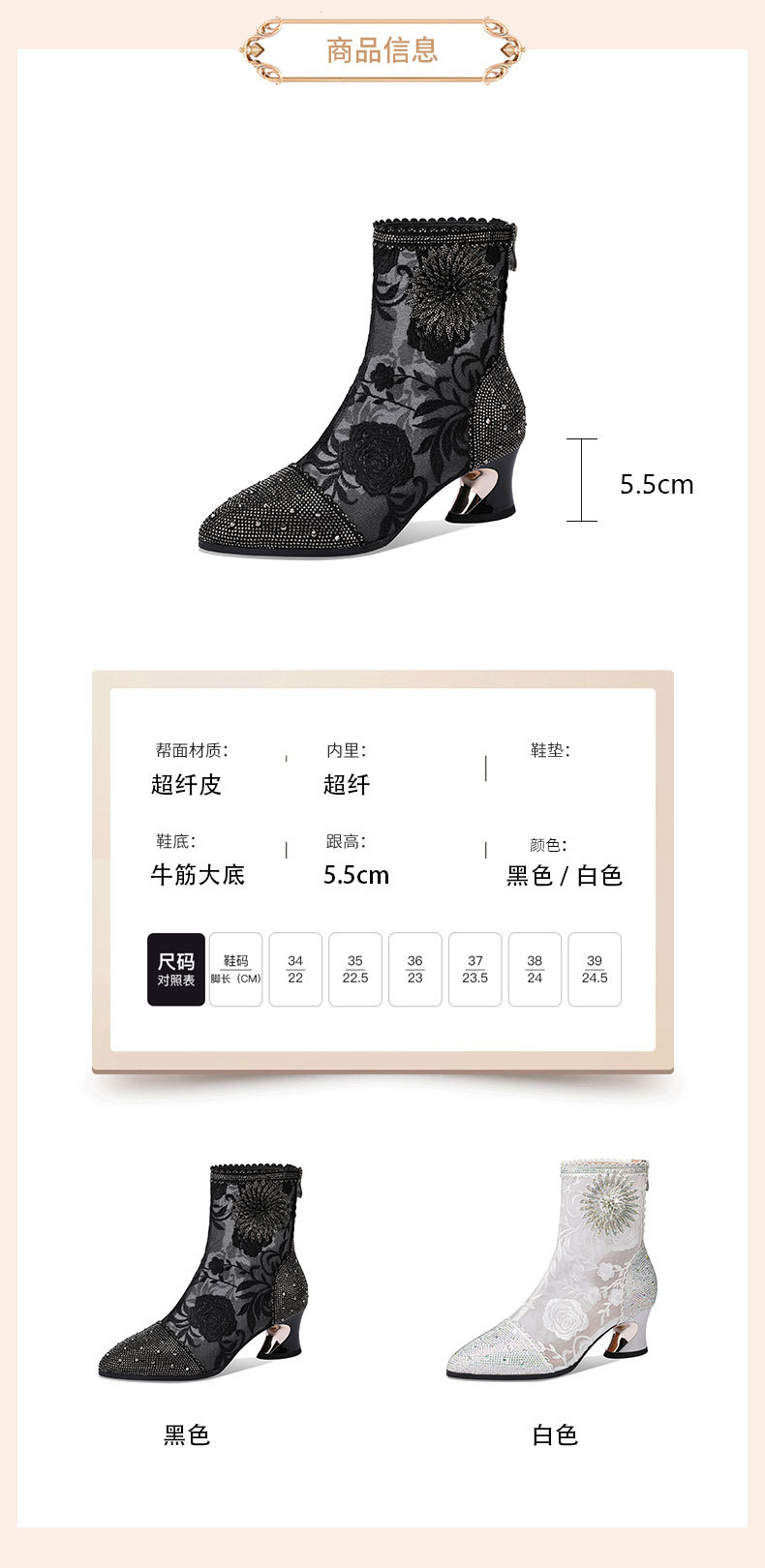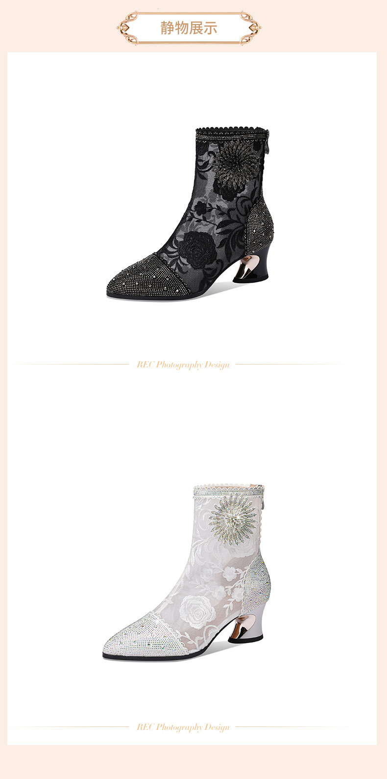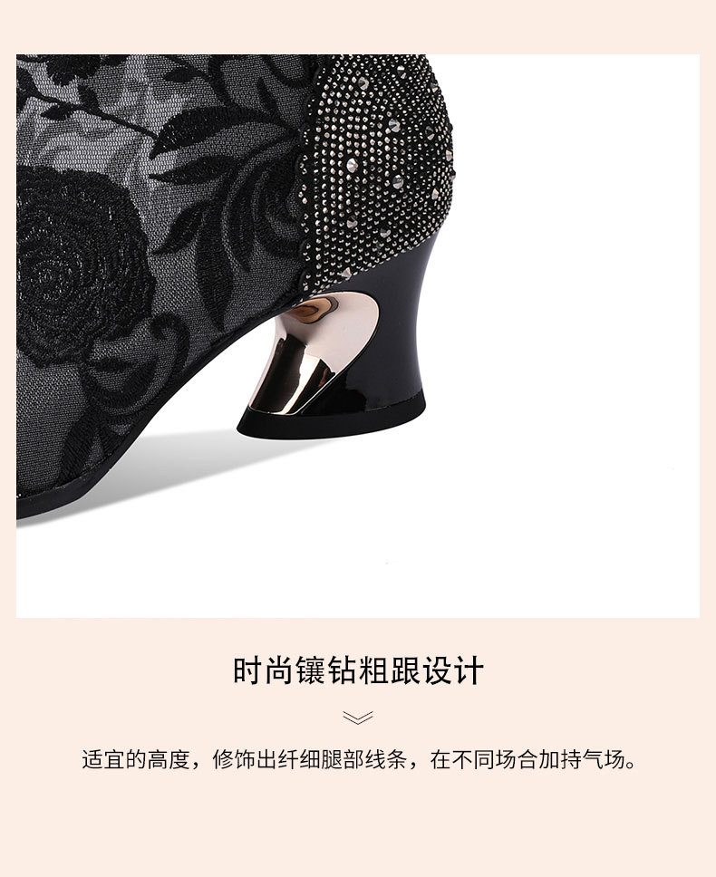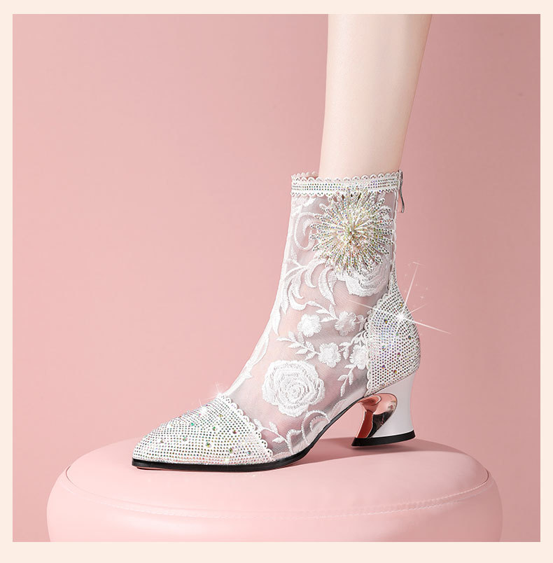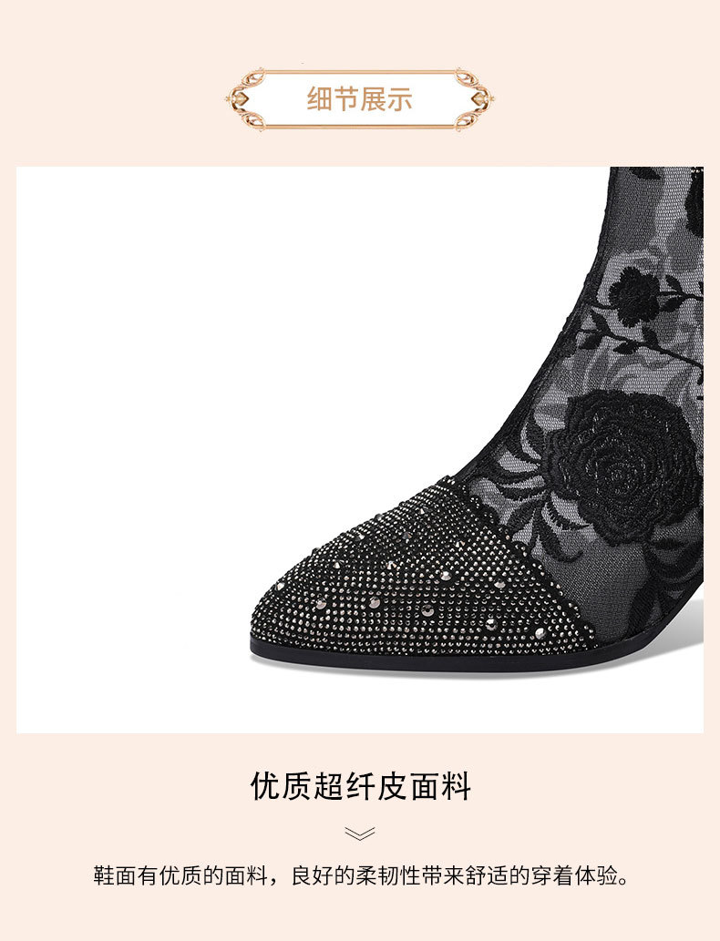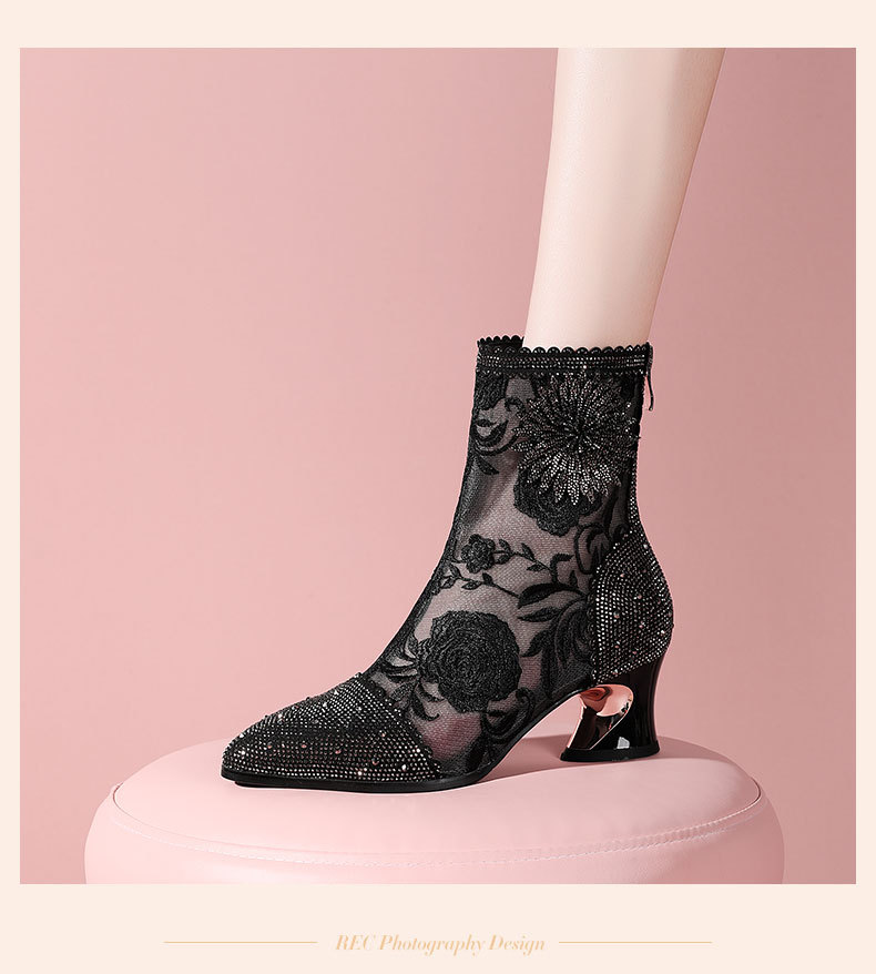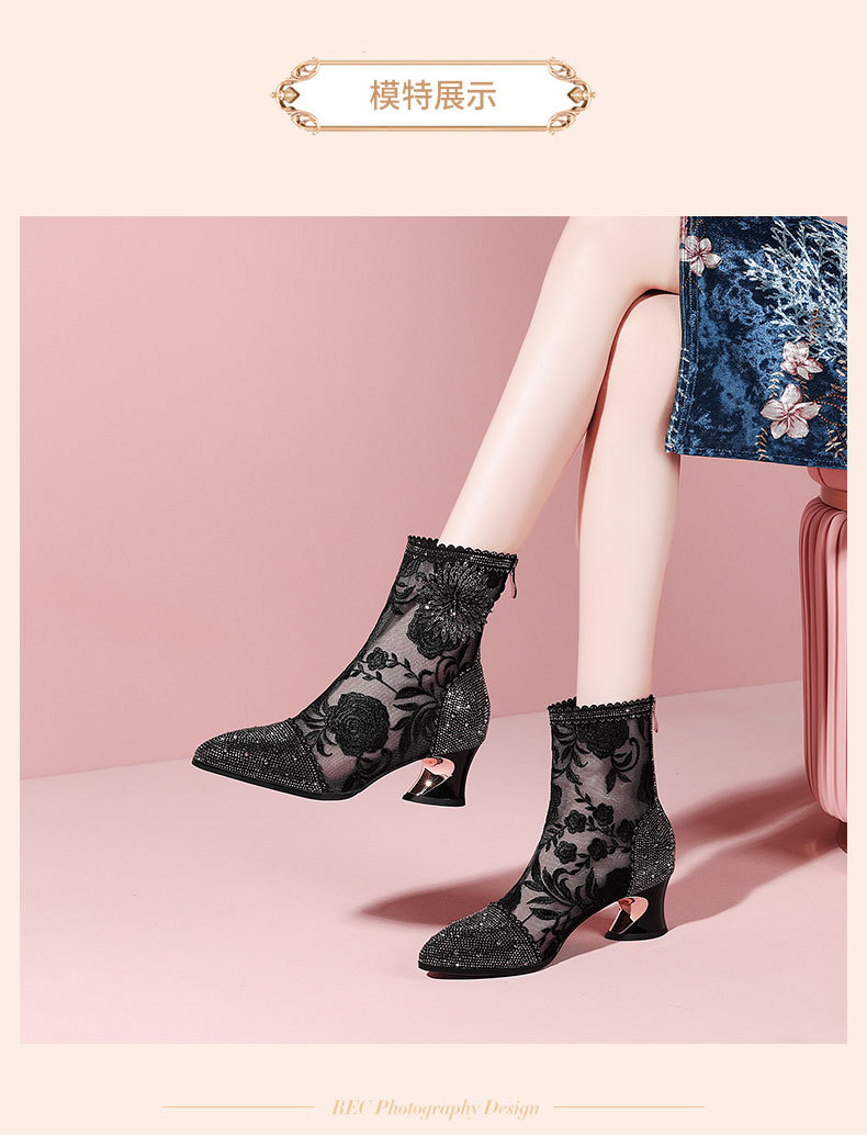 头花朵民族风高跟短靴粗跟靴子网纱镂空凉靴YSML-D788-K750