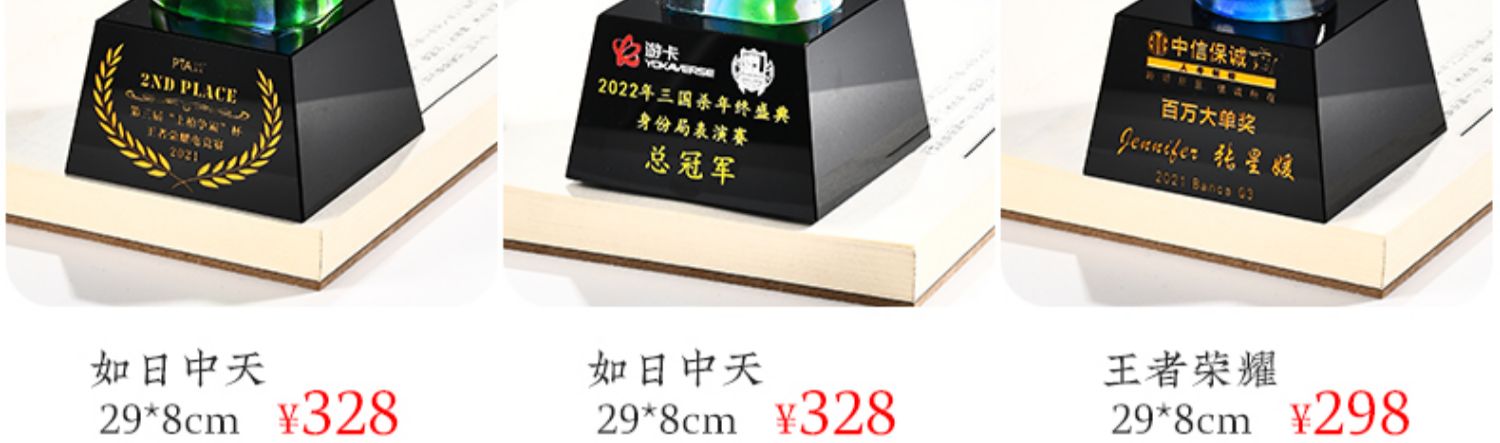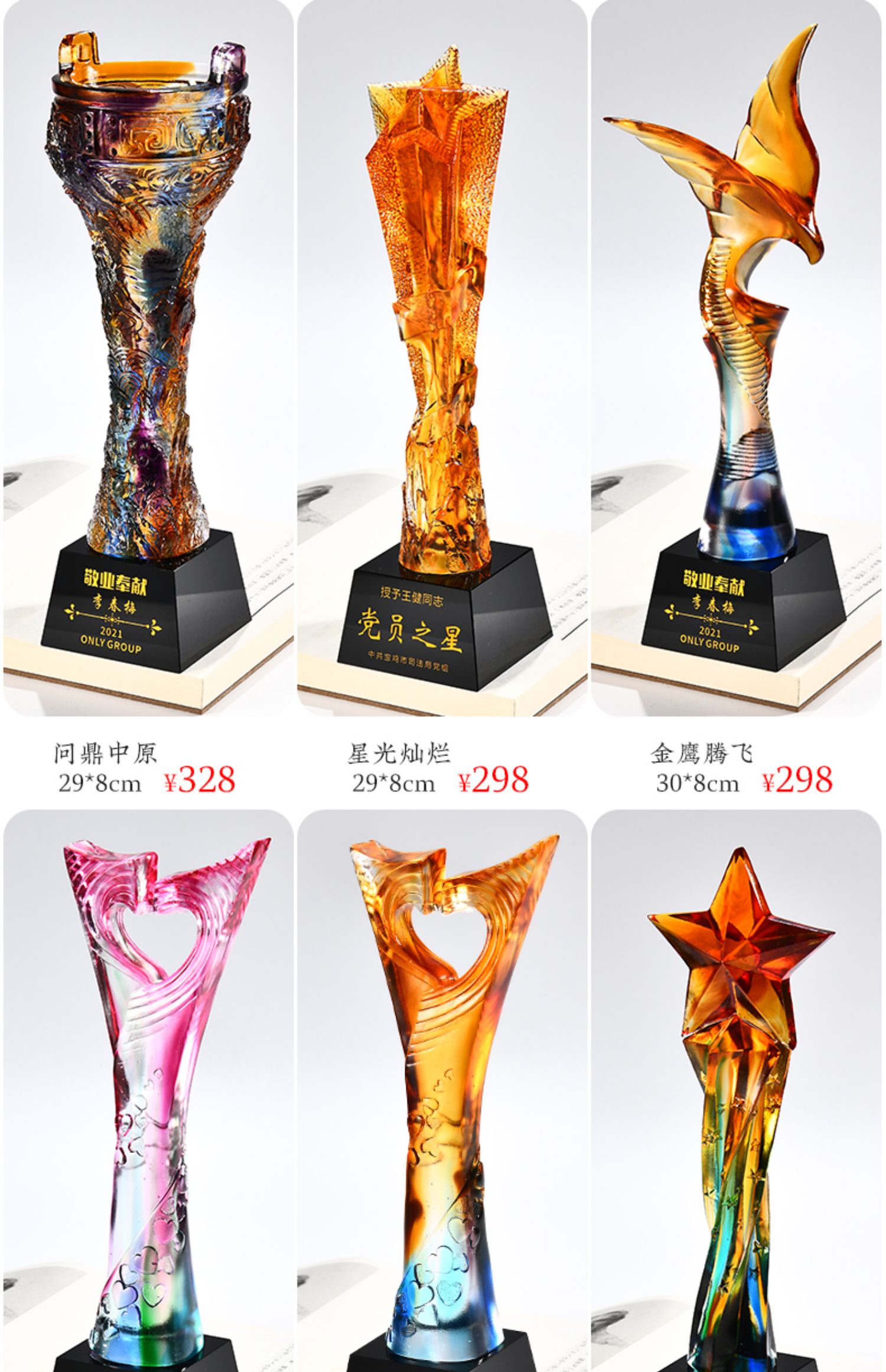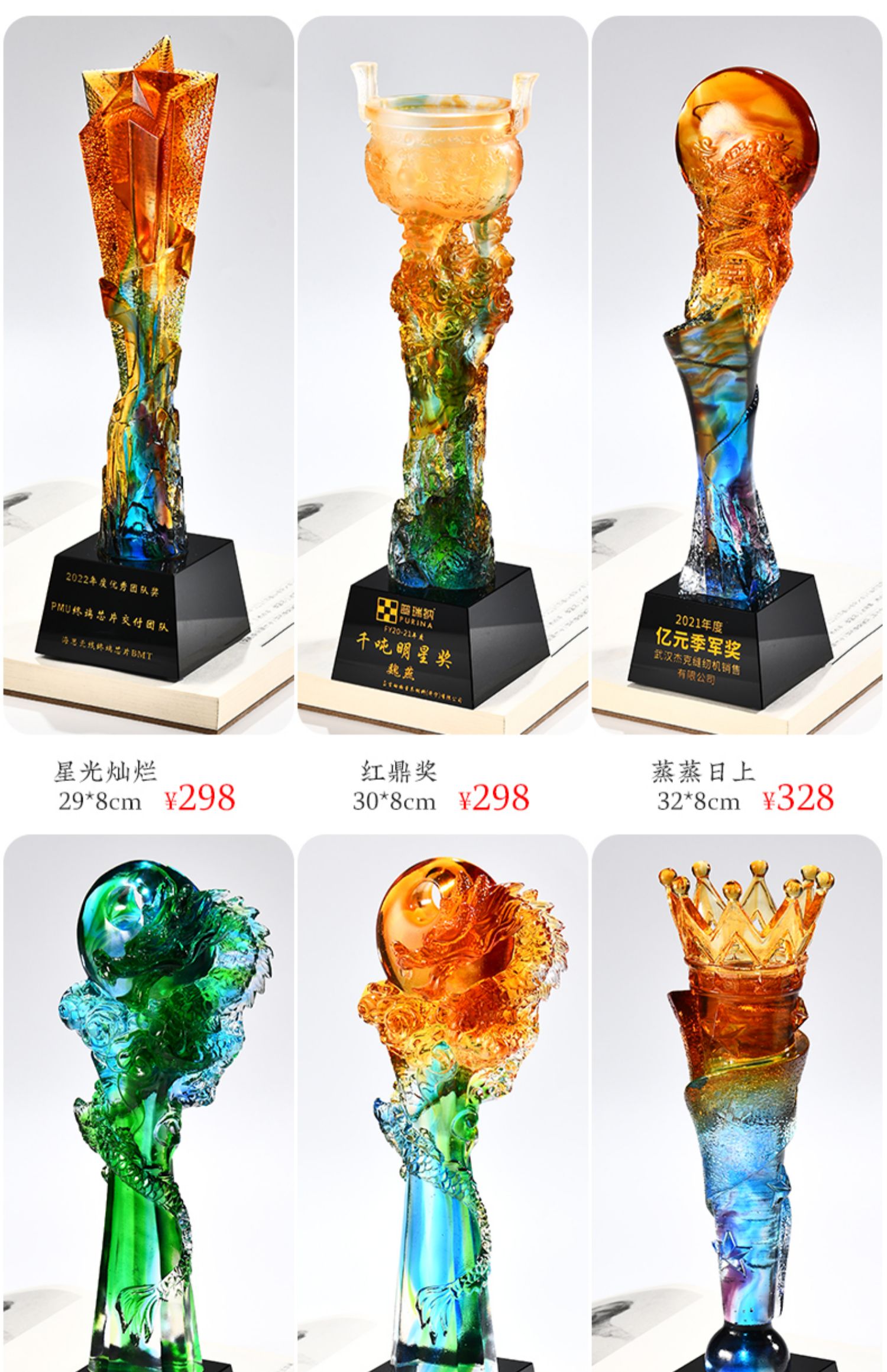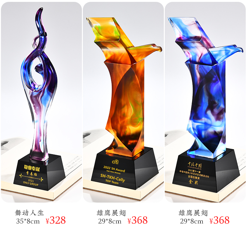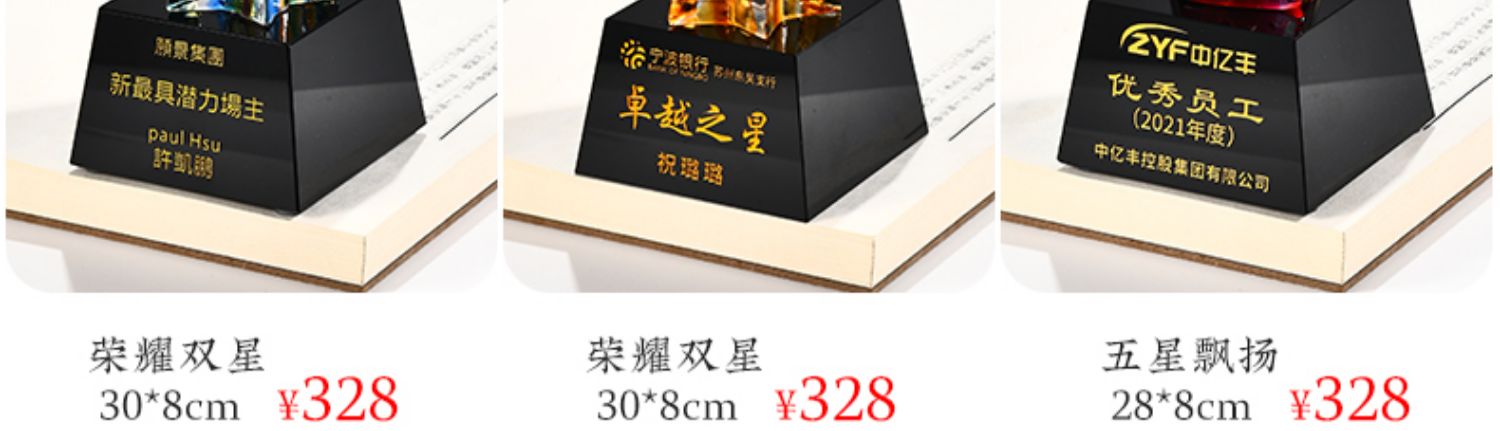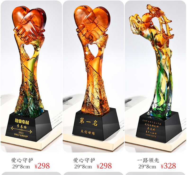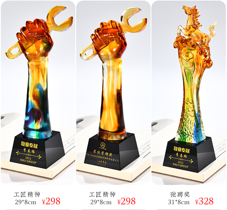 琉璃奖杯高档大气创意定制五角星优秀员工订做刻字冠军水晶牌古法琉璃