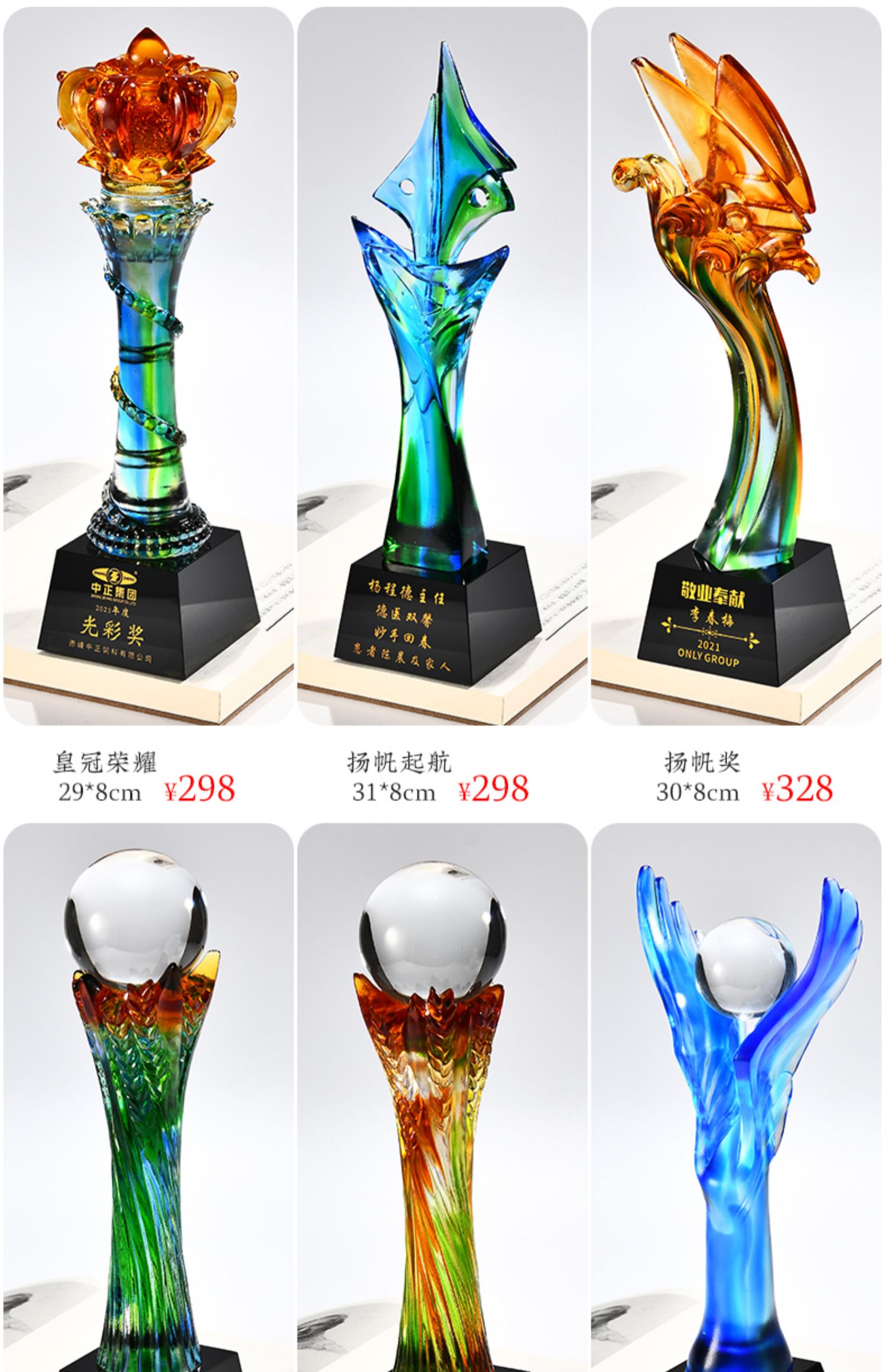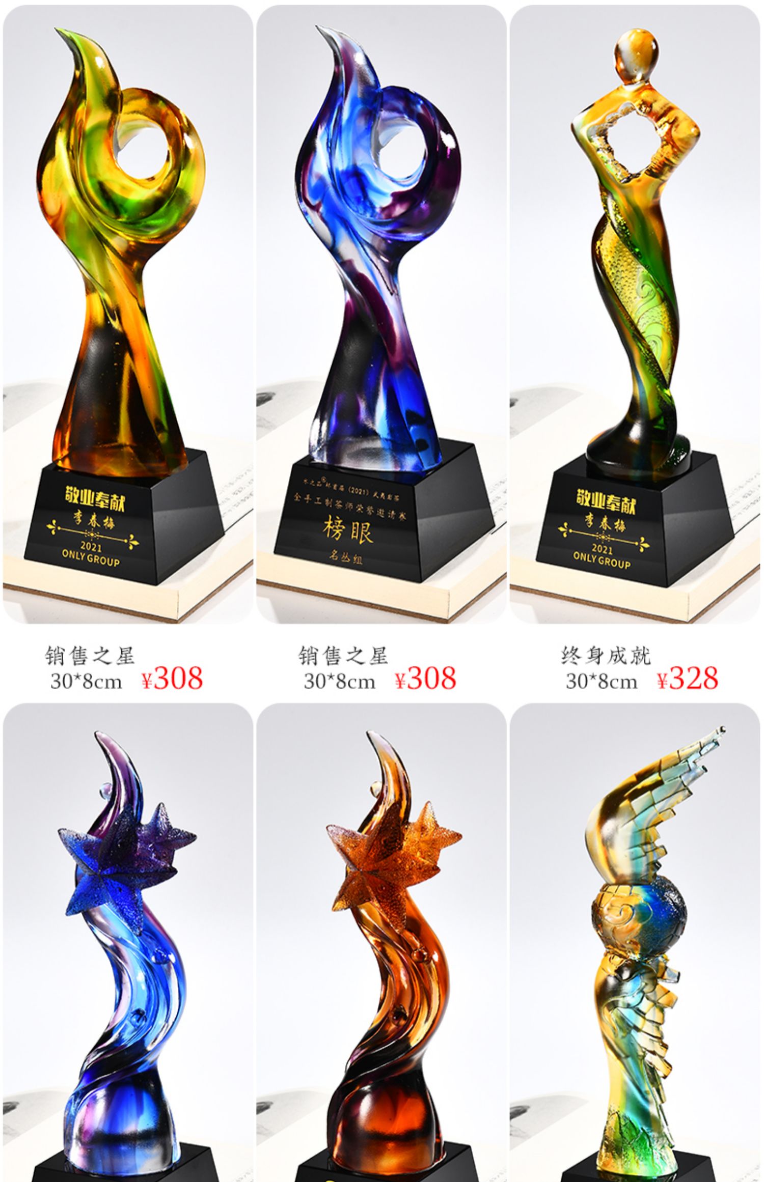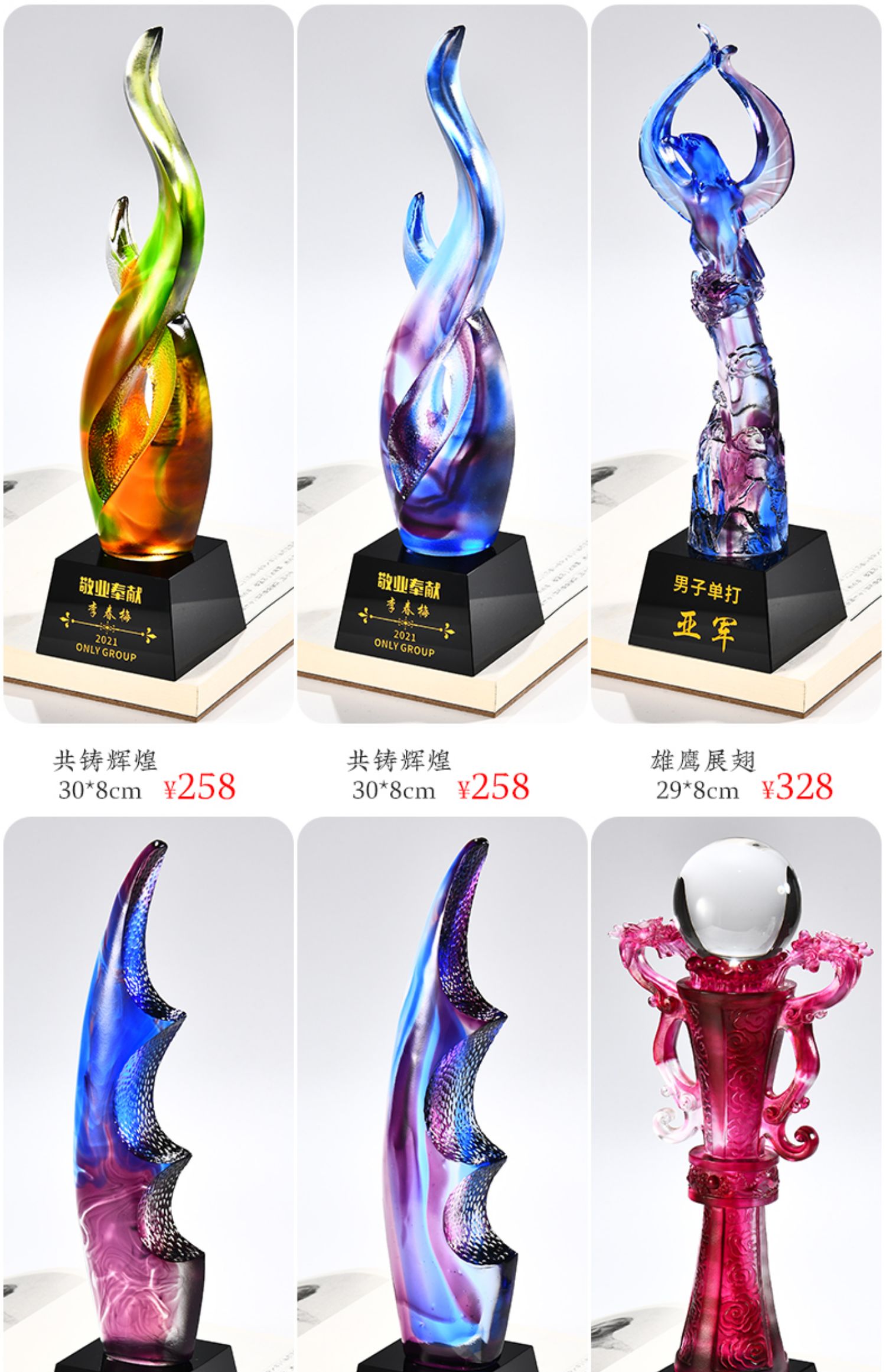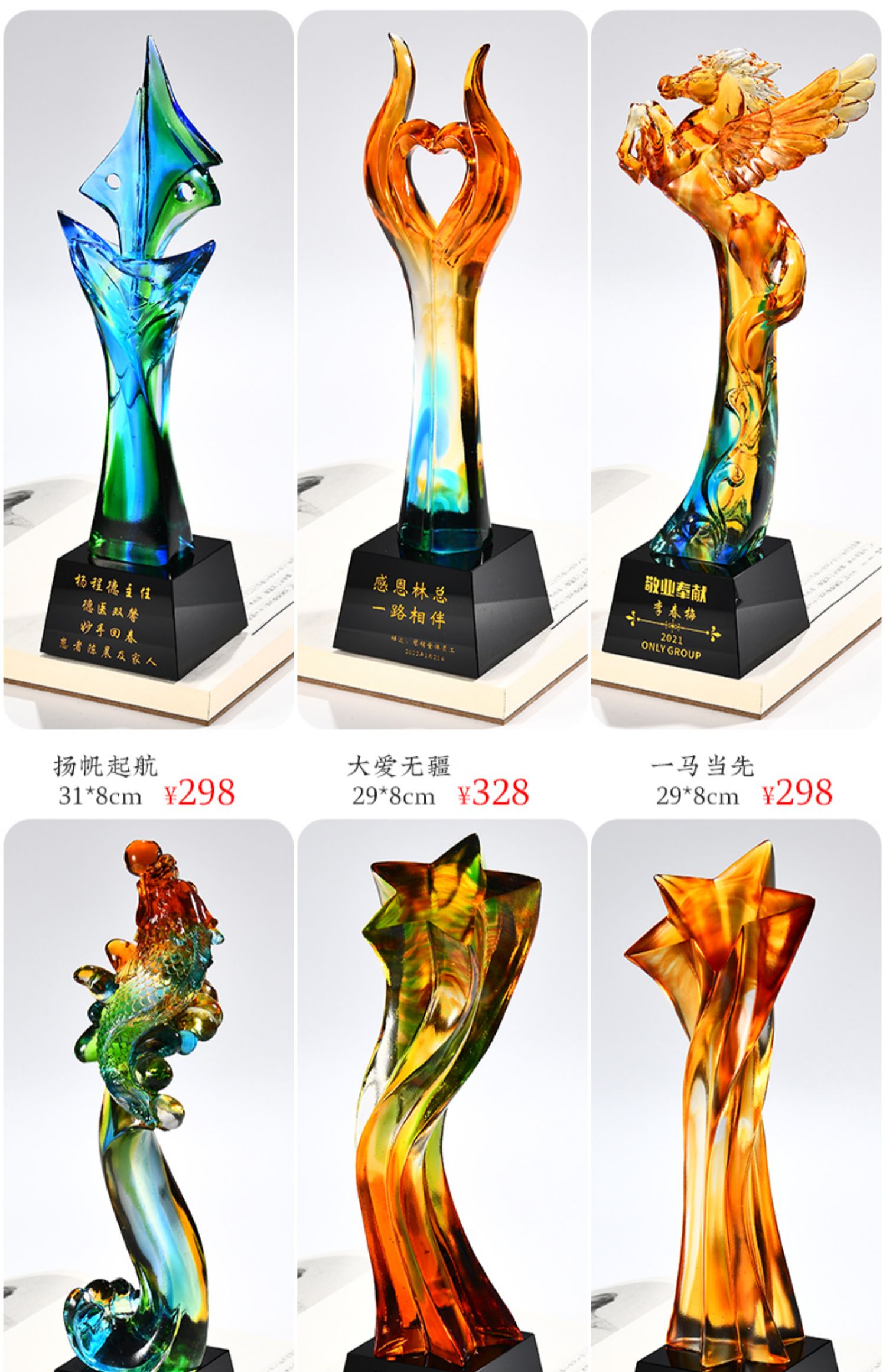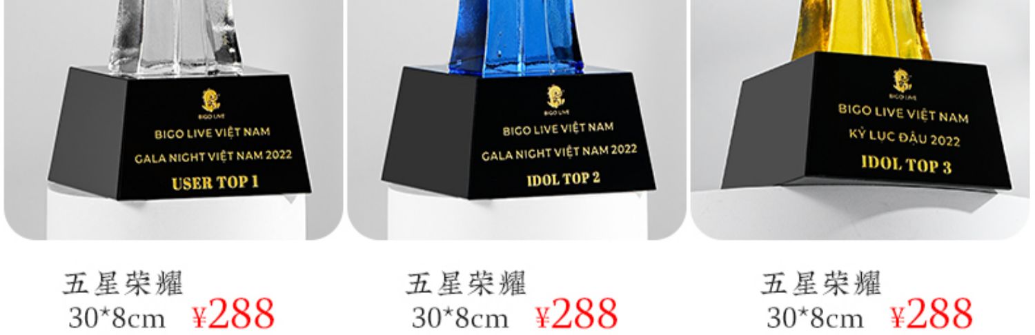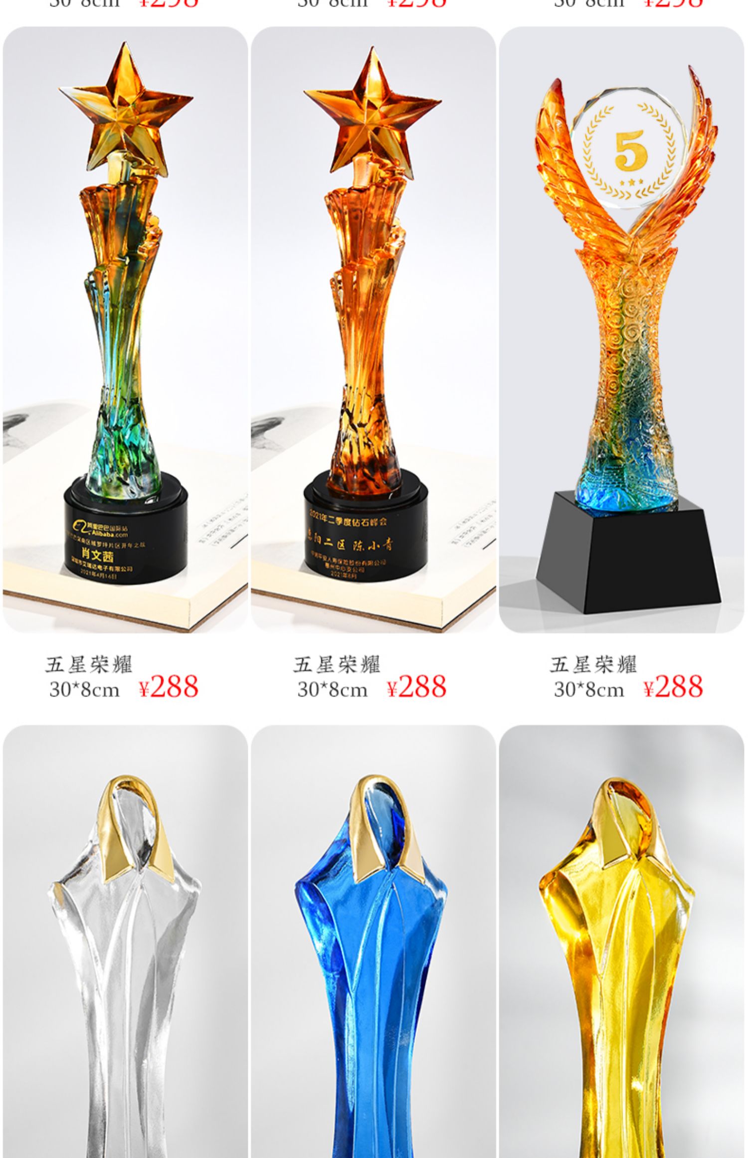 琉璃奖杯高档大气创意定制五角星优秀员工订做刻字冠军水晶牌古法琉璃