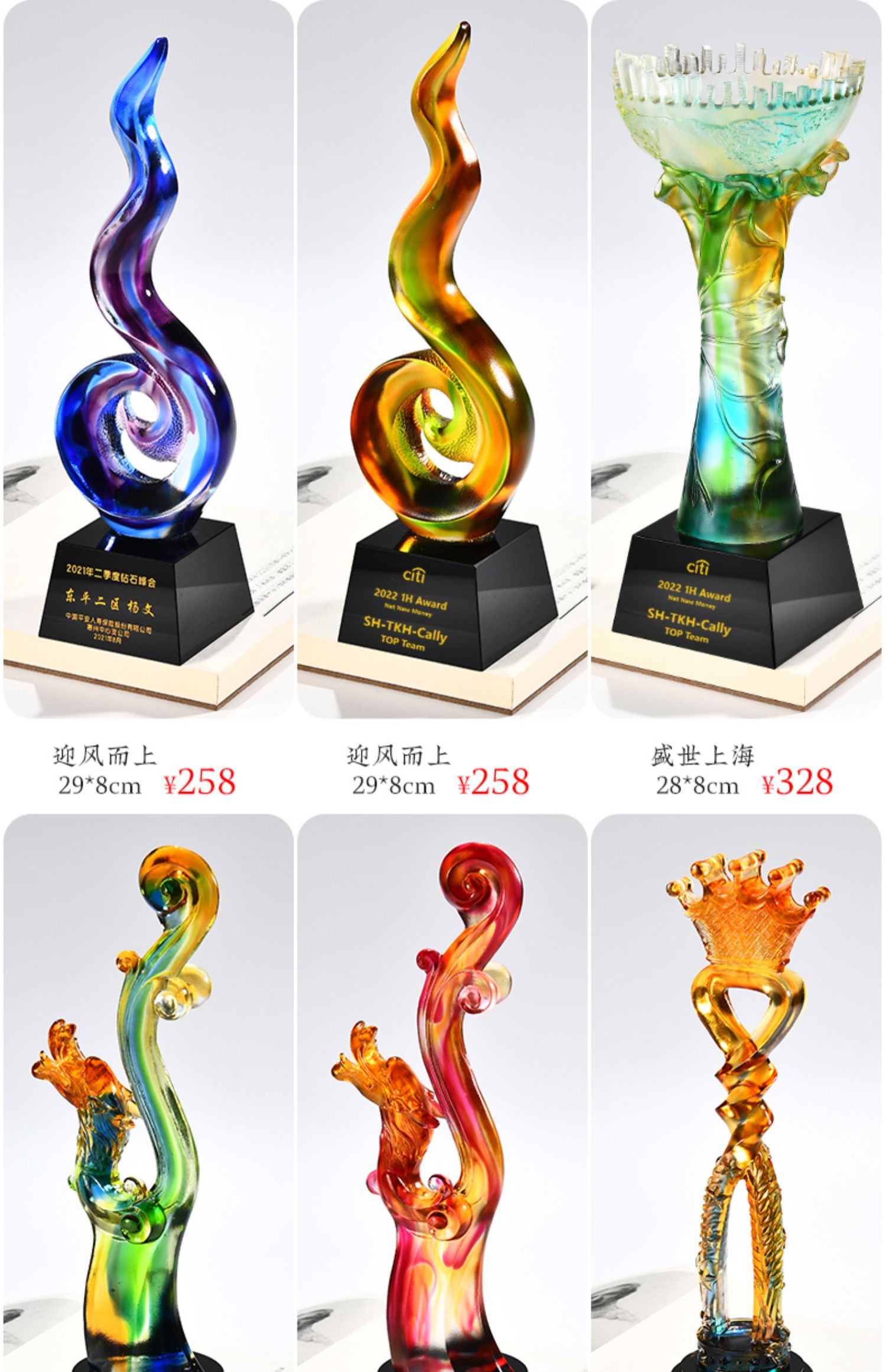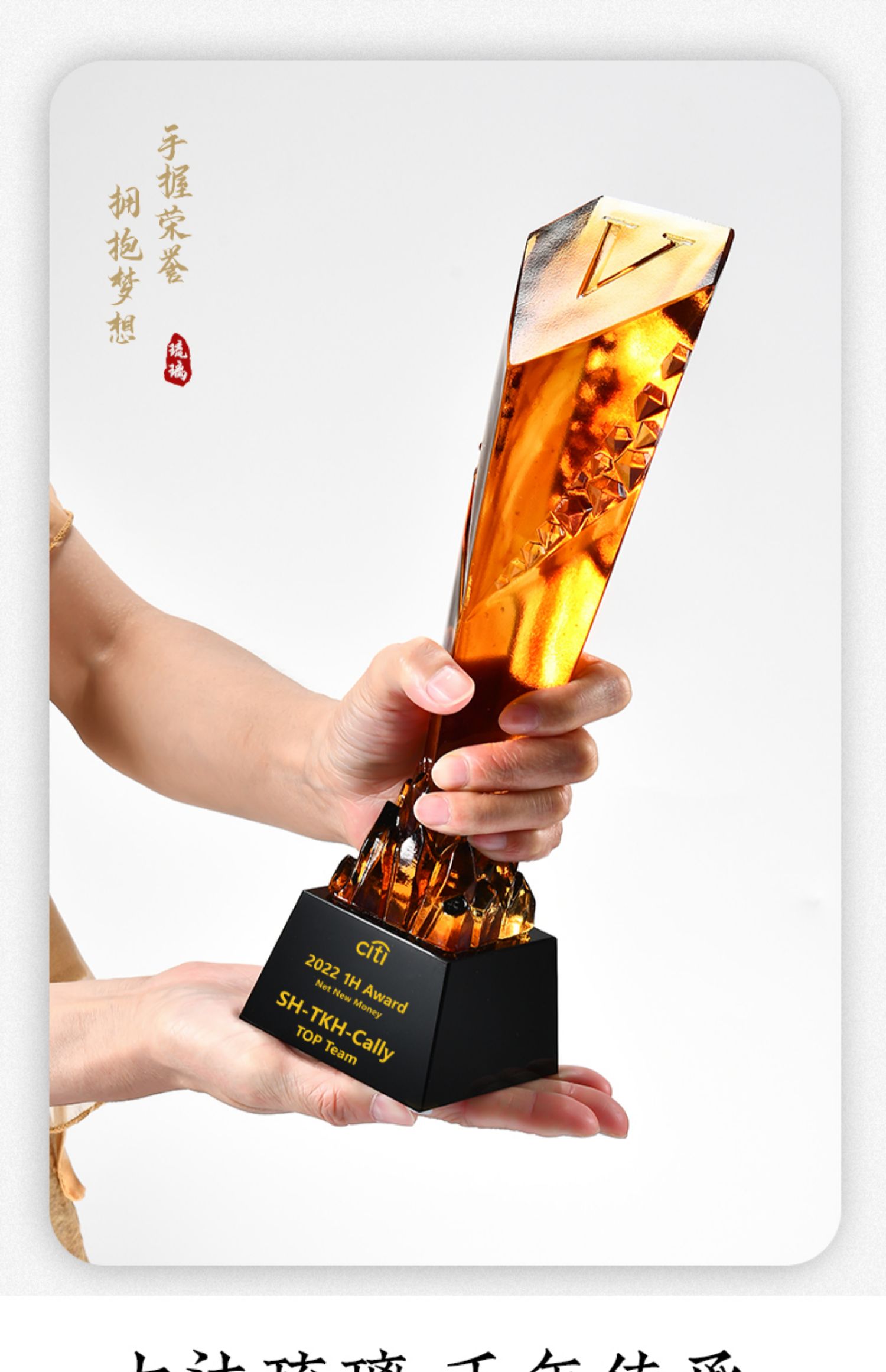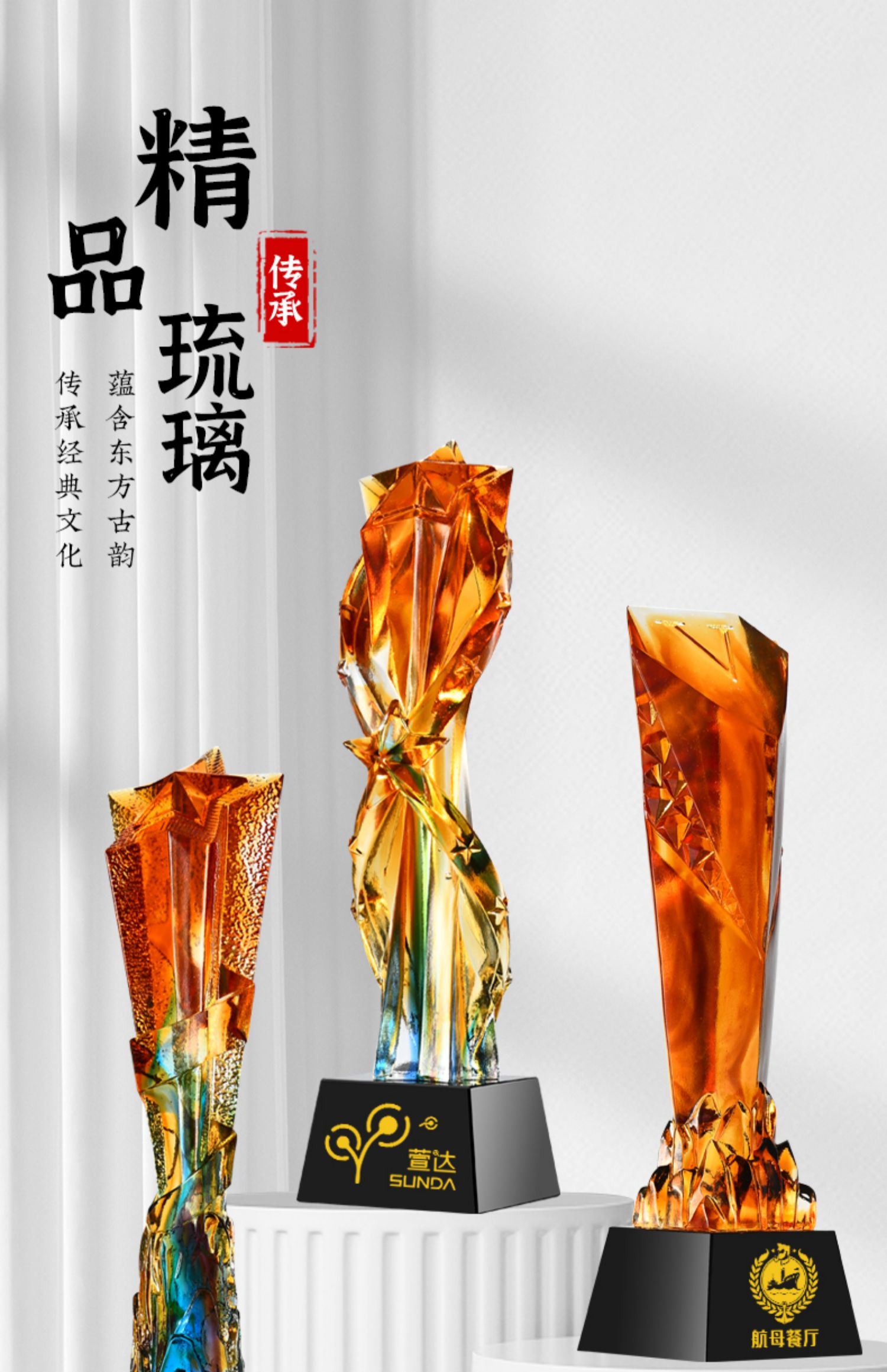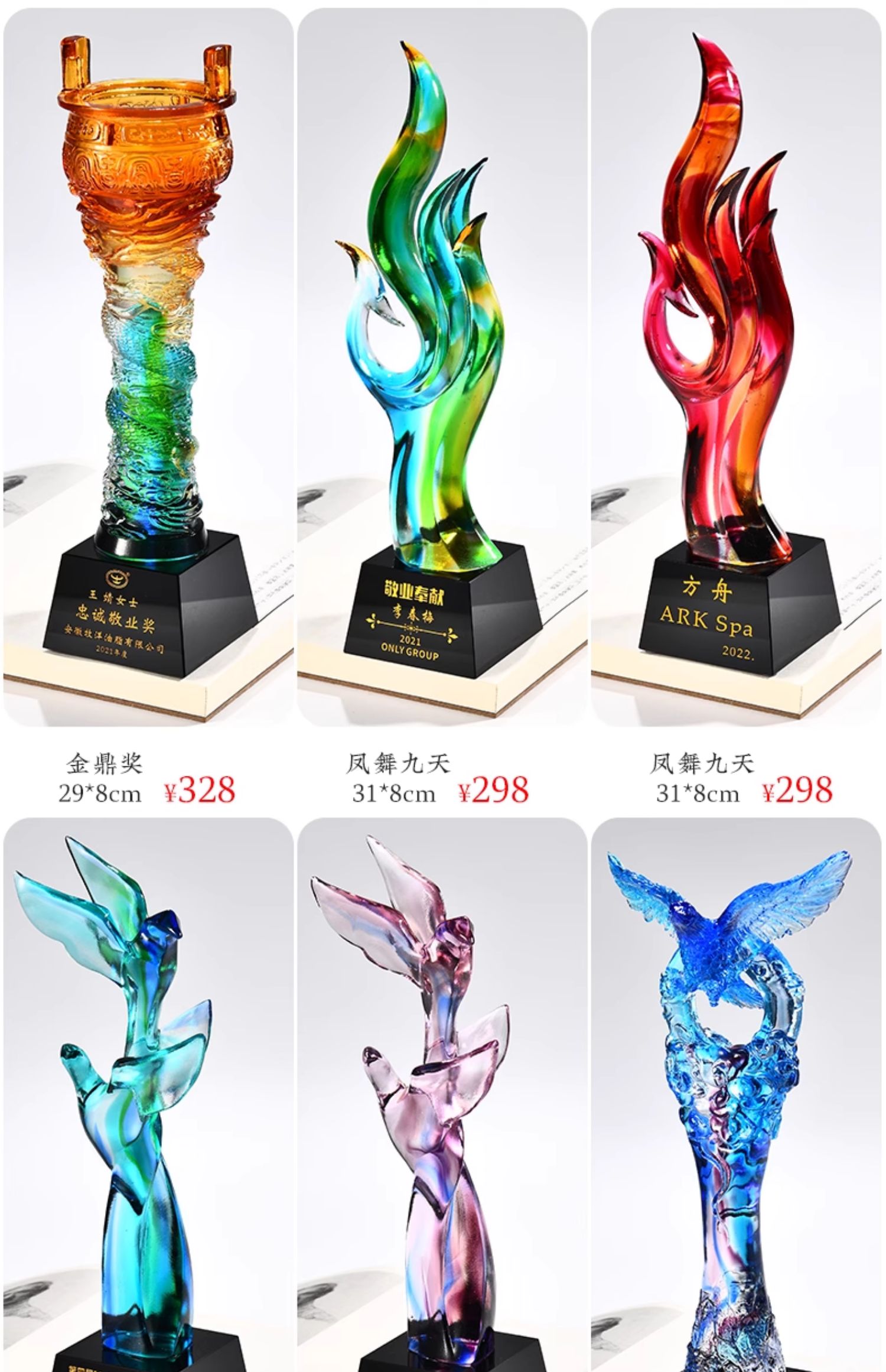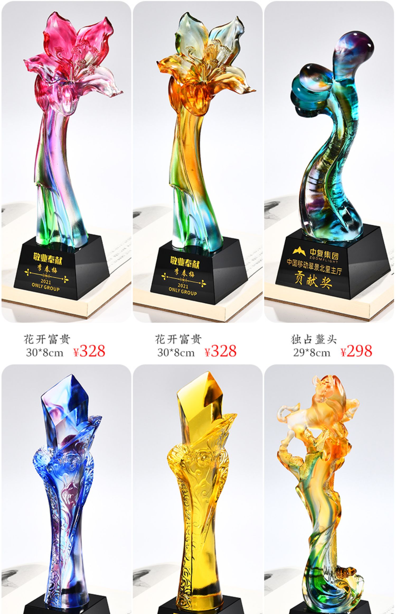 琉璃奖杯高档大气创意定制五角星优秀员工订做刻字冠军水晶牌古法琉璃