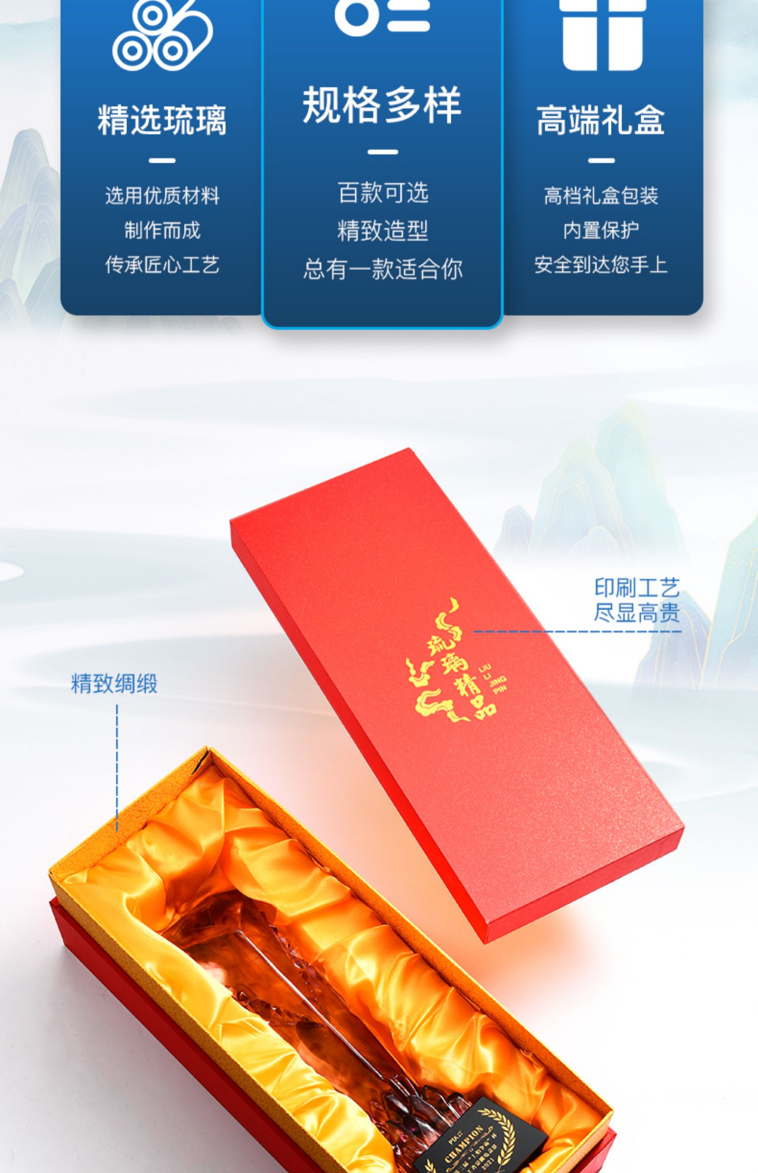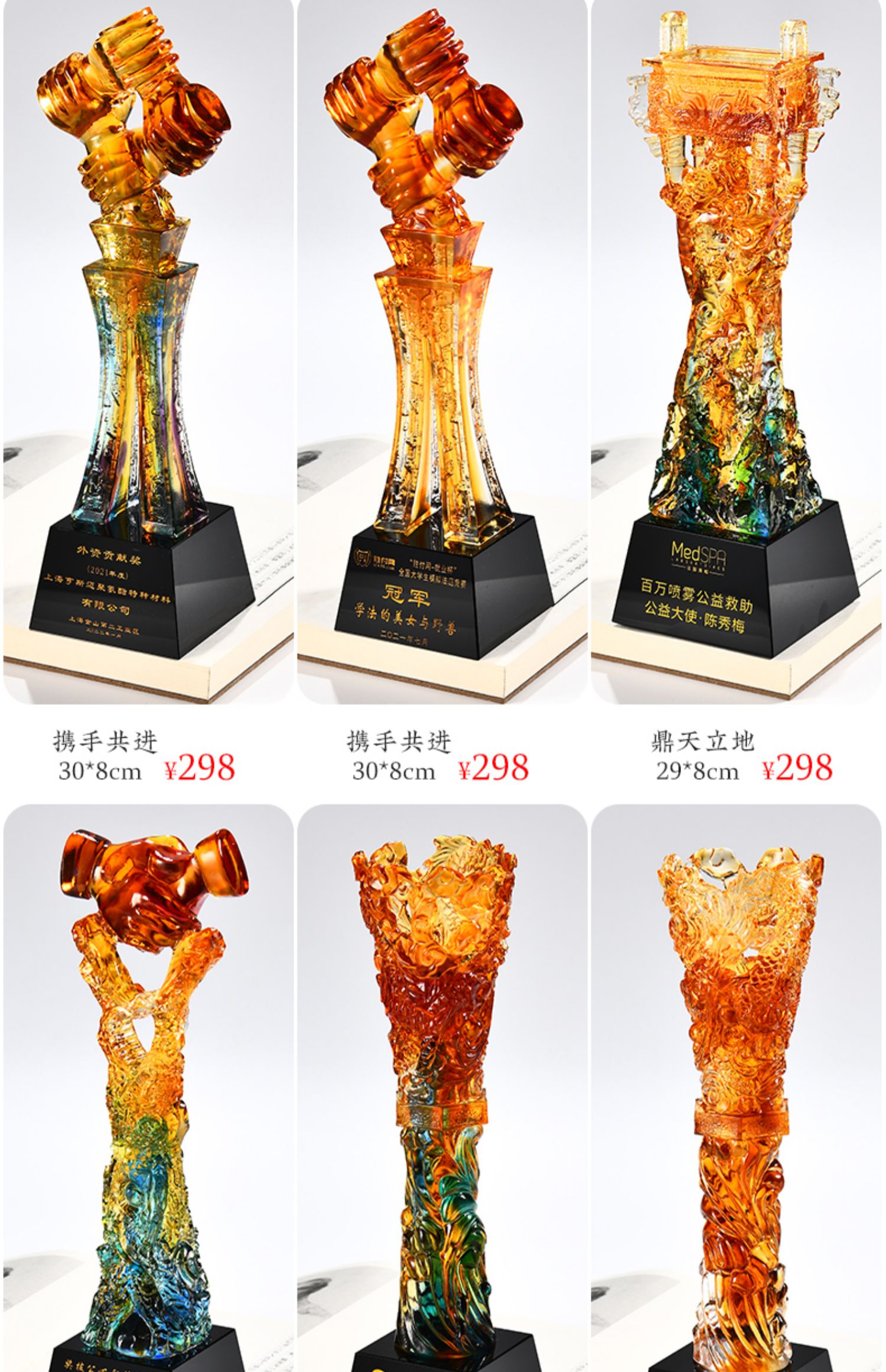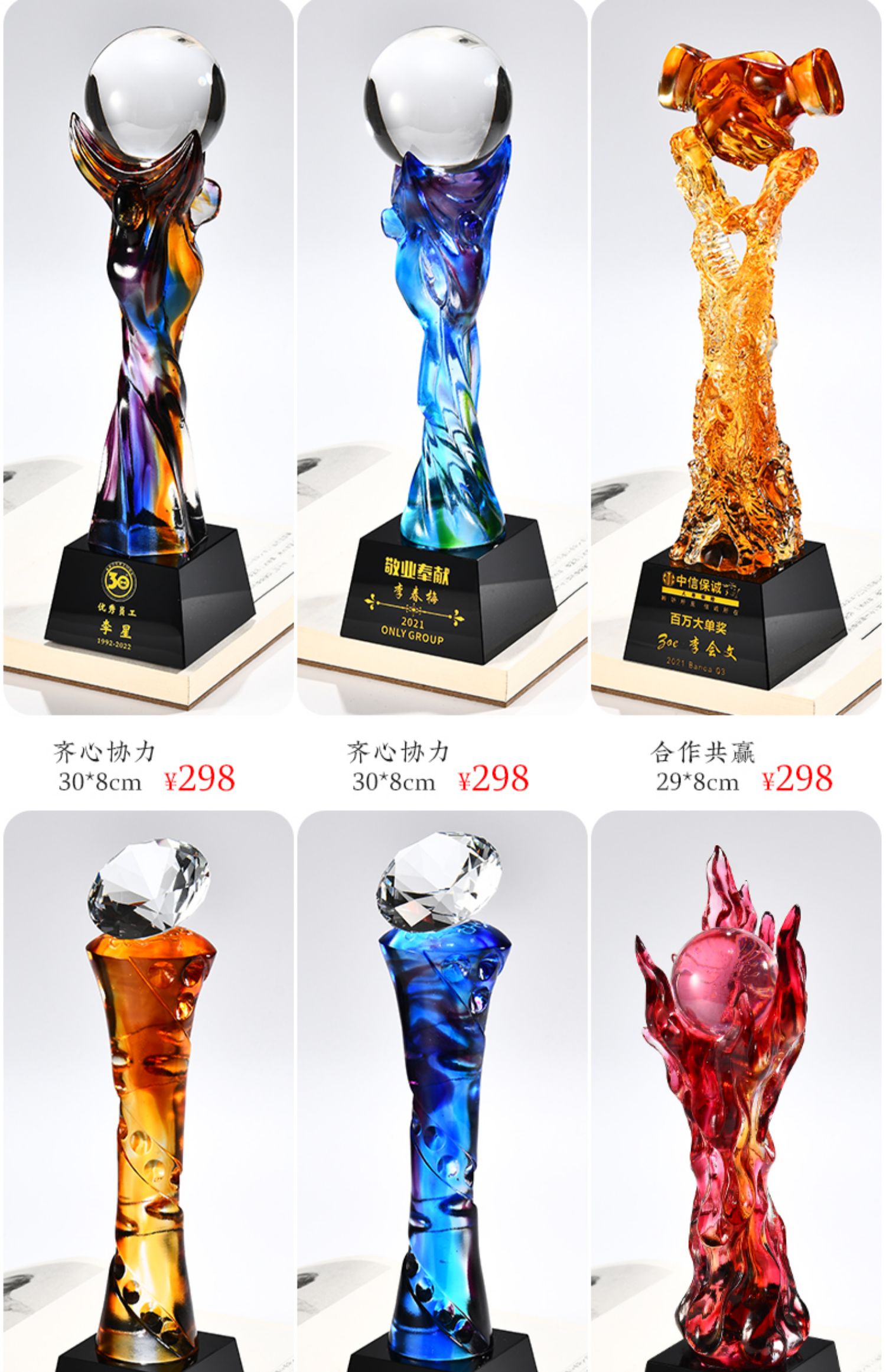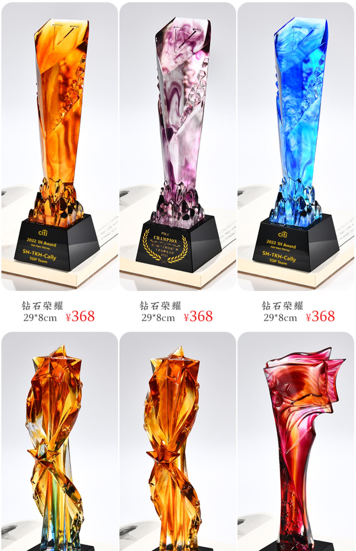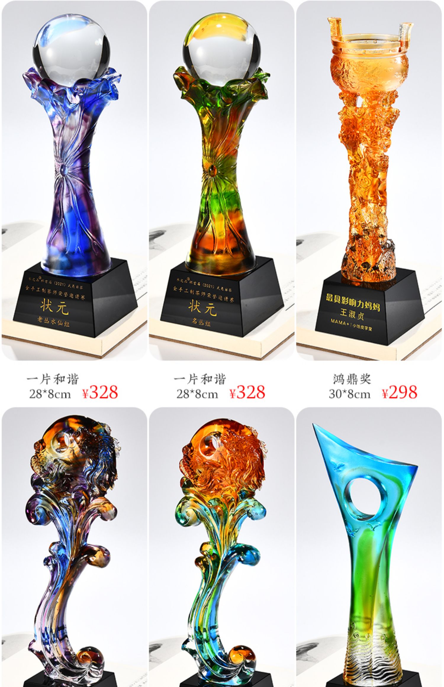 琉璃奖杯高档大气创意定制五角星优秀员工订做刻字冠军水晶牌古法琉璃