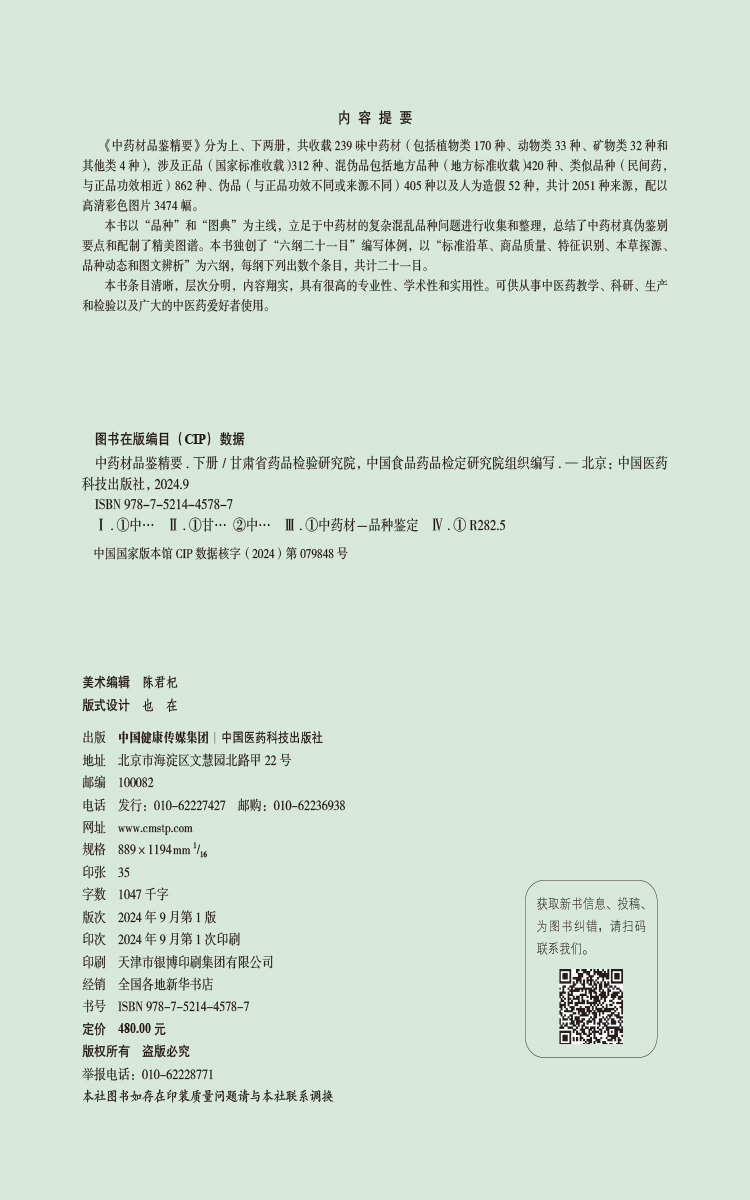 正版全新 中药材品鉴精要 下册 主编 甘肃省药品检验研究院 中国食品药品检定研究院组织编写 9787521445787中国医药科技出版社