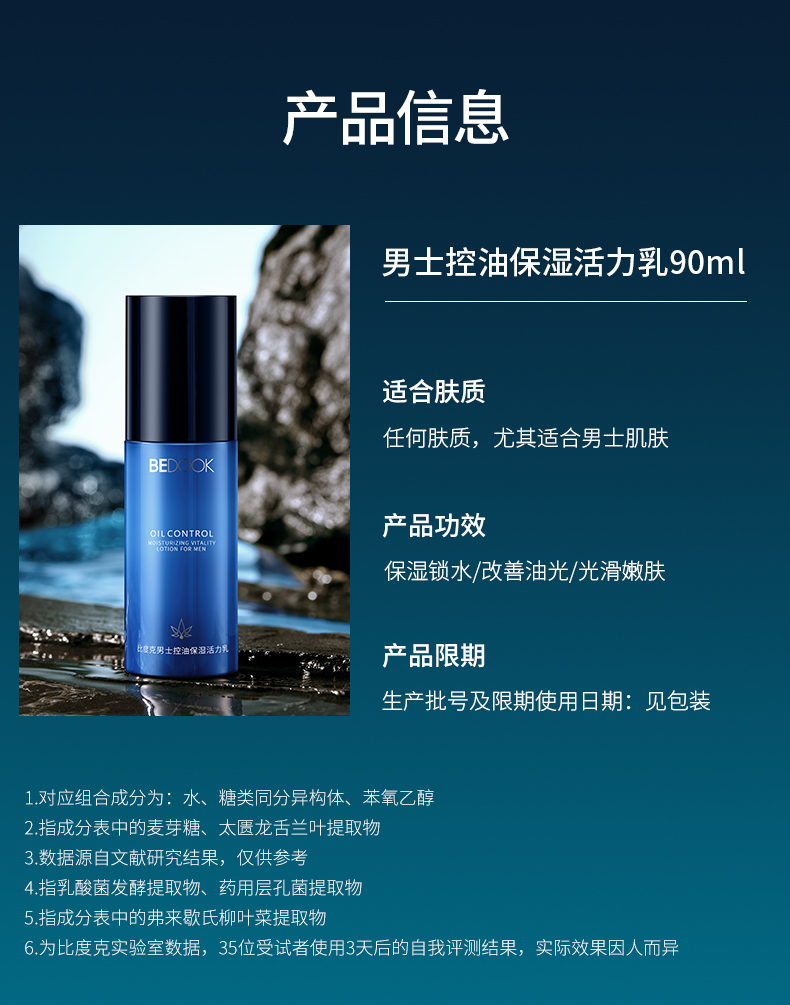 比度克男士控油保湿活力乳90ml