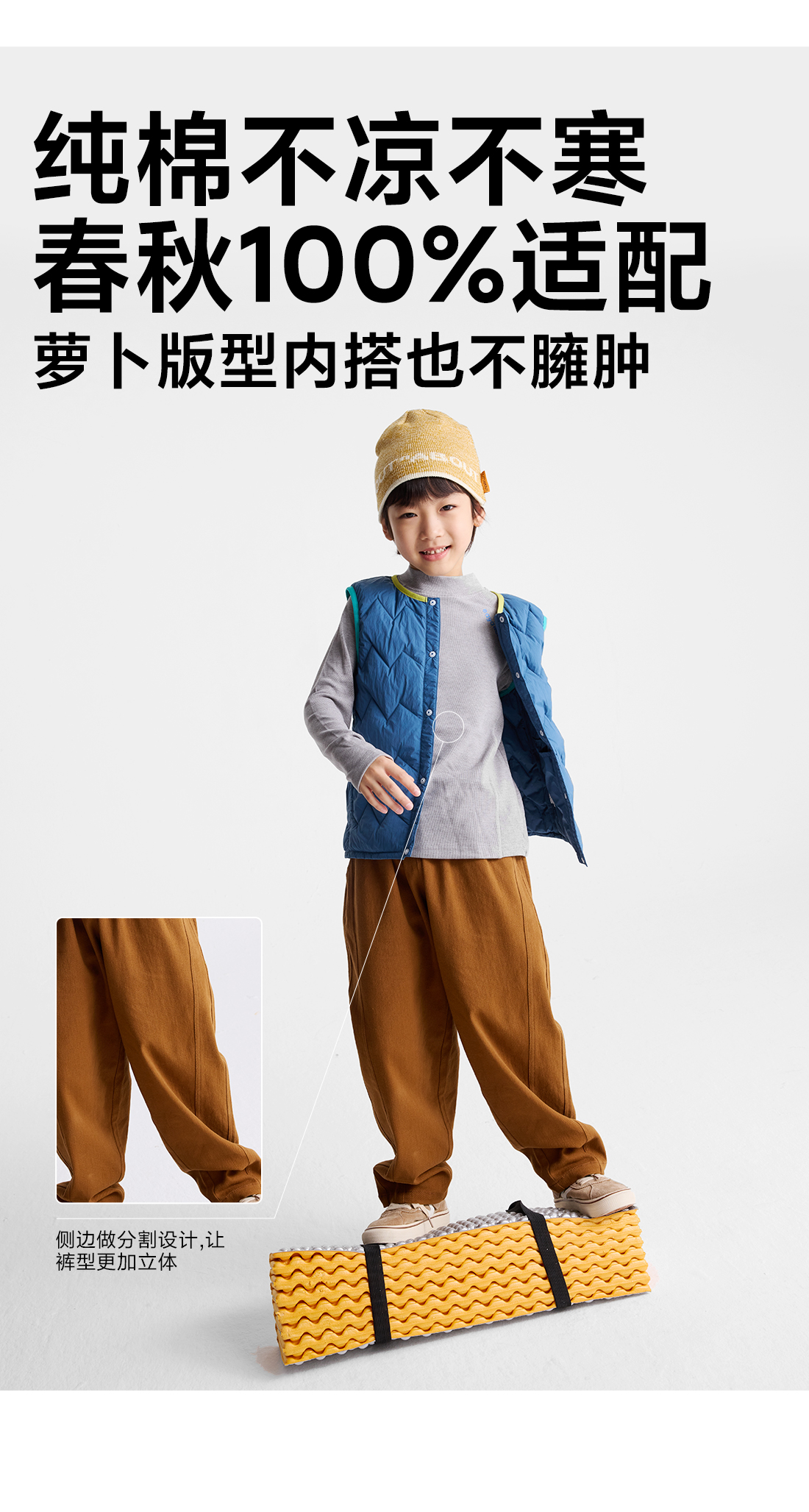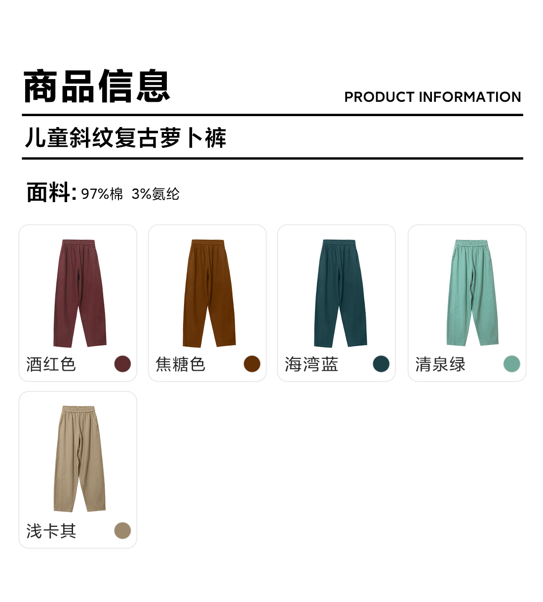 fx-咕噜日记儿童斜纹复古【磨毛】舒适温暖萝卜裤微弹耐磨PQK2526