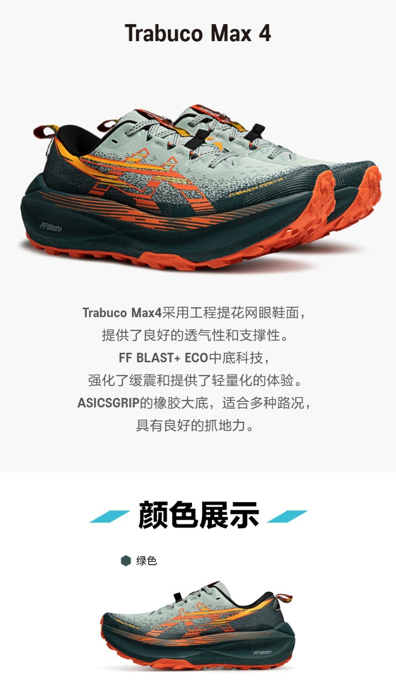 ASICS 亚瑟士 Trabuco Max 4男女款轻量缓震耐磨抓地透气运动跑步越野鞋