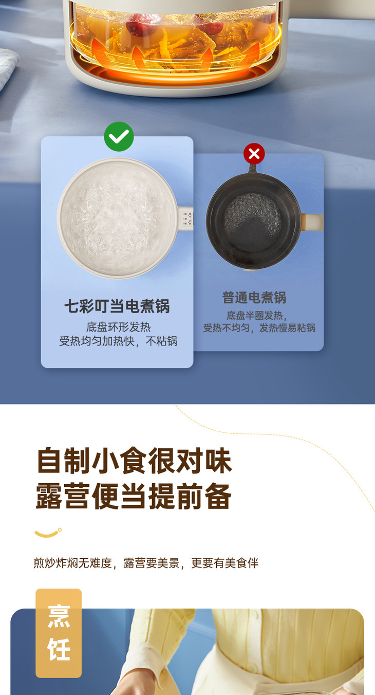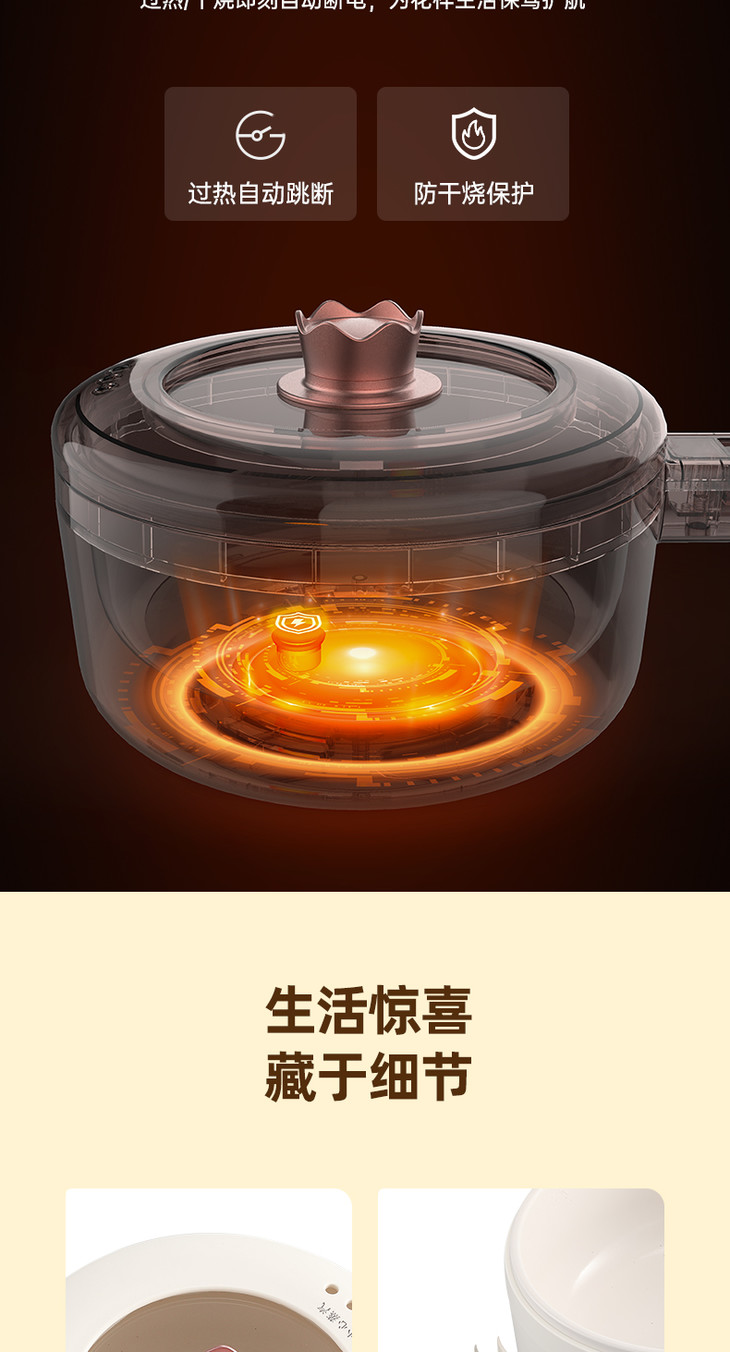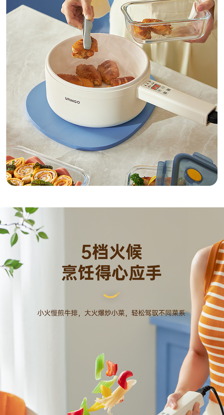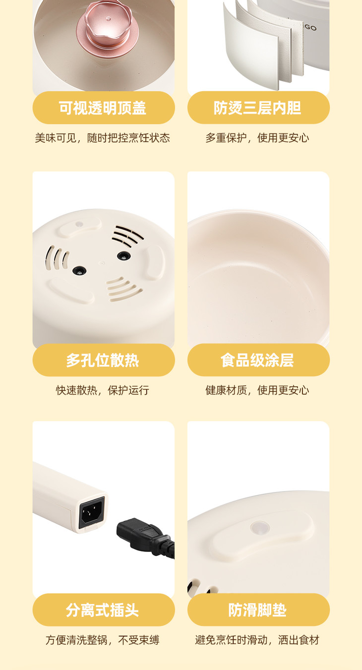 七彩叮当多功能一体长柄电煮锅(送木铲) *1.6L