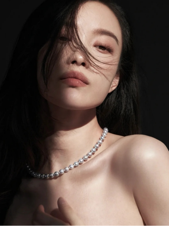 我们用的是天然贝壳珍珠,这种光感和天然珍珠的顶级澳白类似但是它又没有瑕疵,戴着光感很好。