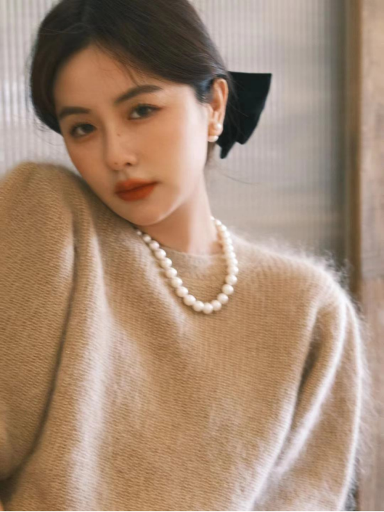 奶油白和真多麻珍珠项链都是倪妮同款,整个搭配十分吸引眼球,活脱脱一清冷美女!!