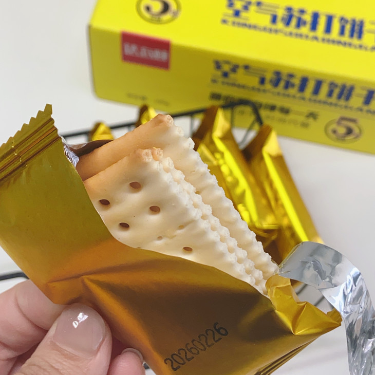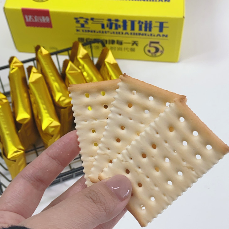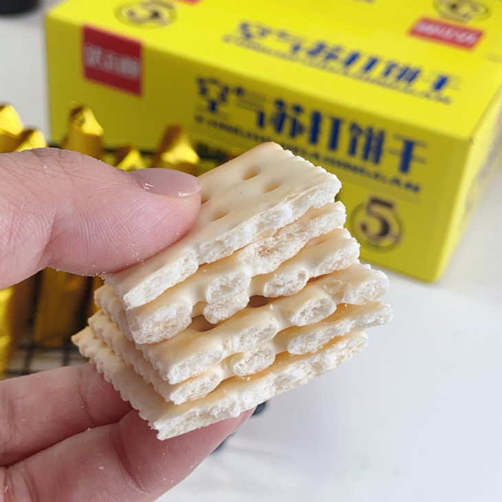空气苏打饼干则像是被施了魔法,内部充满了细密的气孔,这些气孔让饼干变得超级蓬松 ,拿在手里轻轻一捏,感觉都能捏出空气来。 这样蓬松的质地,不仅吃起来毫不费力,而且完全不会噎人,哪怕是老人和小孩也能放心享受 。