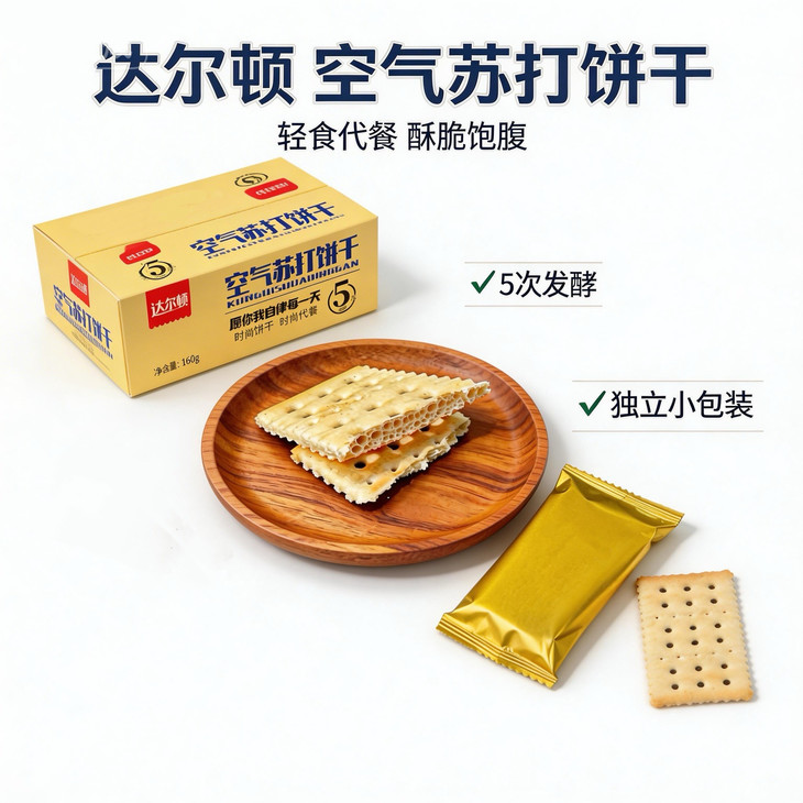 💡 健康零食天花板!全家都爱 作为资深吃货,最看重的就是配料!这款空气苏打饼干0 反式脂肪酸、0 蔗糖,配料表超干净,没有乱七八糟的添加剂。 优质小麦粉 + 天然发酵,老人、小孩、孕妈都能放心吃,再也不用纠结给家人吃什么啦~