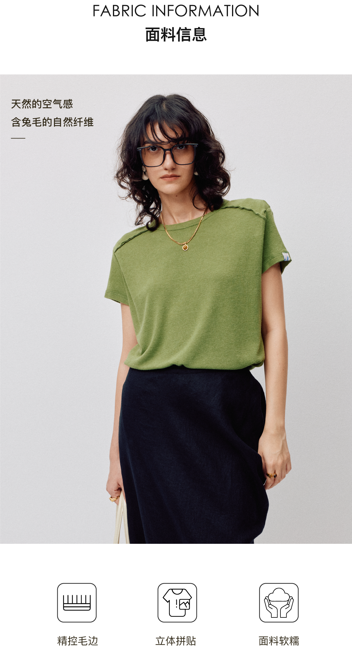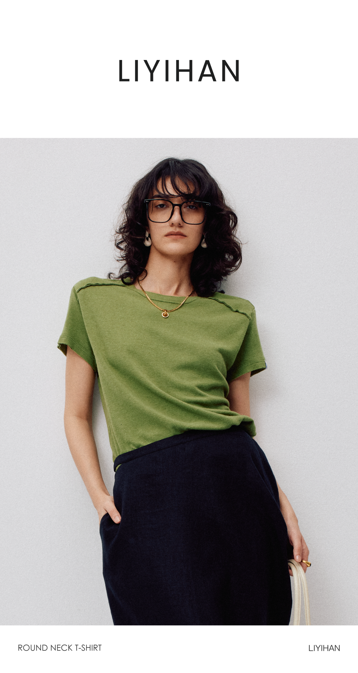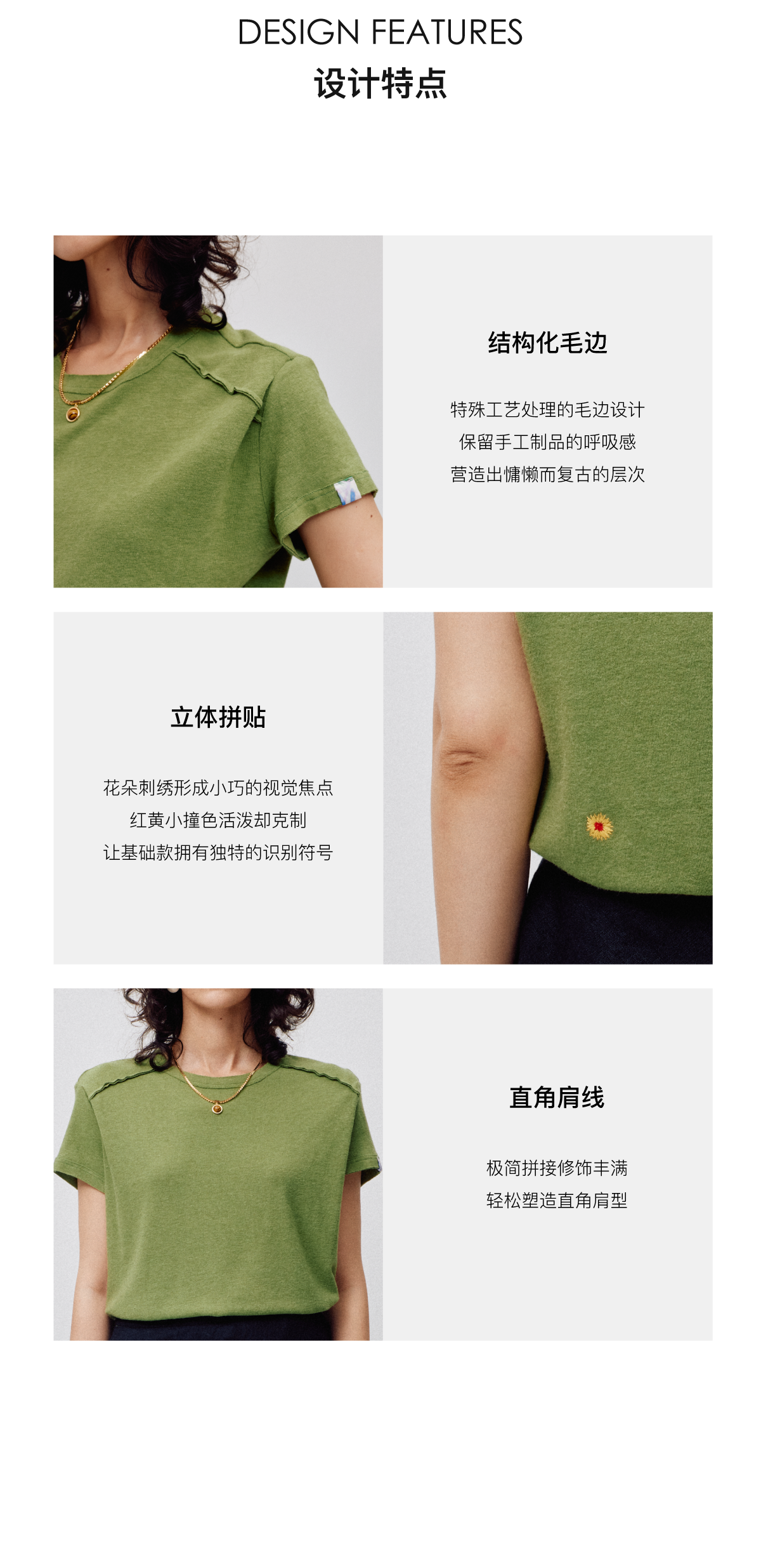 LIYIHAN2026春季新款通勤休闲刺绣T恤绿色圆领短袖小众设计感上衣