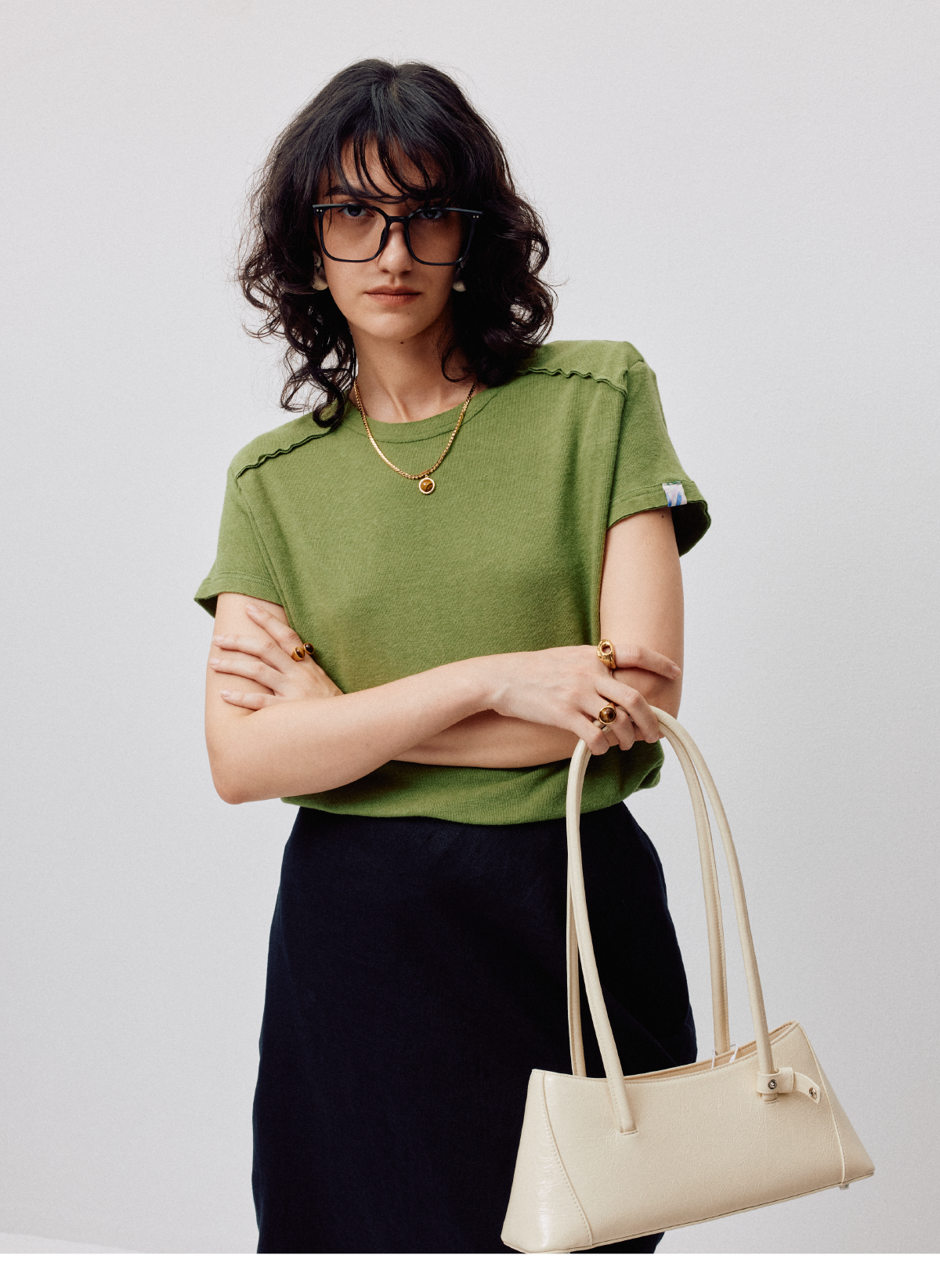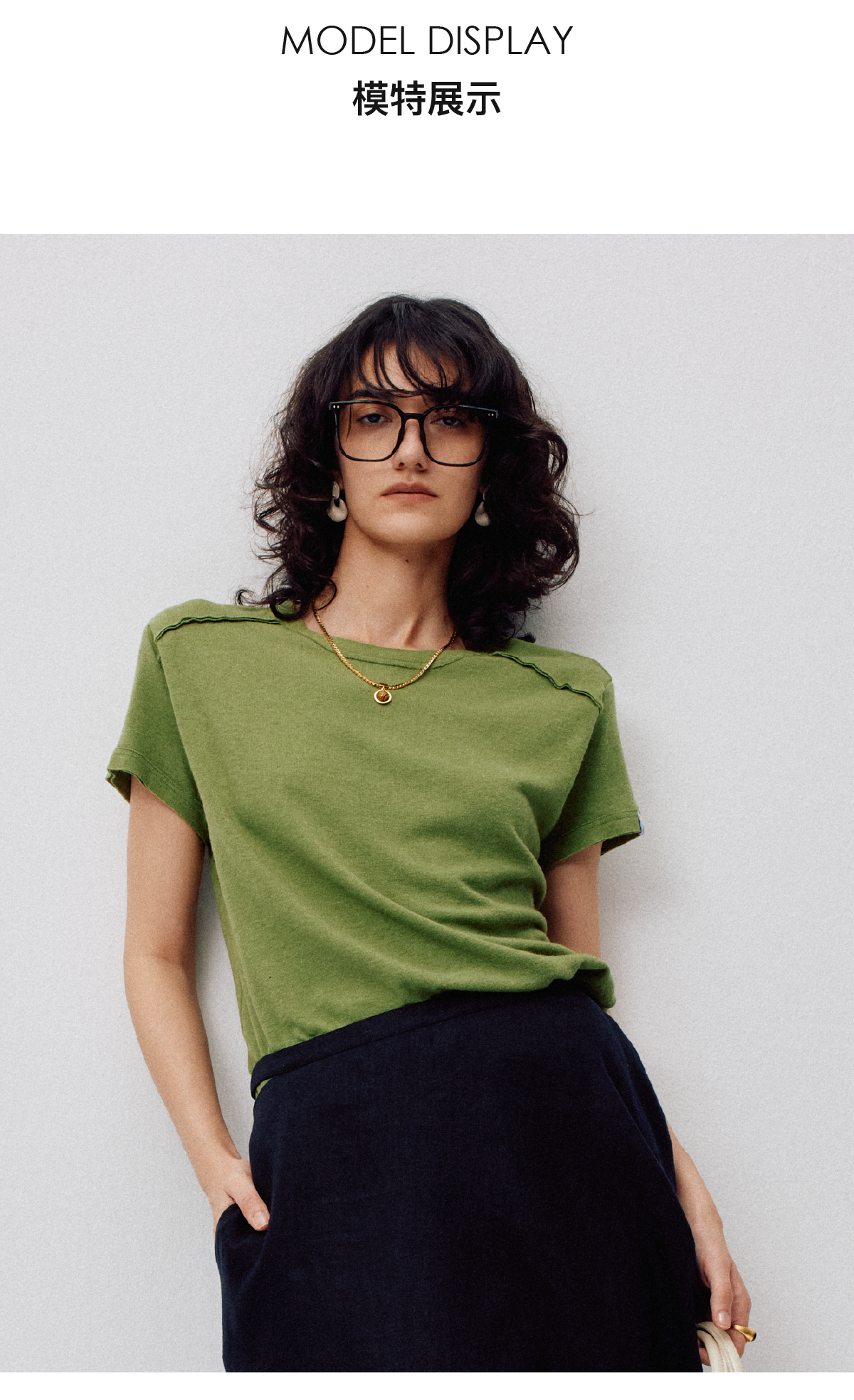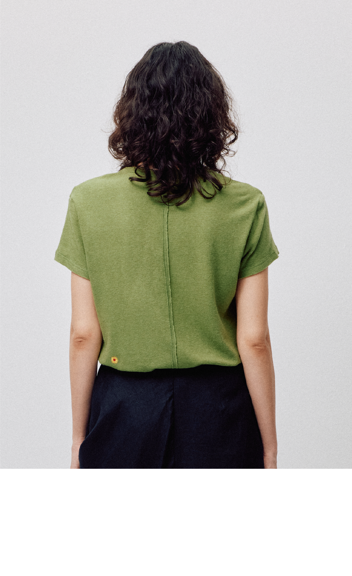 LIYIHAN2026春季新款通勤休闲刺绣T恤绿色圆领短袖小众设计感上衣