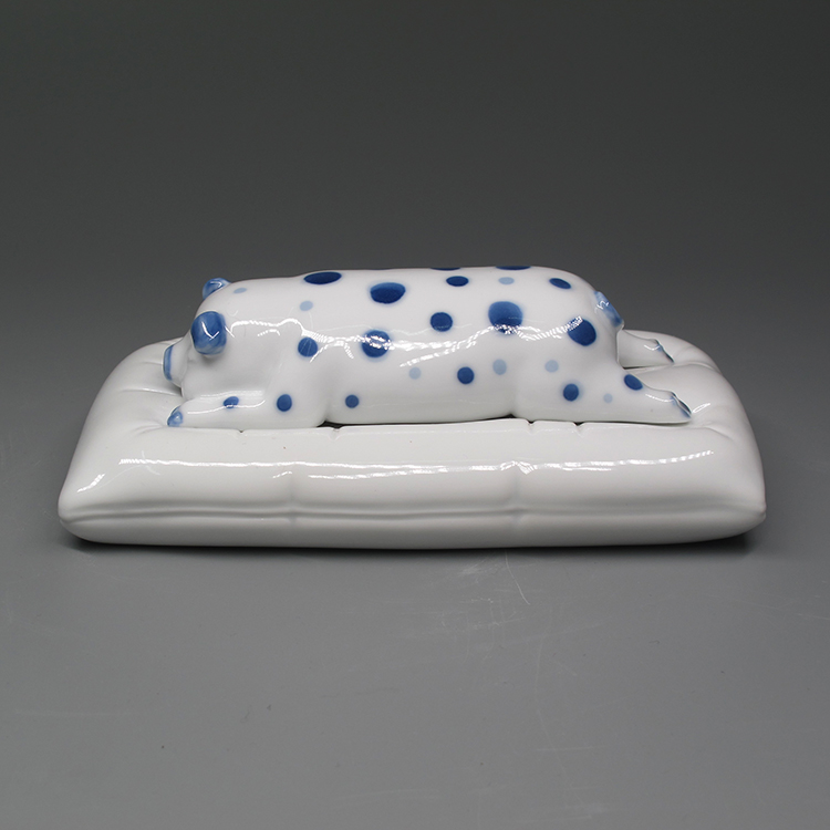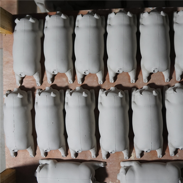 1、陶瓷猪增强人际关系 猪的个性不争不抢,非常好相处,所以如果把猪的风水摆件摆放在家中或者办公室中合理的位置,潜移默化间,对于主人的人际关系改善也很有帮助。 但是在摆放的时候需要注意,记得摆放在吉位上,这样功效才能发挥到化。 改善主人急躁的脾气 猪的形象不但是圆滚滚,福气的象征,而且也是忠厚老实的象征。所以如果家中有人脾气比较急躁,遇到事情容易冲动,建议在家中合适位置摆放猪的风水摆件。 2、陶瓷猪求财 一般的祭拜中都有猪的出现,就是取其增进财源的意思,我们可以选择家中或工作场所放置风水猪来旺动财源摆设位置相当重要,基本上除了厕所浴室的位置不宜外,其他皆可,不过还是摆设在财位上。如果为了求财,风水猪的制材以黄金,这样才能完全发挥旺财旺动的能力,假如用陶瓷猪的存钱罐,日日投零钱,如此也能让灵动能力更加旺动,不过切忌不可移动。 3、陶瓷猪转运 陶瓷猪摆件除了吸纳财富这一个本领之外,还能够镇守家宅,催旺福气,保佑家人安康,这是因为猪的体质强,通常少生病,故而被成为安康之兽。镇守家宅是因为猪体积大、属重量级,有镇宅辟邪的功效。催旺福气则是因为猪能吃能睡,心宽体胖。陶瓷猪的寓意: 1、陶瓷猪的寓意 猪,在中国传统文化历史上势财富、吉祥的象征。“家”字的宝盖象征房屋,下部”“亥”就是猪。房屋加上“亥”字(财富)等于家。所以有家的地方就应该有庇佑猪。猪的外表胖胖圆圆的,是传统所认为的财富、福气的象征,所以人们在打造风水,选用助运饰品的时候就对陶瓷猪特别的青睐。 2、小孩挑食用陶瓷猪 如果家里小孩有挑食的习惯,或者甚至还有营养不良的,这个问题着实让大人感到头痛。不妨试试可以在餐厅里对着小孩的地方摆放风水猪摆件,因为我们都知道,猪的食欲是非常好的,对于食物也从不挑剔,有什么吃什么,如果这样摆放的话,小孩挑食不长个的情况也能得到缓解。一只瓷猪的诞生要经过十几个工序,首先制作陶泥雕塑,再用硅胶模翻制成树脂模型,经过打磨修整再次翻制成模种,整个制作打磨都由薛继业老师亲手完成,陶瓷雕塑的翻制必须使用石膏活模,一只小猪要切割成五个部分才能完整的把所有细节翻制出来,再把五个部分用泥浆衔接起来,一套模具在正常天气仅仅能做五只,冬天只能三只,成型的小猪泥坯要经过一周的阴干,入窑素烧500后喷上影青釉高白釉再次入窑烧制八小时,温度达到1310,出窑冷却后再用砂轮修整底面,贴上底款贴花,再次入窑烧至800终完成,只有景德镇特有的优质瓷泥和釉料,才能烧制出如此玲珑剔透、温润洁白的财库猪。财库猪和财库枕可以自行搭配 猪加枕头 长:18cm 宽:10cm 高:5.5cm青花斑点猪:青花香猪:高白釉: ·影青釉:祥云底座:金底座:凡购买一个招财猪,随机送杯垫一套(8个,选的话请私信客服,也可以备注。)快递:默认德邦快递,节假日发顺丰,如果您需更换快递,请联系我们在线客服即可。发货:由于店铺里易碎品居多,需要严谨的包装,所以您拍下付款后48小时内发货,敬请谅解。运费:运费均按实际重量收取,拍下产品后可以联系在线客服进行确认, 也可以拍下后直接付款,我们确认准确邮费后会及时主动给您退还多余的邮费,所以请放心购买。破损:发出的包裹请放心签收,如果遇到破损问题,签收后48小时以内联系在线客服, 并提供破损产品的照片即可,我们将尽快给您处理。售后:店铺为收货24小时退货,7天无理由换货,但是退换的邮费需要买家承担哈, 店铺不属于大店铺,纯属慢慢累积的信用,打包工序繁琐,需要很多时间和劳力, 所以希望您能理性购物,避免造成您的损失。另外如果收到宝贝后有任何疑问或者不满意, 也请您及时联系在线客服,我们会尽力给您提供售后服务。时间:周一~周六:9:30-22:00,(有问题不用着急,只需给旺旺留言, 我们看到后会时间给您解决。)
