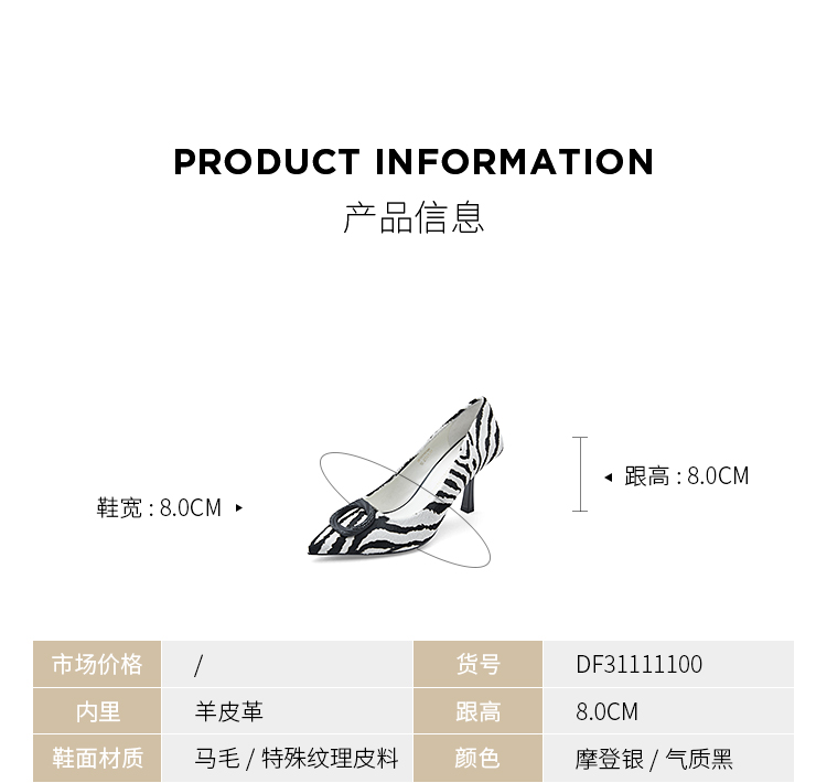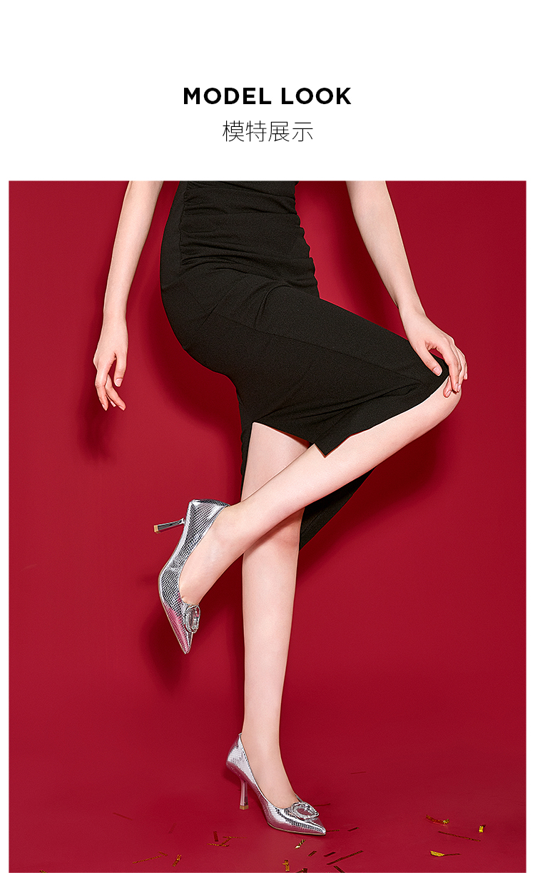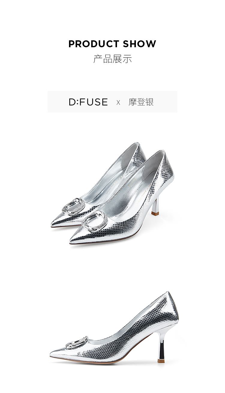 D:FUSE/迪芙斯尖头闪面高跟尖头高跟鞋DF31111100