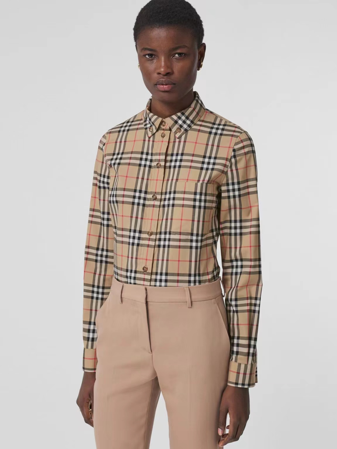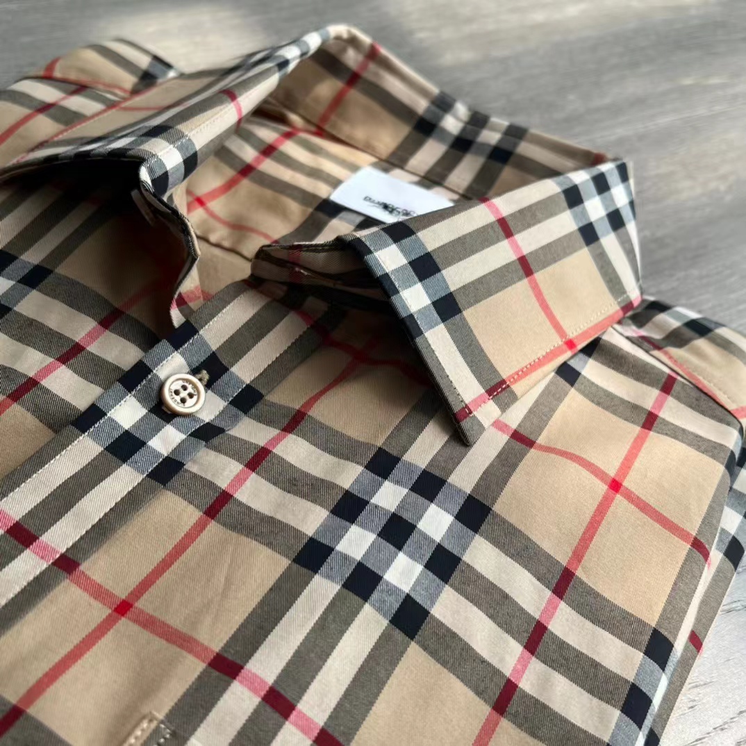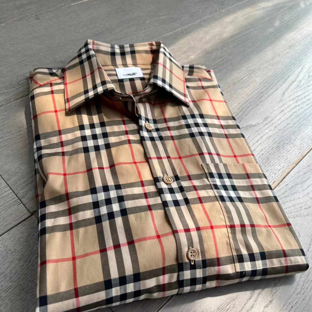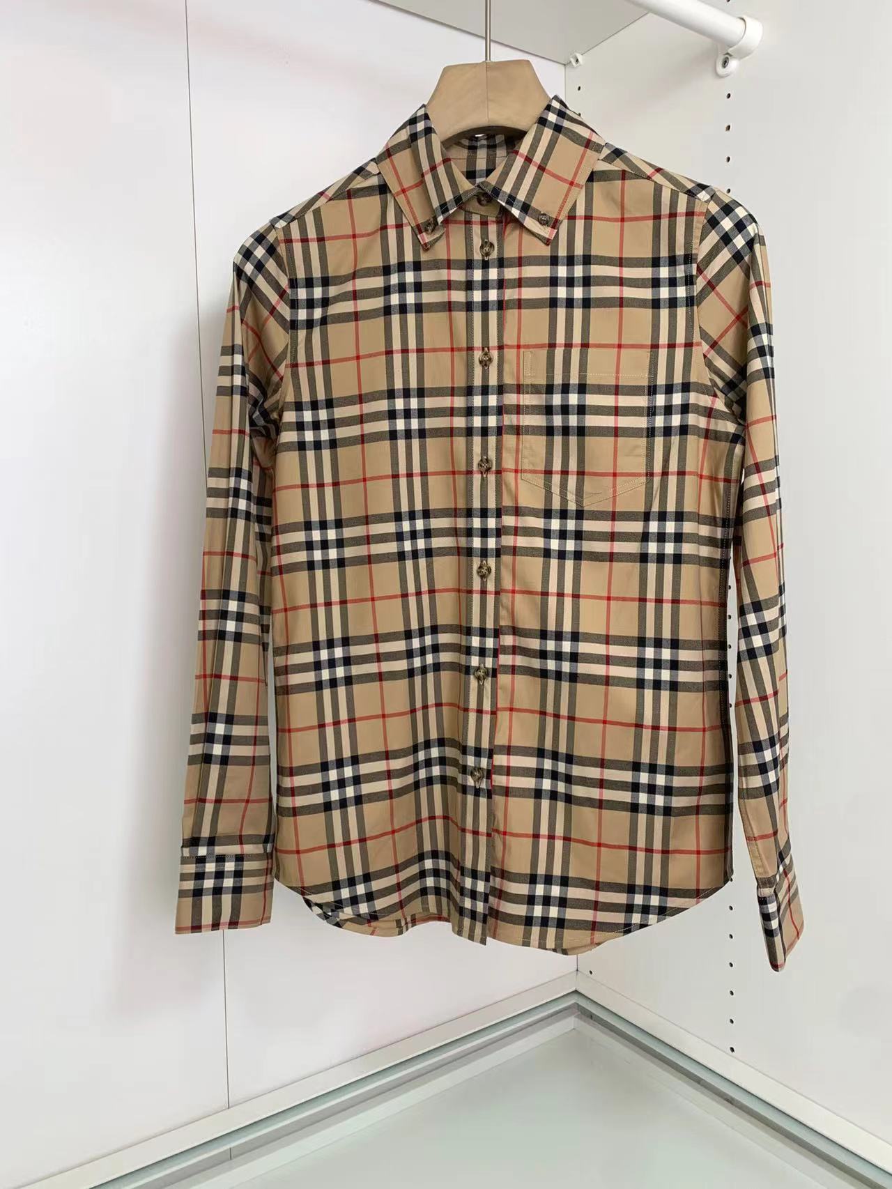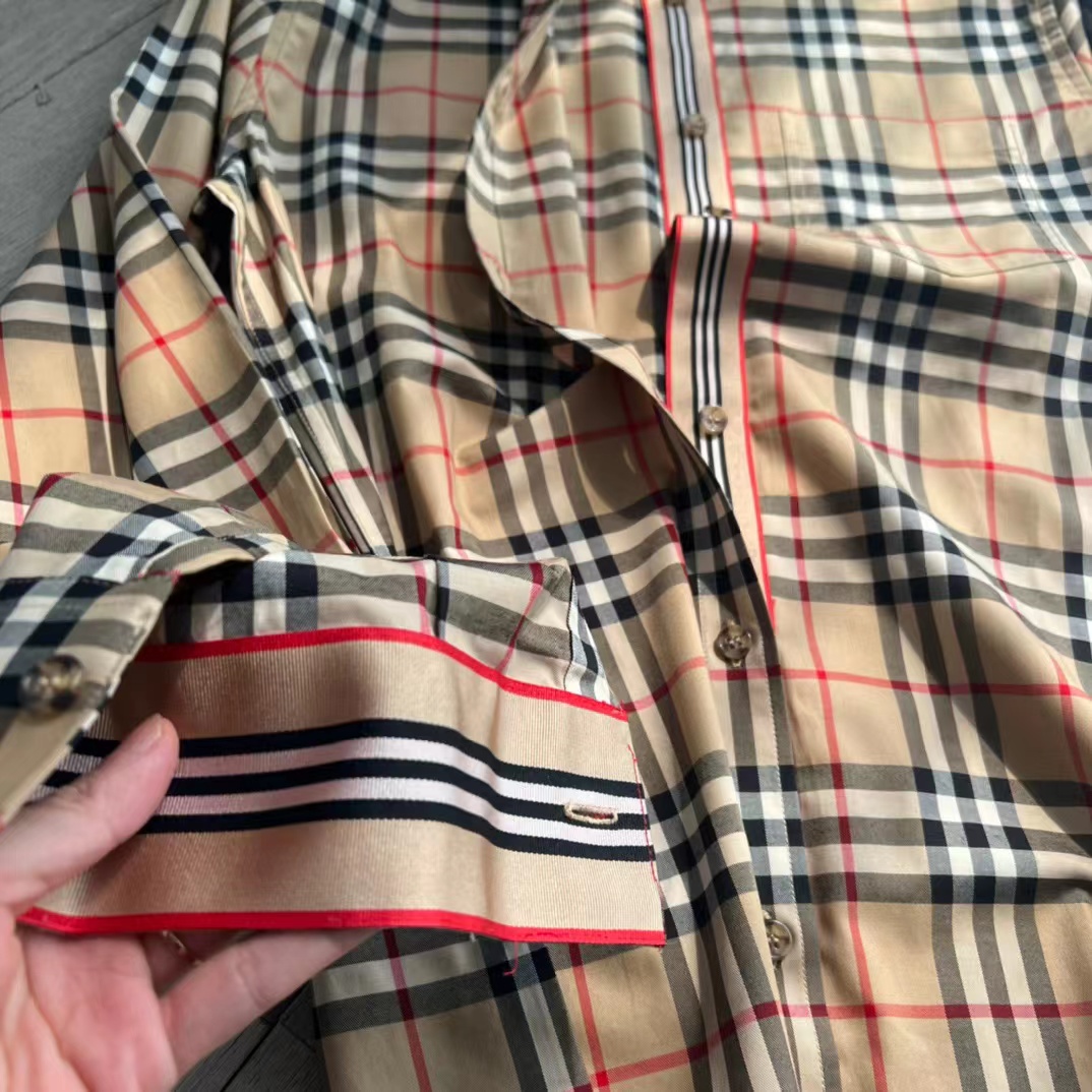 Bur***ry巴*莉 柜在售!2022早秋经典Vintage 格纹女士休闲衬衫,贸易单,品质控推荐!! Vintage 复古格纹设计.袖口门襟处饰有品牌标志性条纹时尚潮流,穿着舒适度无可比拟透气性极好 面料十分柔软有韧性 色泽柔和 上身挺括有型,内搭外穿都很腔调的一款。
