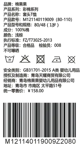 棉果果春秋款新疆彩棉男童女童 套头T恤M121140119009