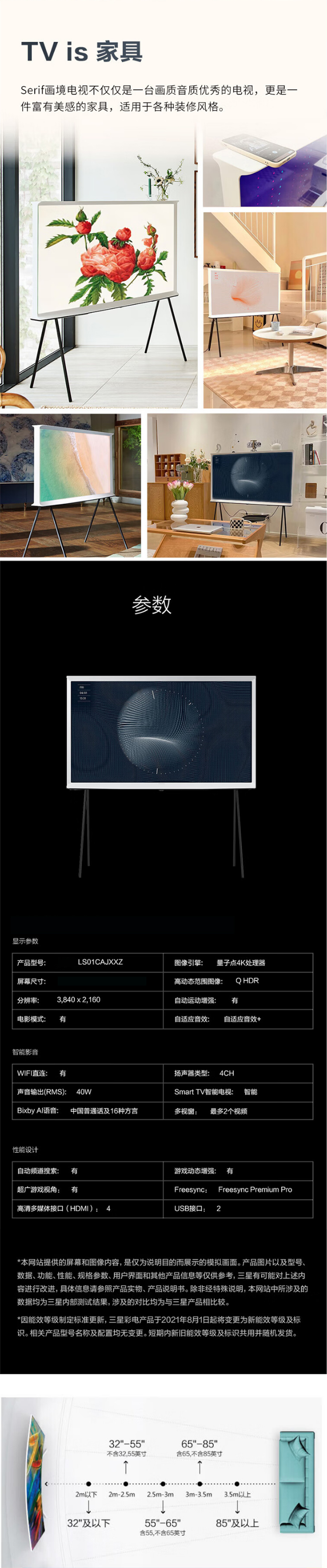 【已开价】三星(SAMSUNG) Serif画境艺术电视 超薄4K哑光屏显120Hz QLED量子点 HDMI2.1 55英寸/65英寸