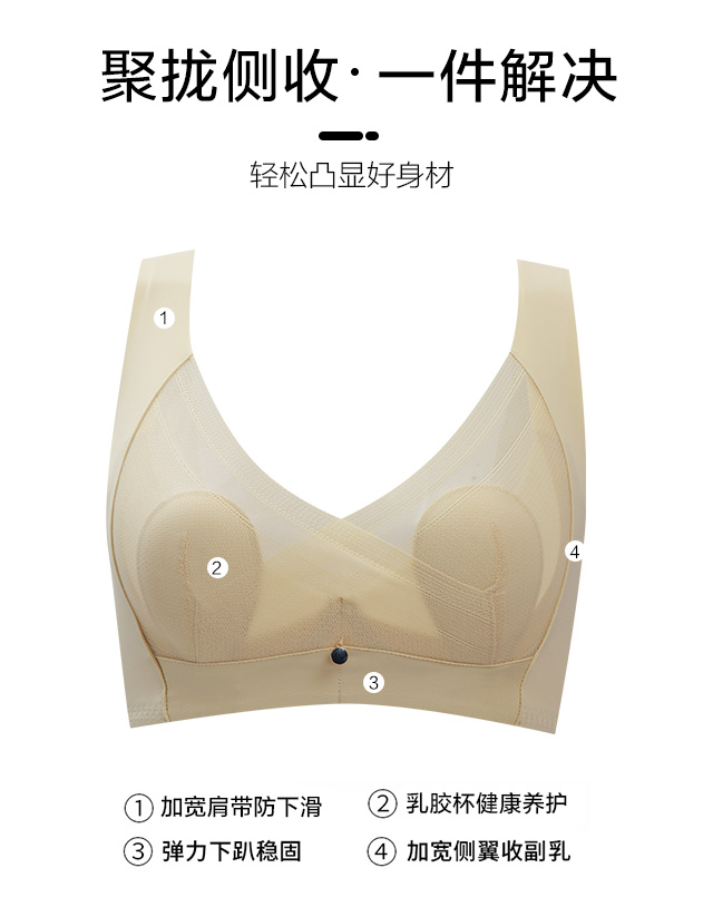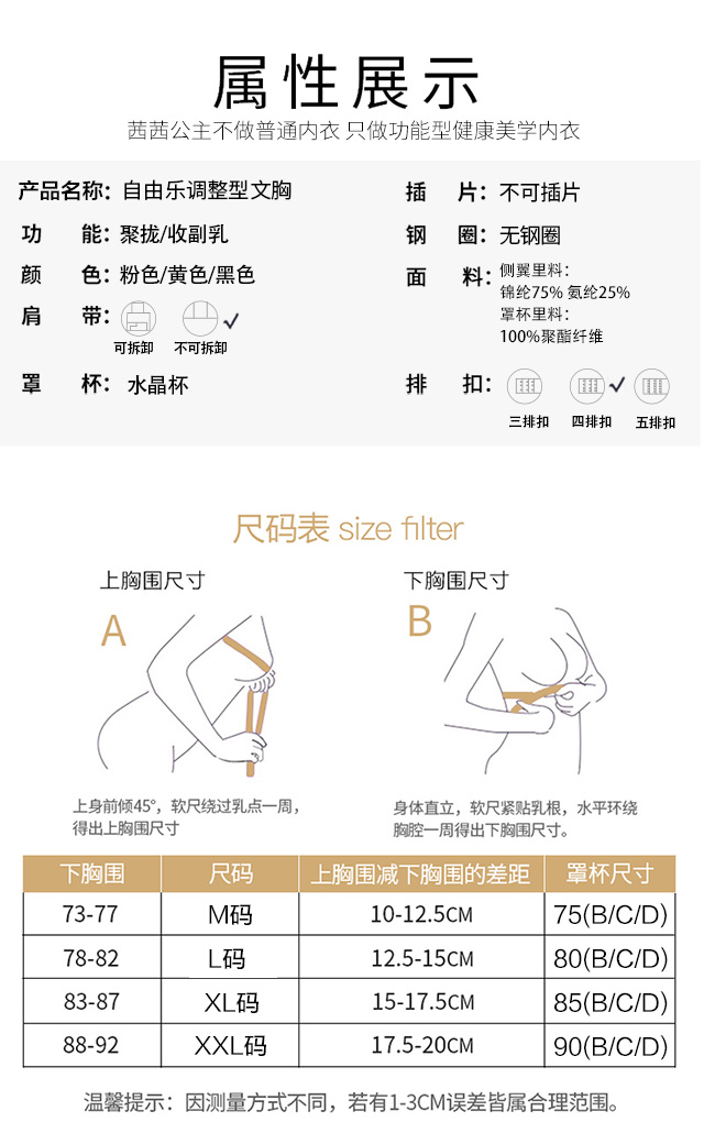 深V无钢圈乳胶杯,兔耳设计轻薄柔情,通码75BCD到90BCD通穿,自由乐调整型文胸,