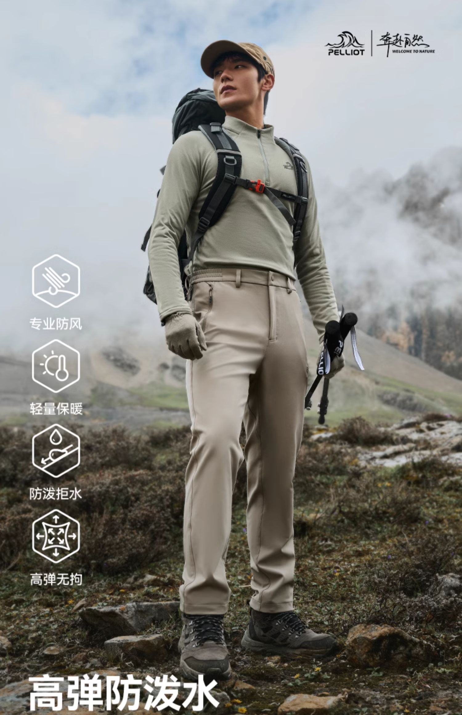 伯希和户外软壳裤男25新款防风徒步登山运动长裤弹力百搭休闲裤女
