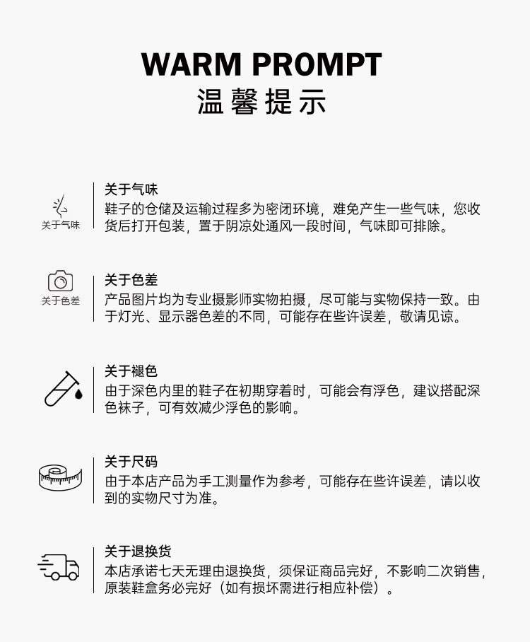 4 为了给您顺利退款,请寄出前确认:1,商品无穿着痕迹,包装赠品等完整,不影响二次销售。2,请用原快递纸箱寄回,拒收到付件,非常感谢!