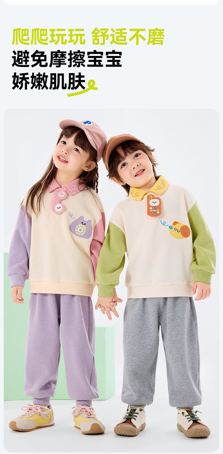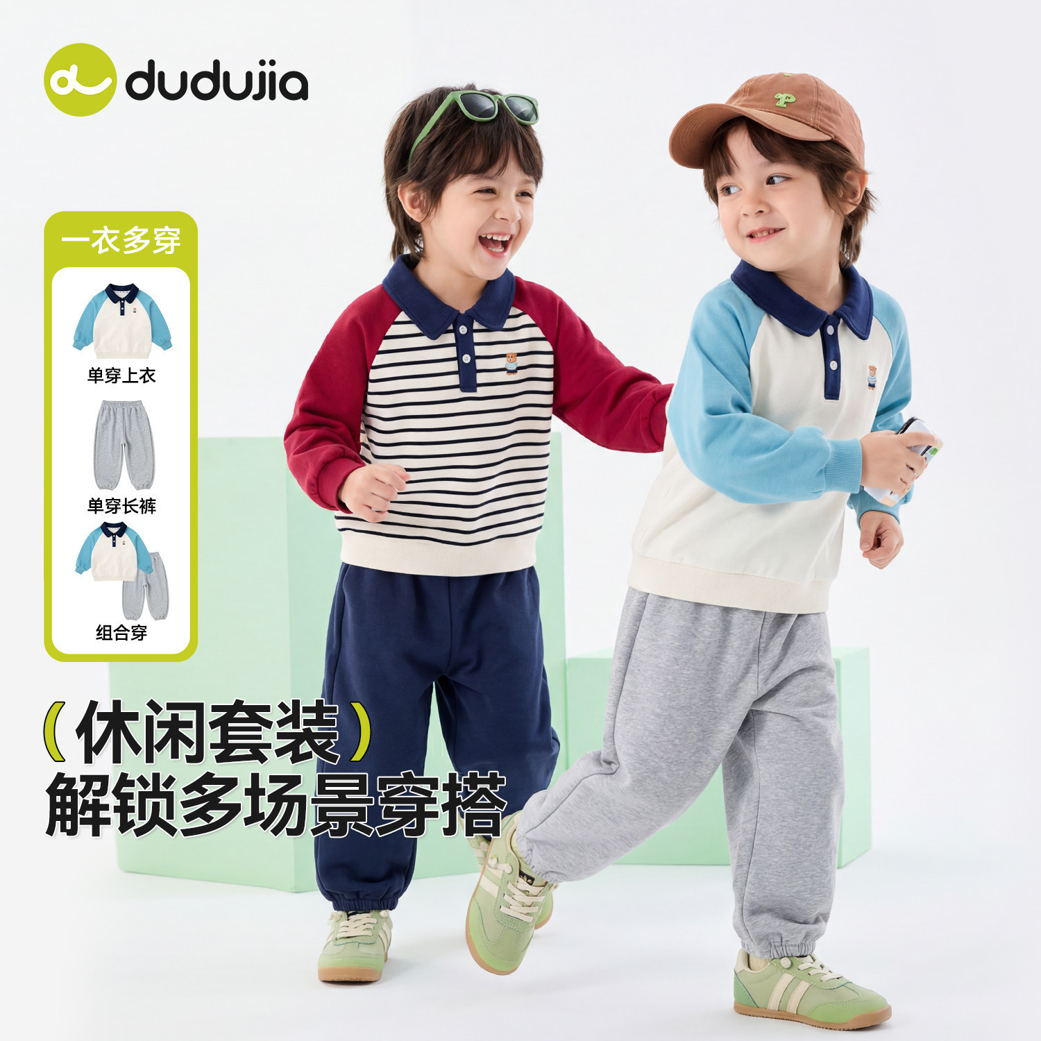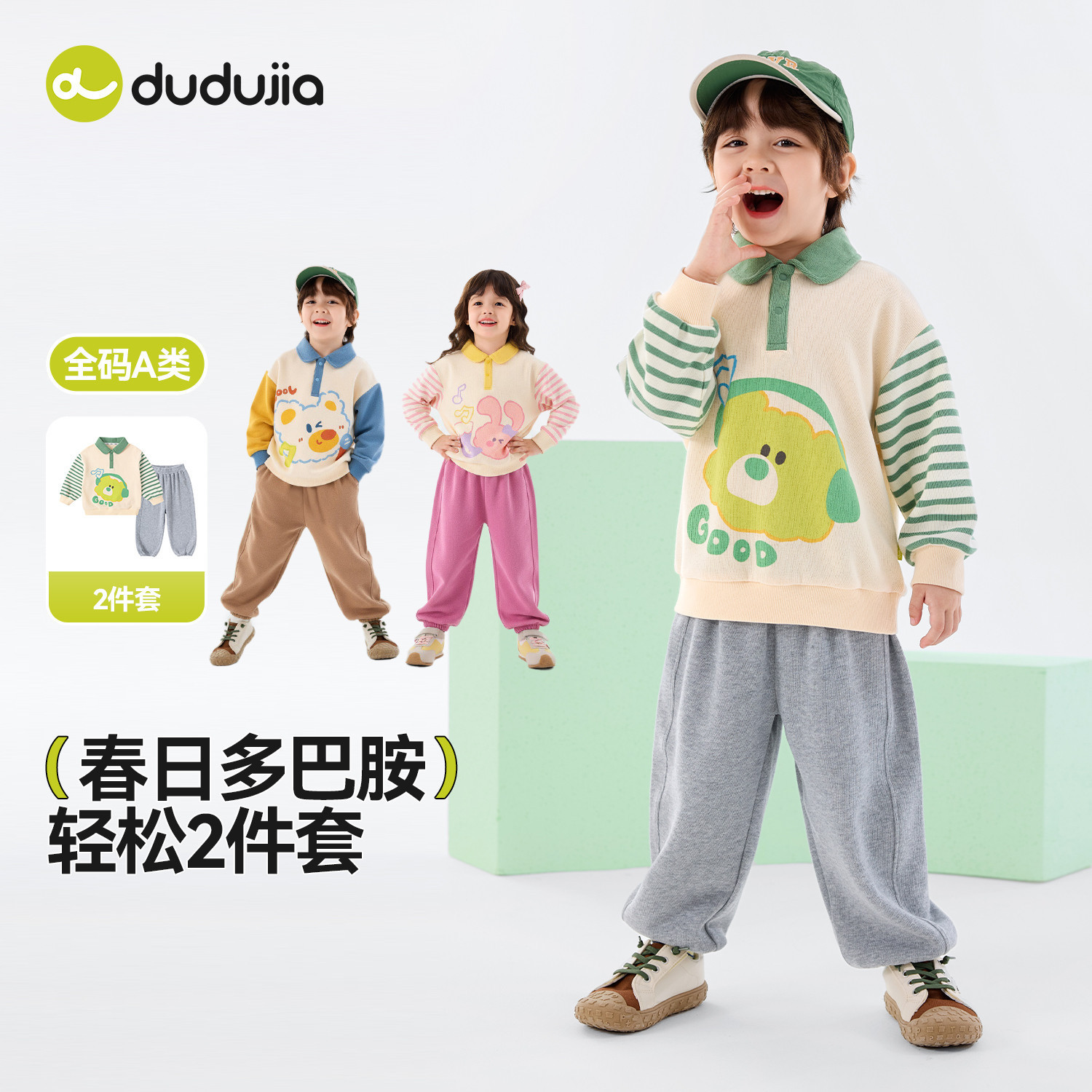 【26多巴胺套装合集】嘟嘟家儿童polo套装春季新款宝宝卫衣裤子两件套春装男童衣服童装D6ATZ175