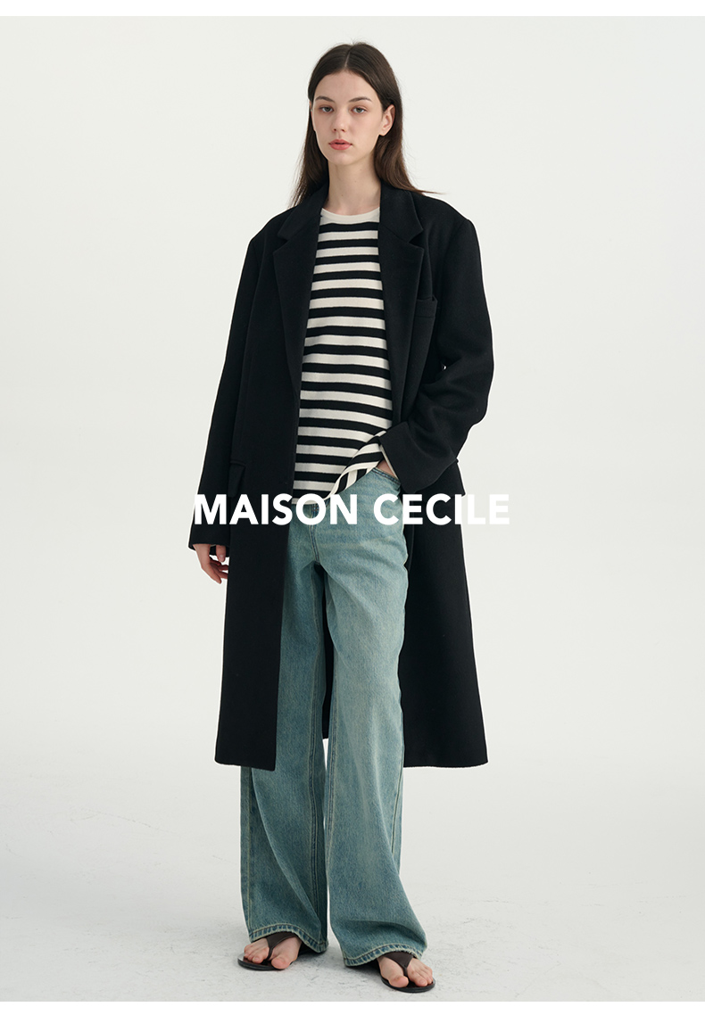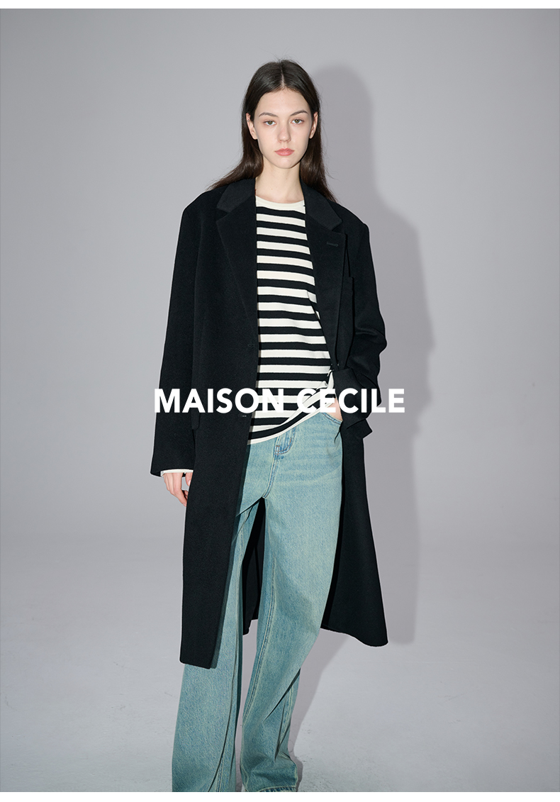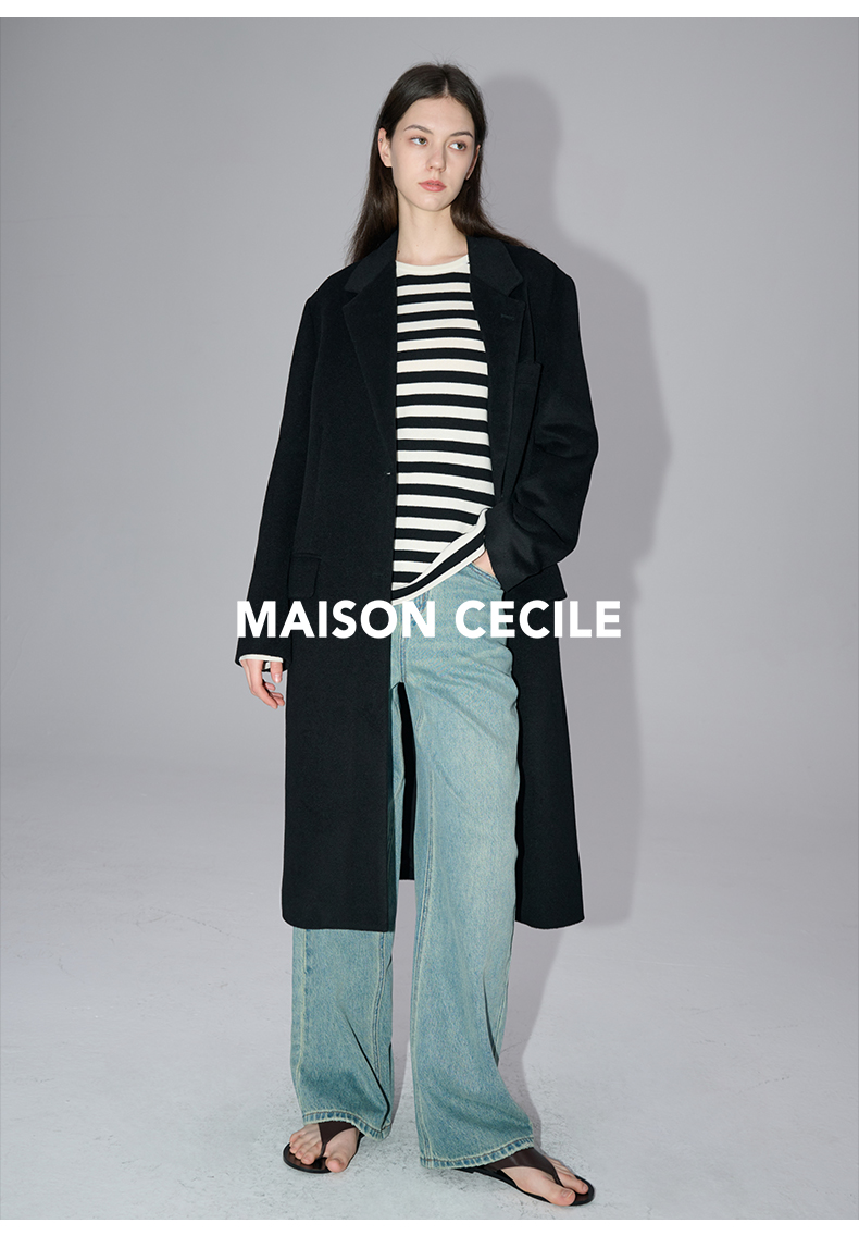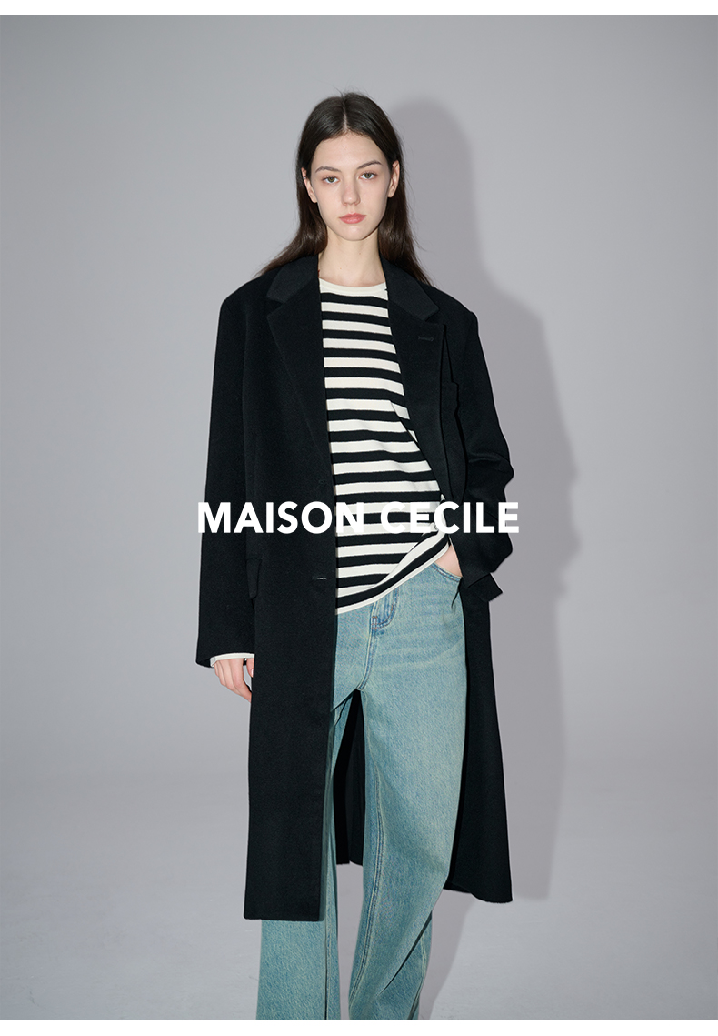MAISON CECILE 秋冬温暖包裹感廓形百搭可立领长款纽扣棉服