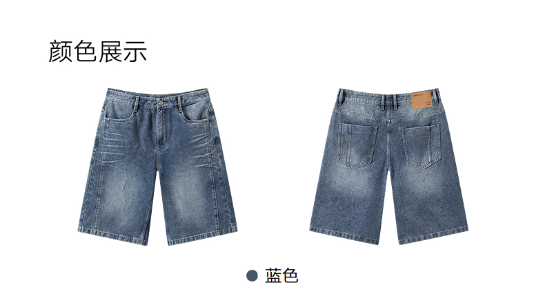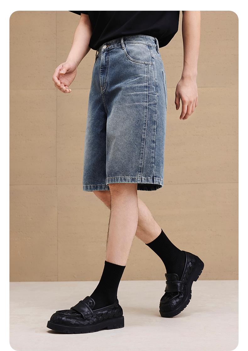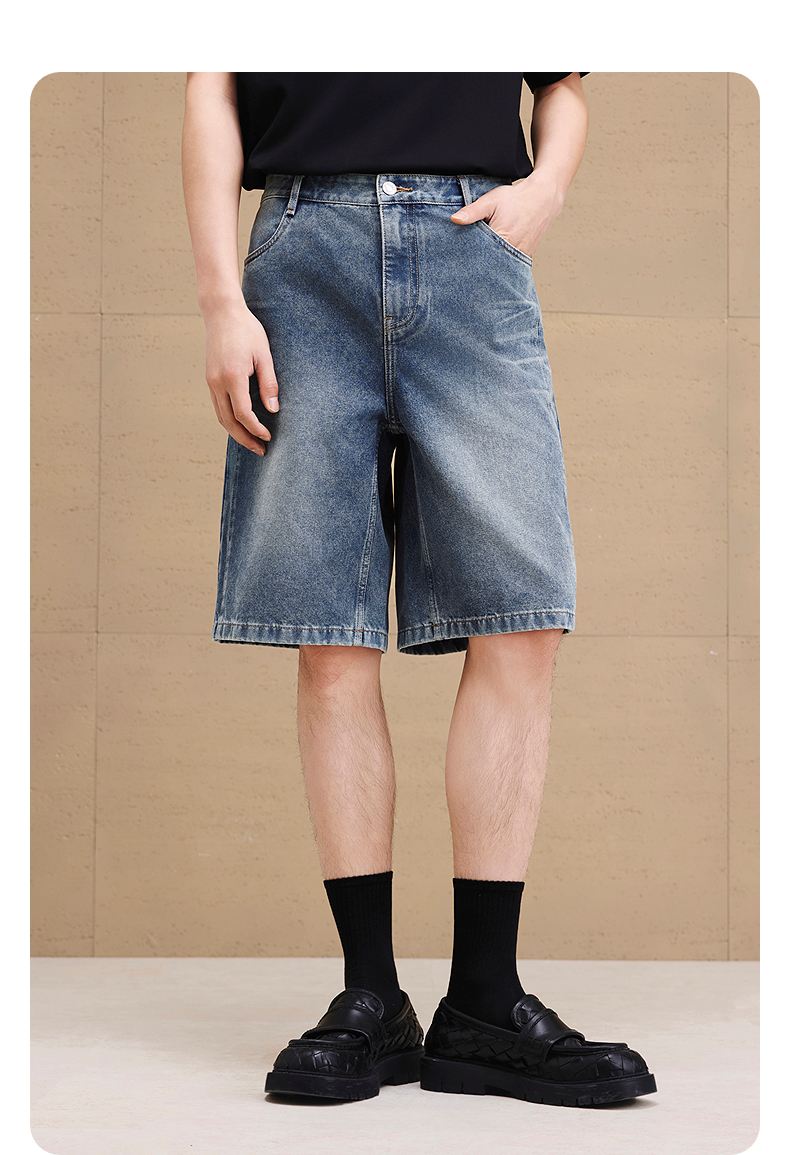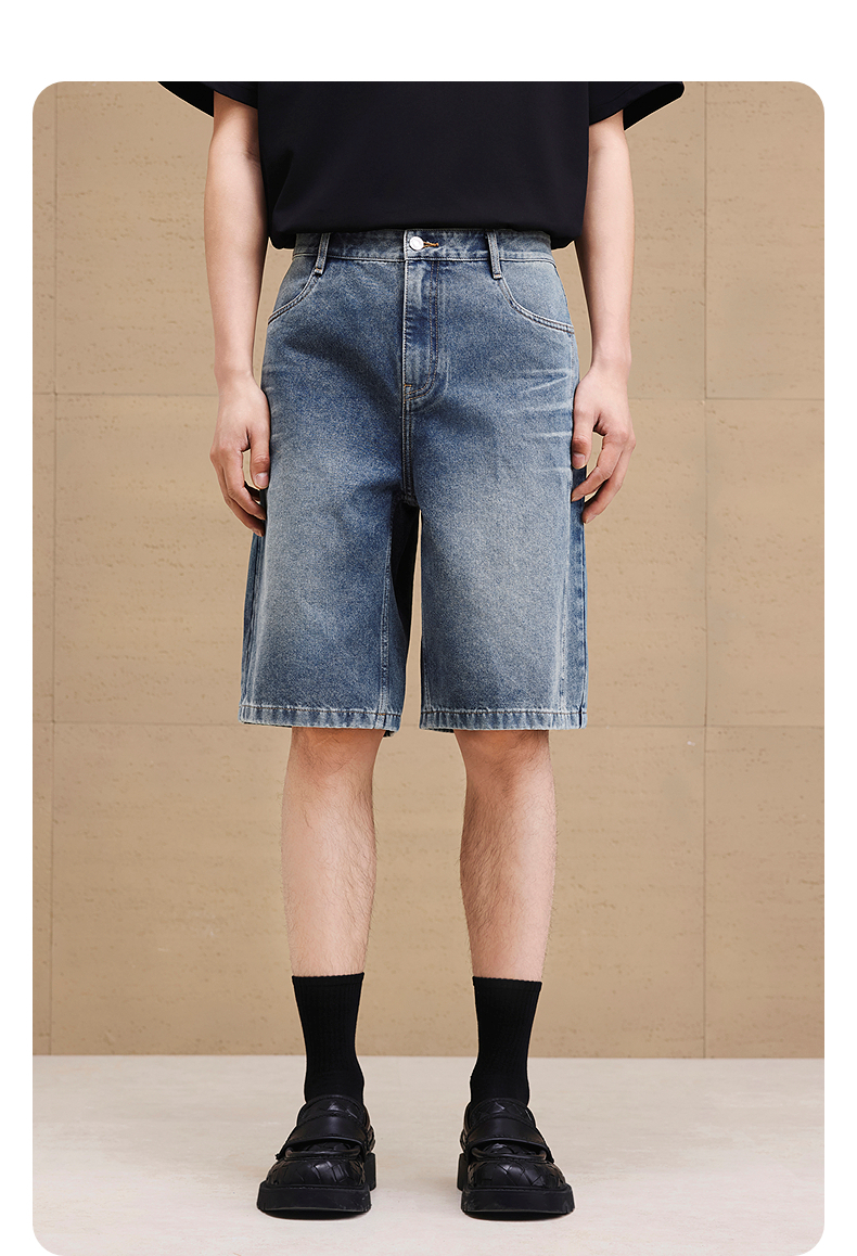 GXG男装 经典蓝色水洗牛仔裤分割设计通勤短裤男裤 2025夏季新品