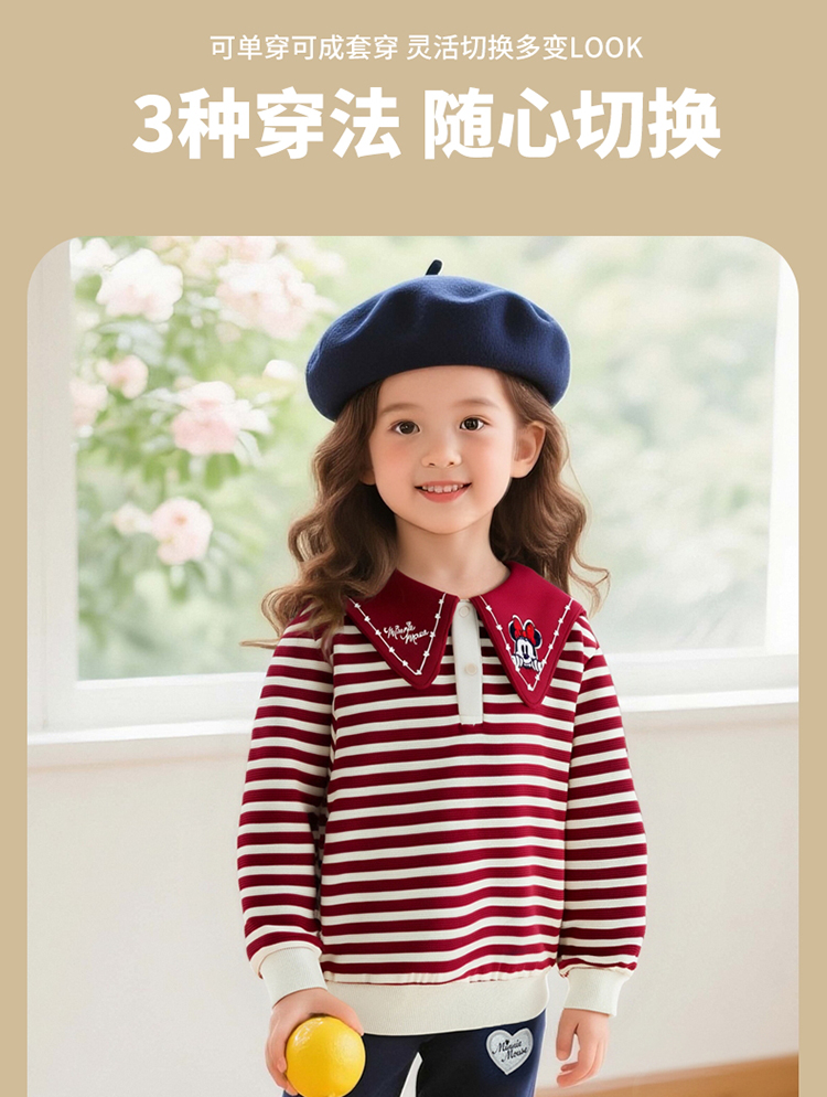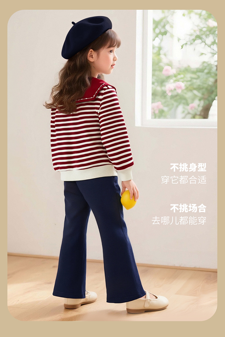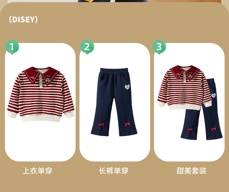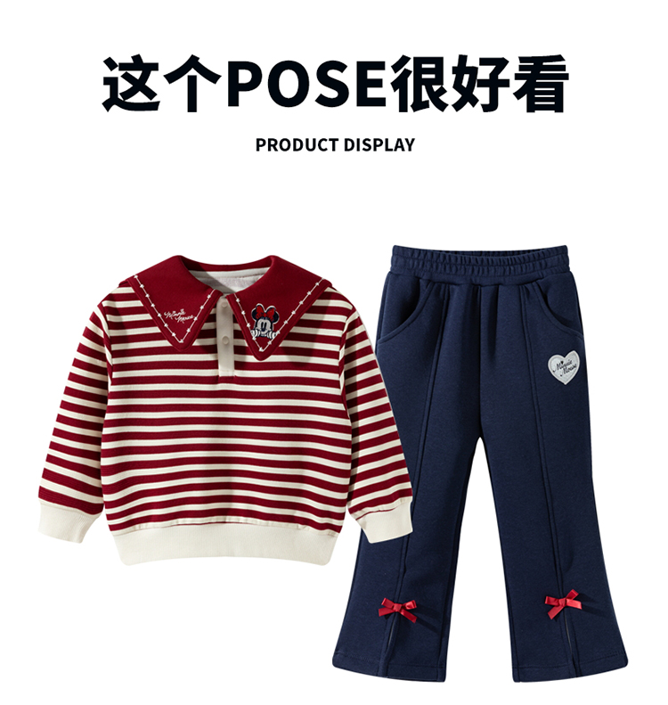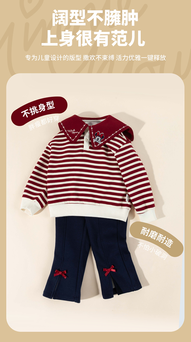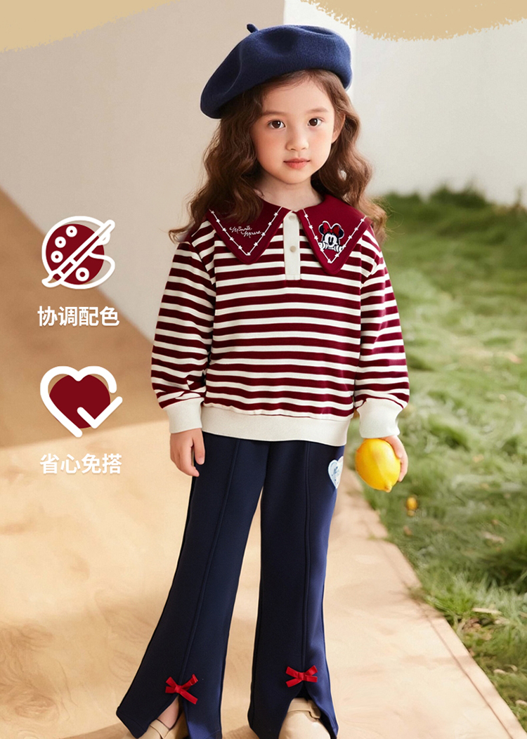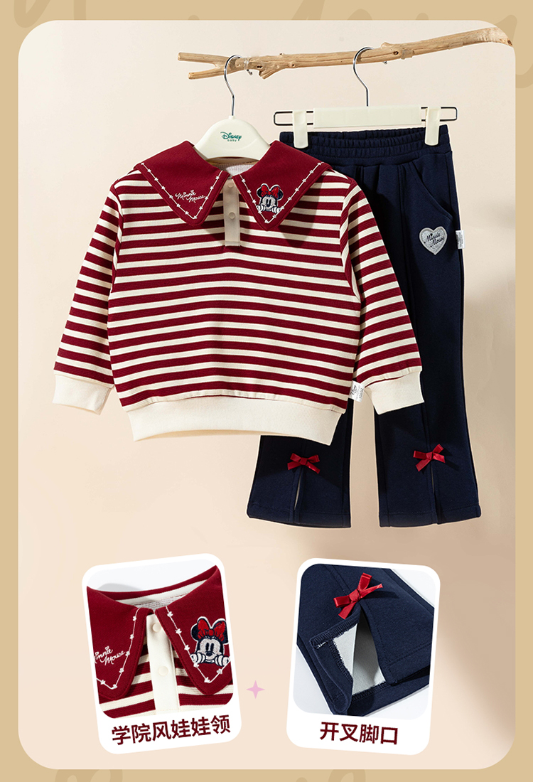 迪士尼25秋新款女童宽松卫衣休闲喇叭裤两件套套装ZD3ET011