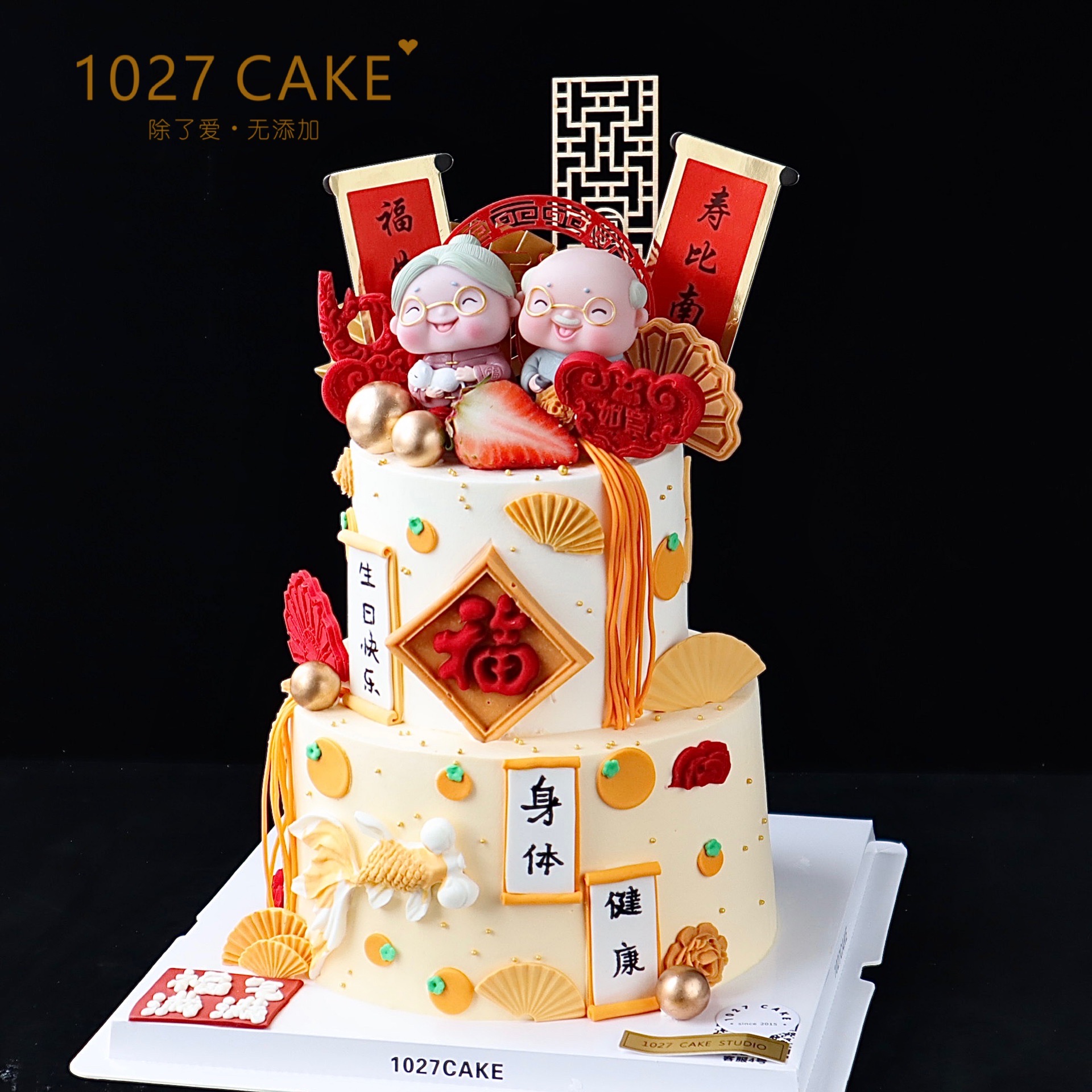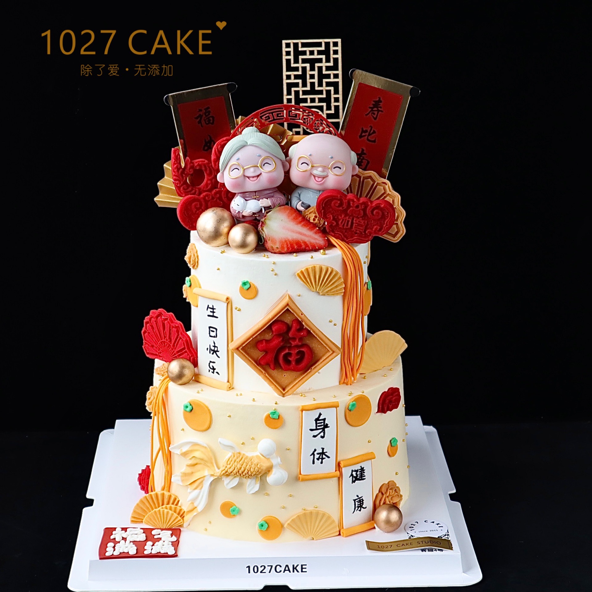 1027CAKE | 双层长辈祝寿蛋糕 福如东海寿比南山