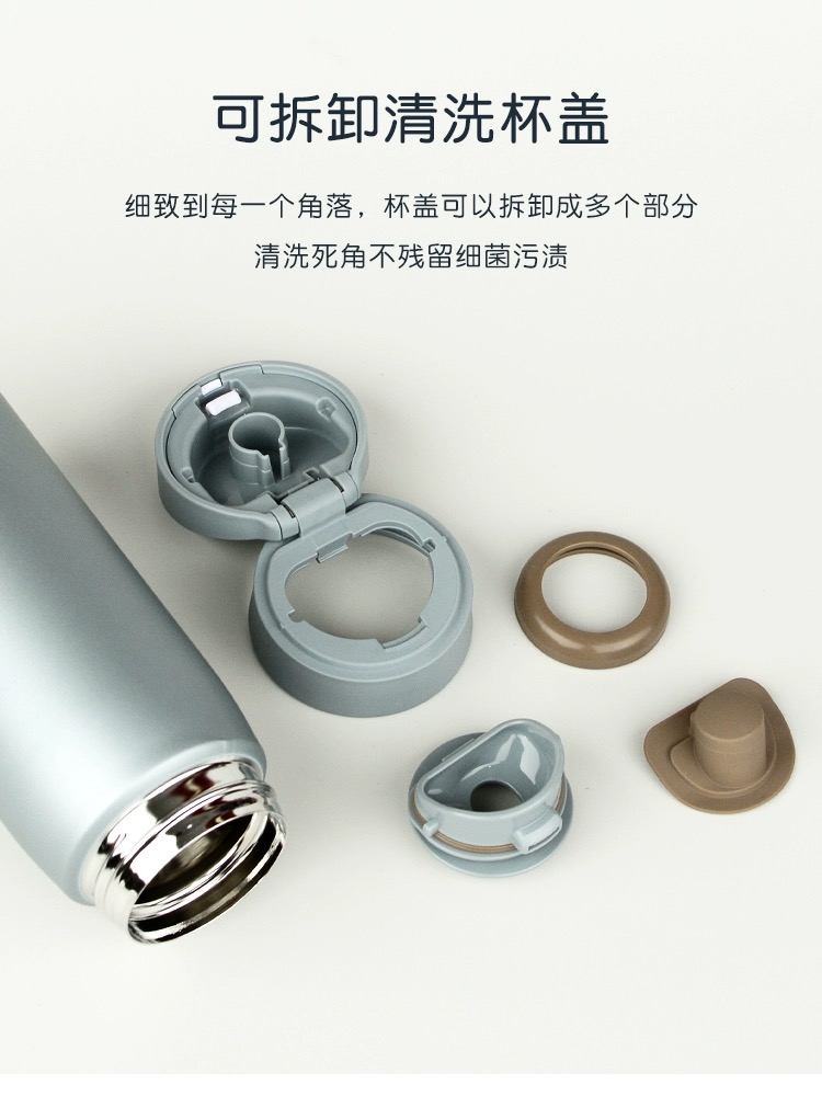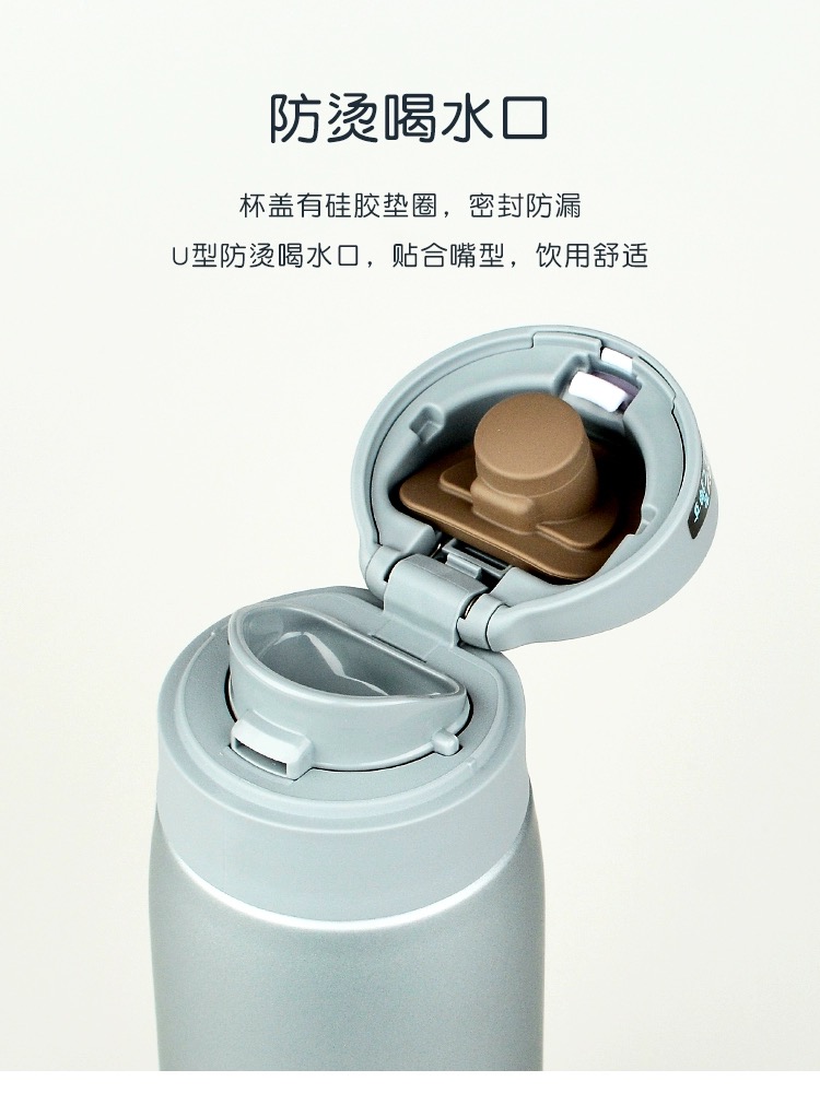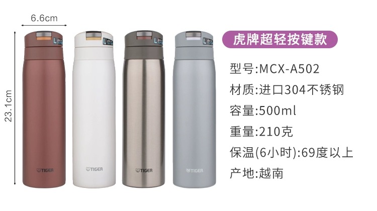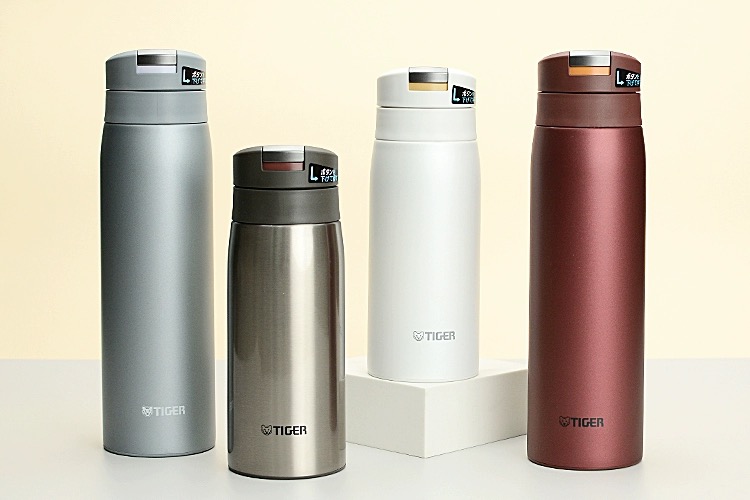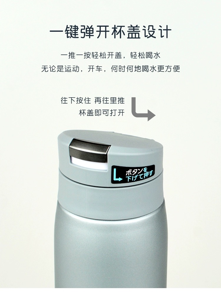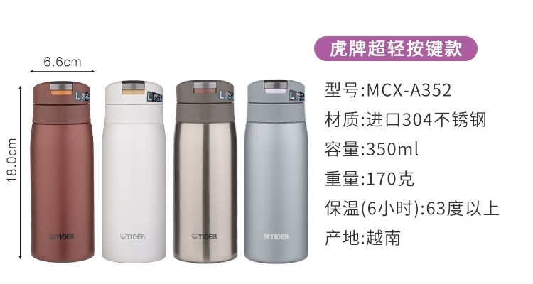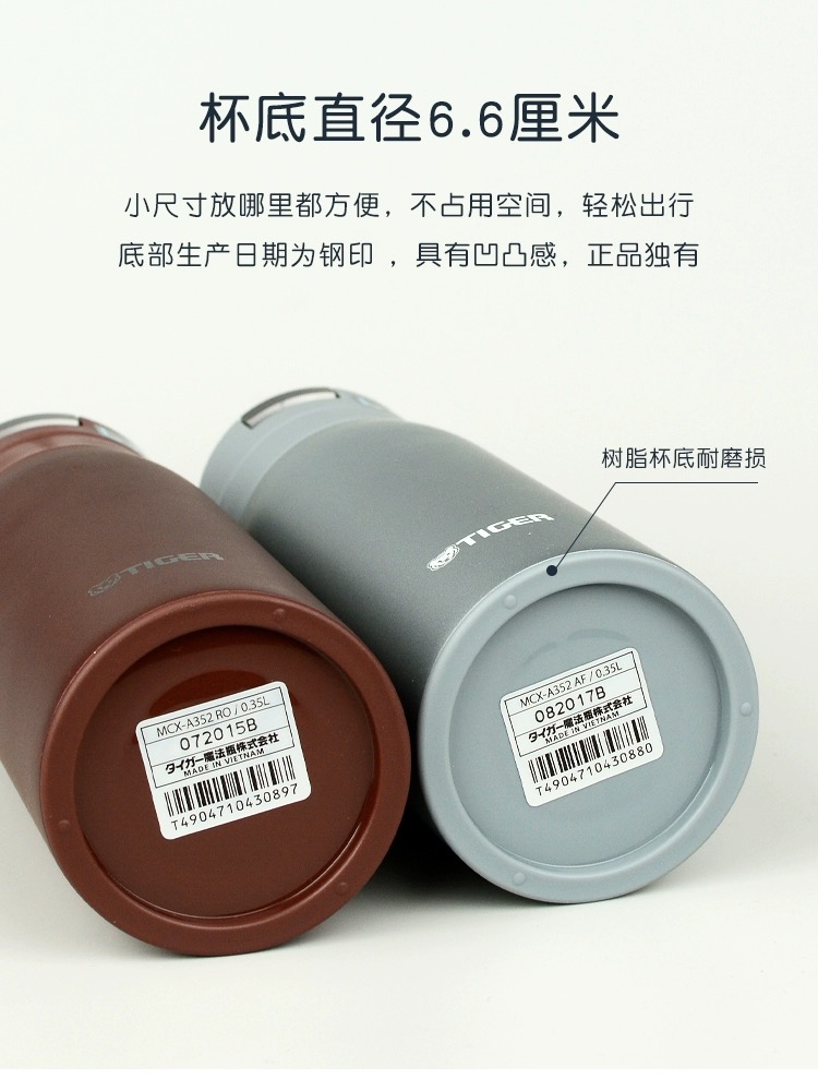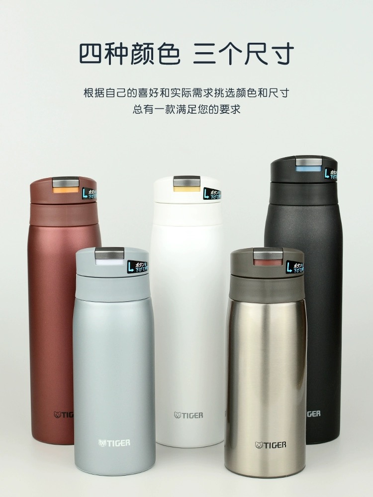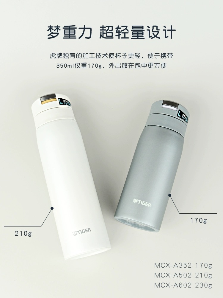 日本TIGER虎牌保温杯新款男女学生水杯超轻办公室可爱直饮杯 茶水分离运动水杯黑灰色