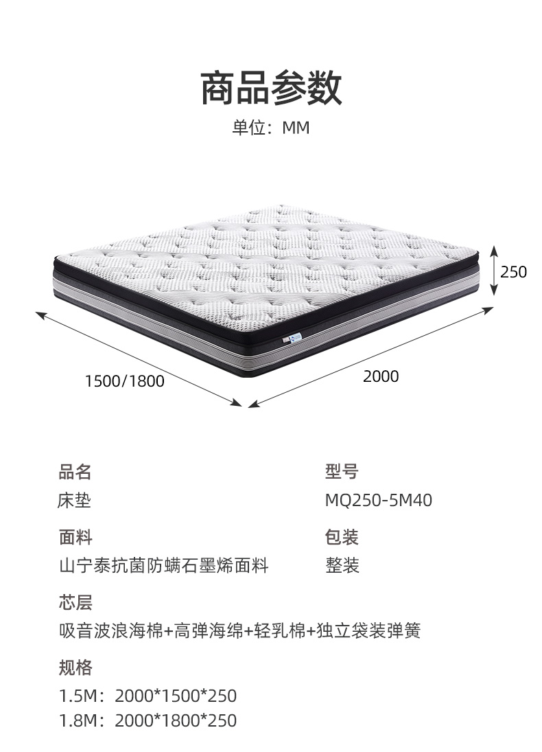 喜梦宝床垫抗菌防螨面料记忆棉25cm独立袋装弹簧软垫席梦思床垫