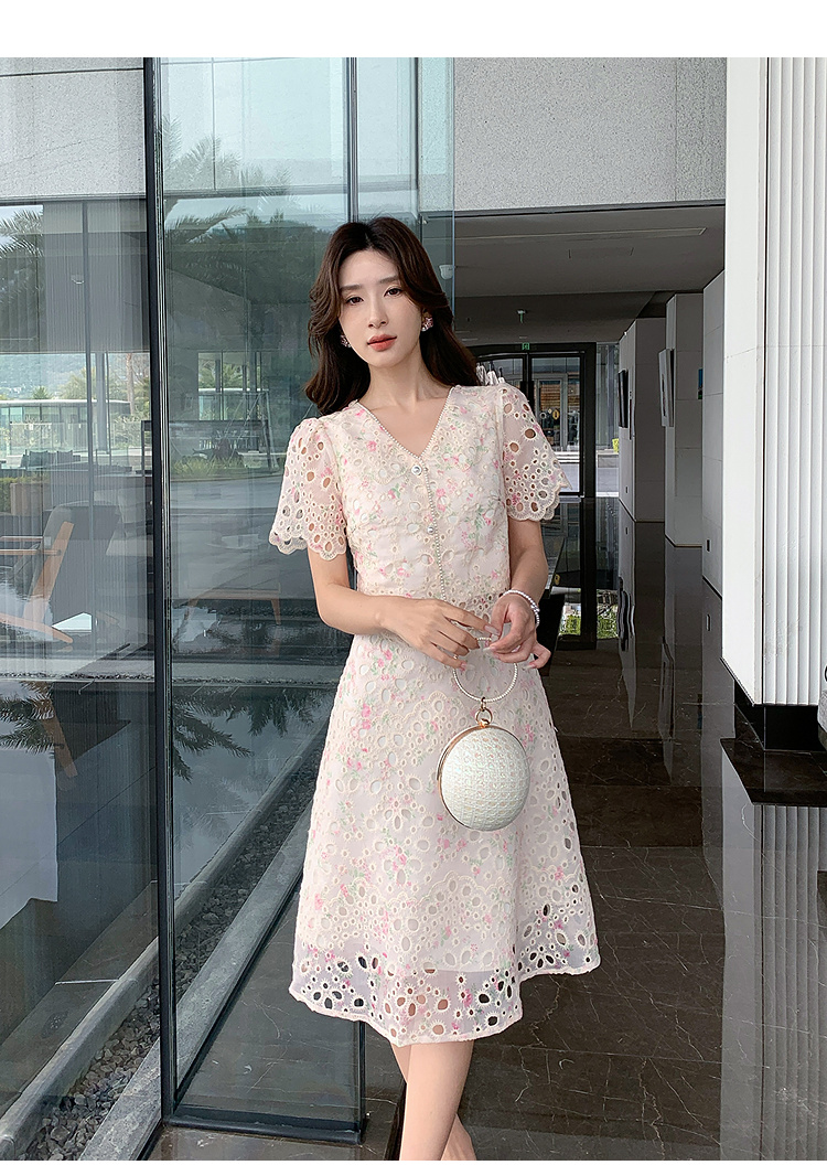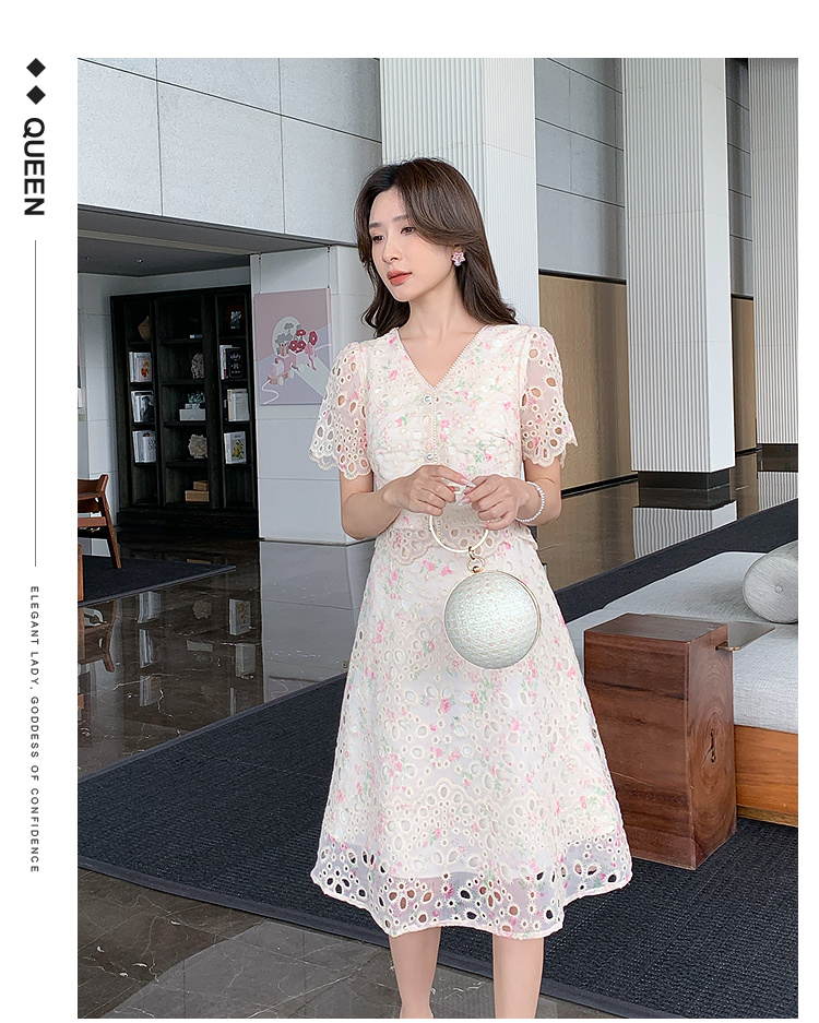奢姿大码女装2026夏季减龄刺绣半开V领连衣裙胖妹妹时尚气质裙子9962854731