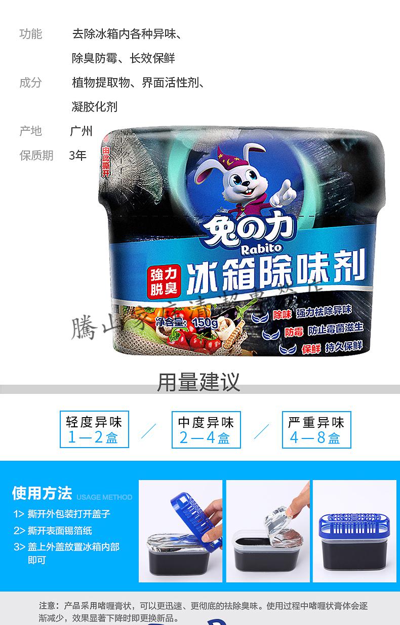 兔之力冰箱除味剂盒装(黑碳)150g(拍一发三)