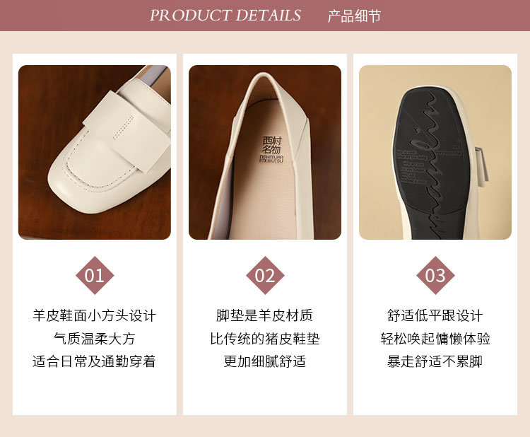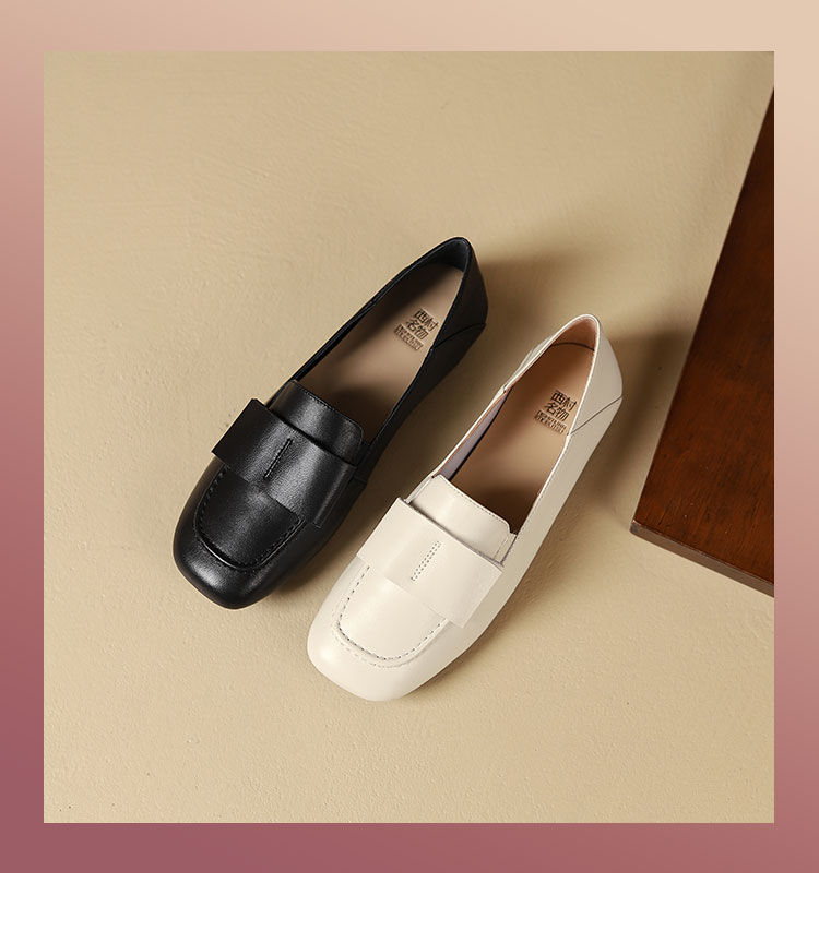 西村名物秋季新款舒适软底软面薄底平跟防滑深口单鞋乐福鞋T24CM37971