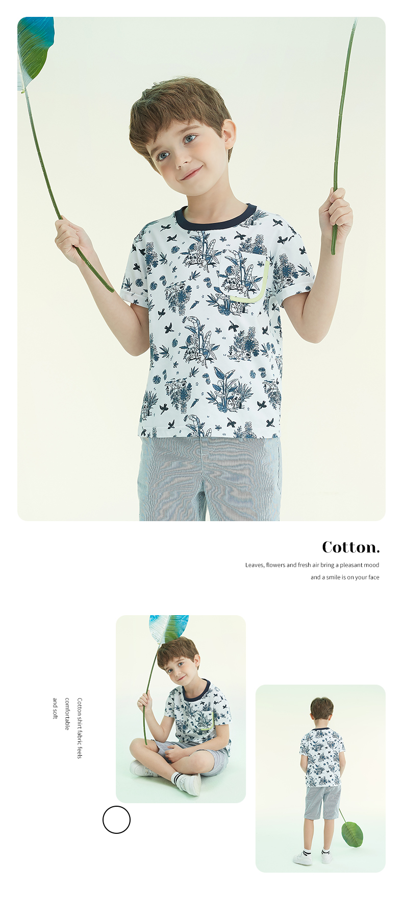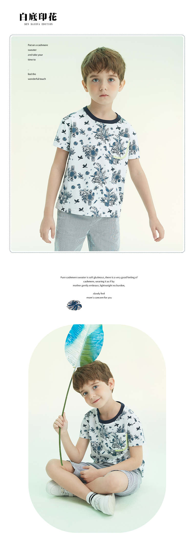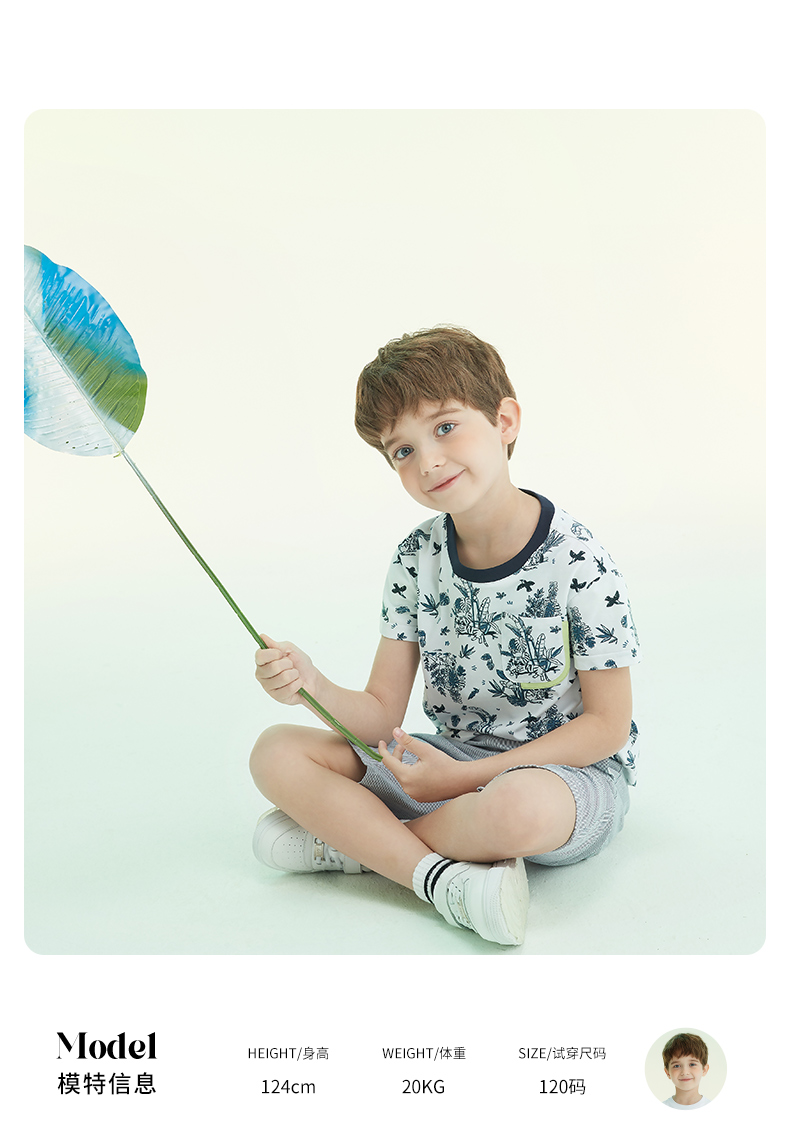 mettekids儿童短袖2022新款童装洋气时尚圆领白色印花男童t恤夏季